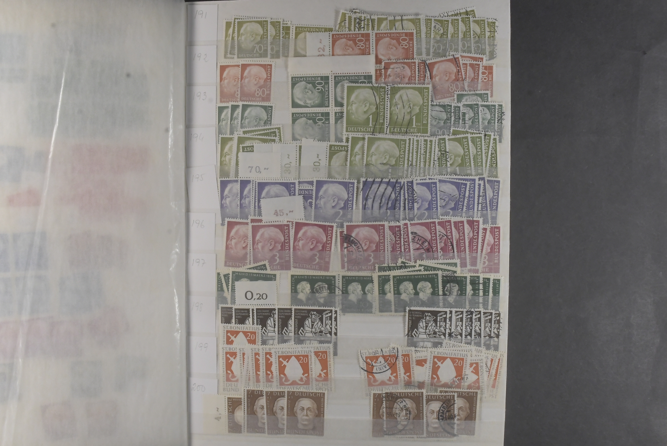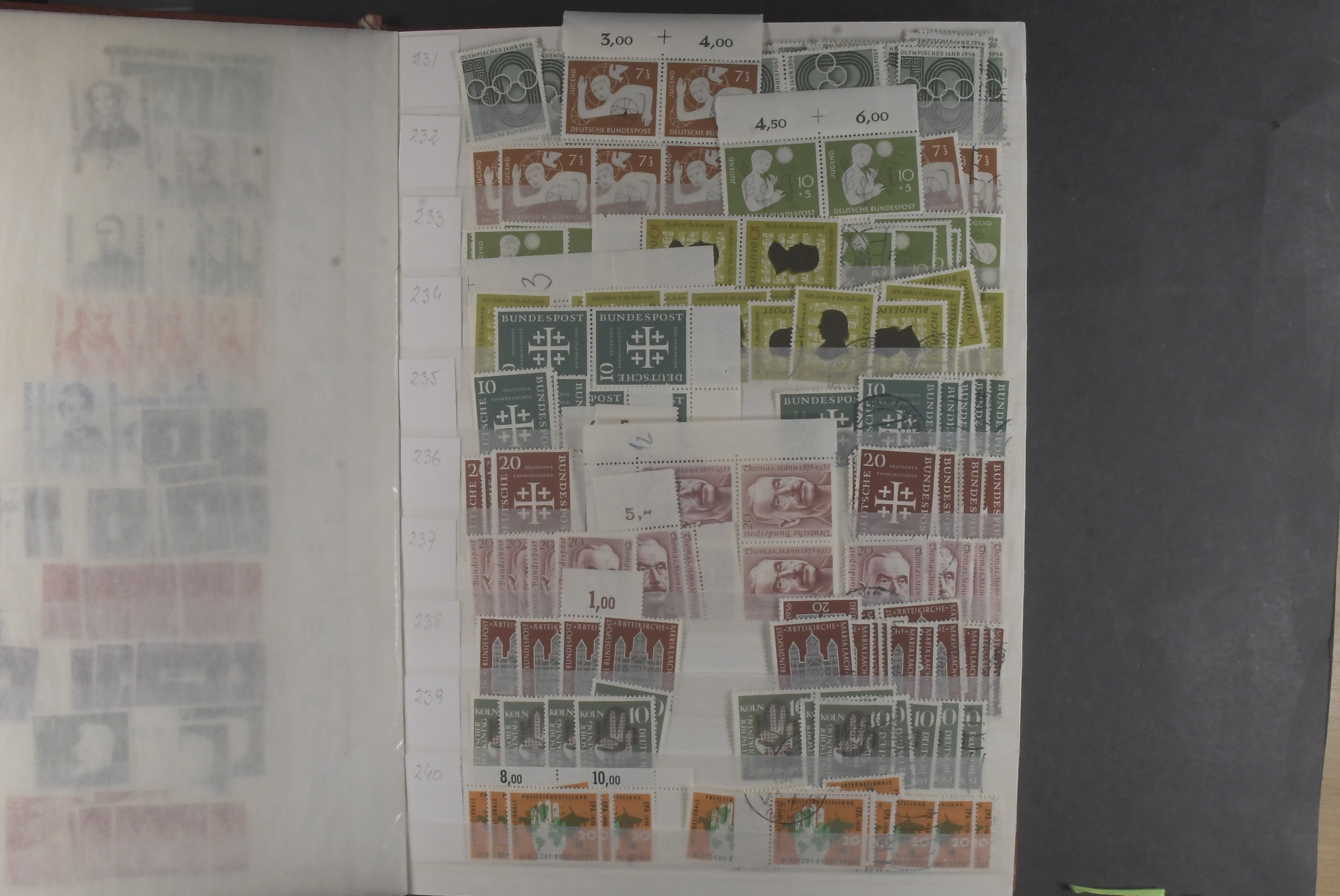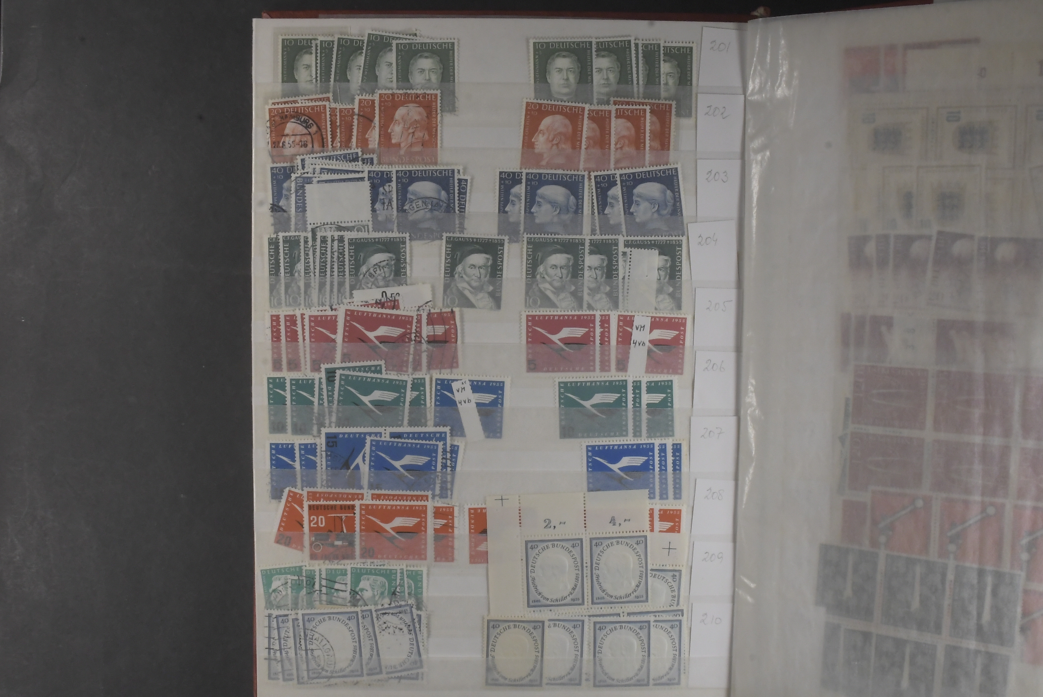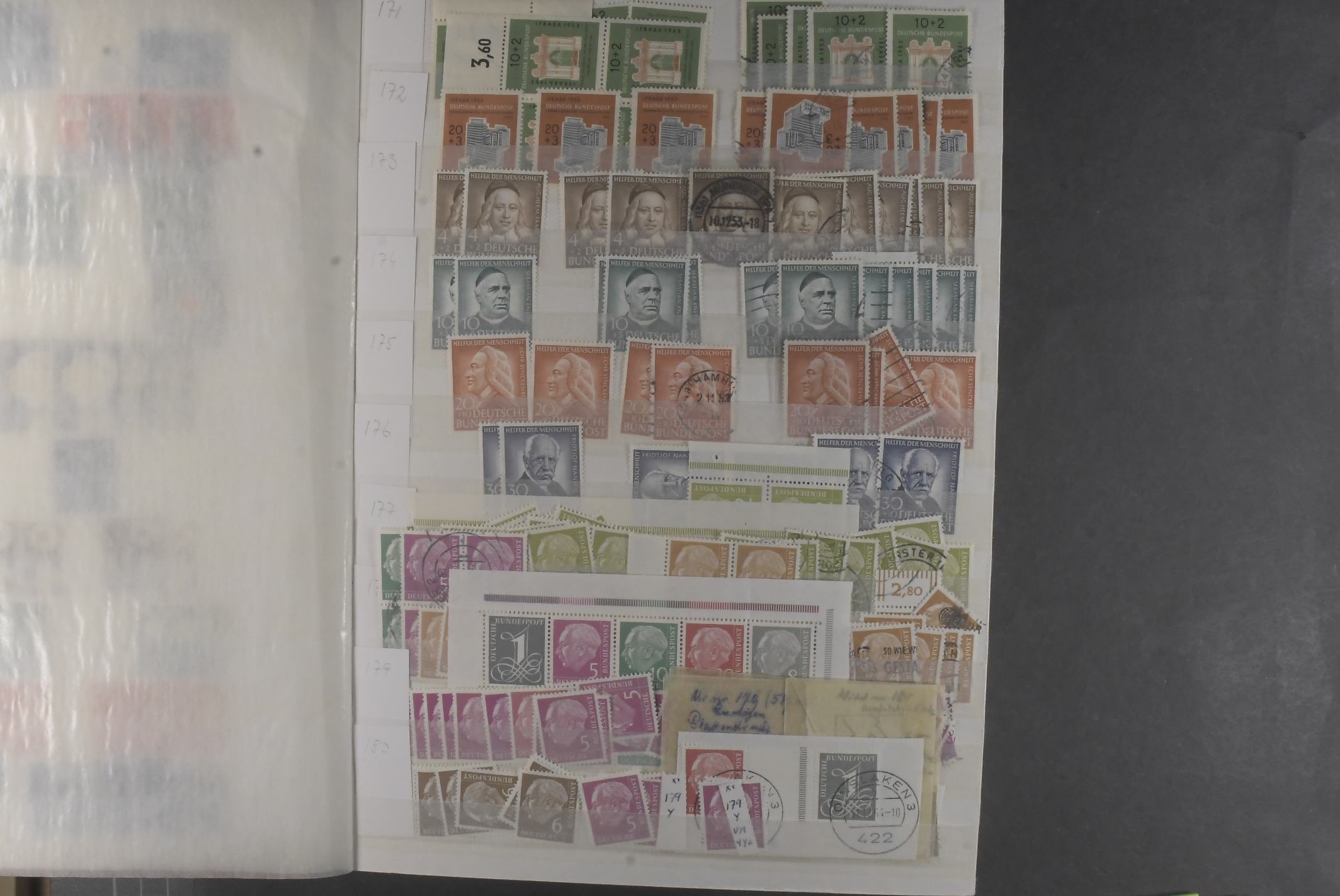 Germany, GFR (BRD). Accumulation ★★/★/⊙ to 1963 in large overfilld stockbook 32 pages. Both used and mint, looks to be complete often several of each. The most valuabe are mostly mint, but often ** as well. Please see a selection of scans at www.philea.se. Fine quality.