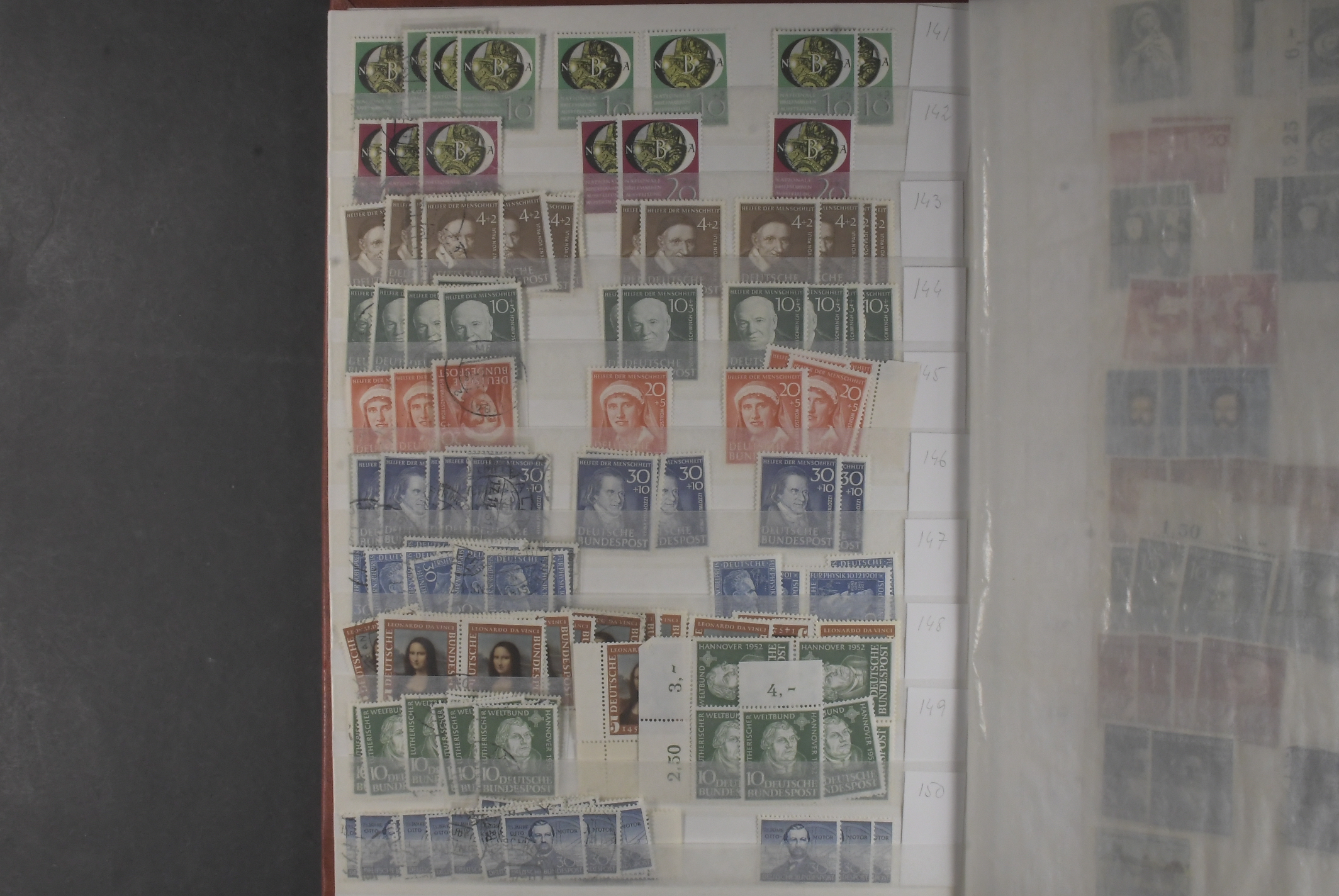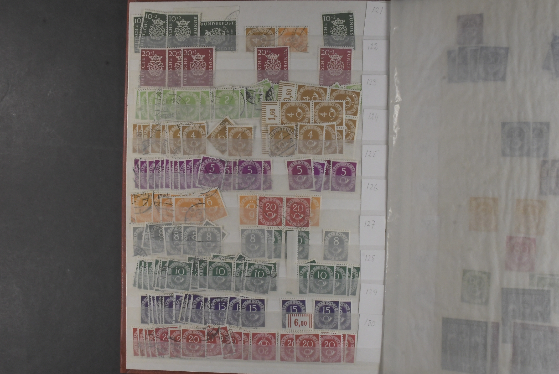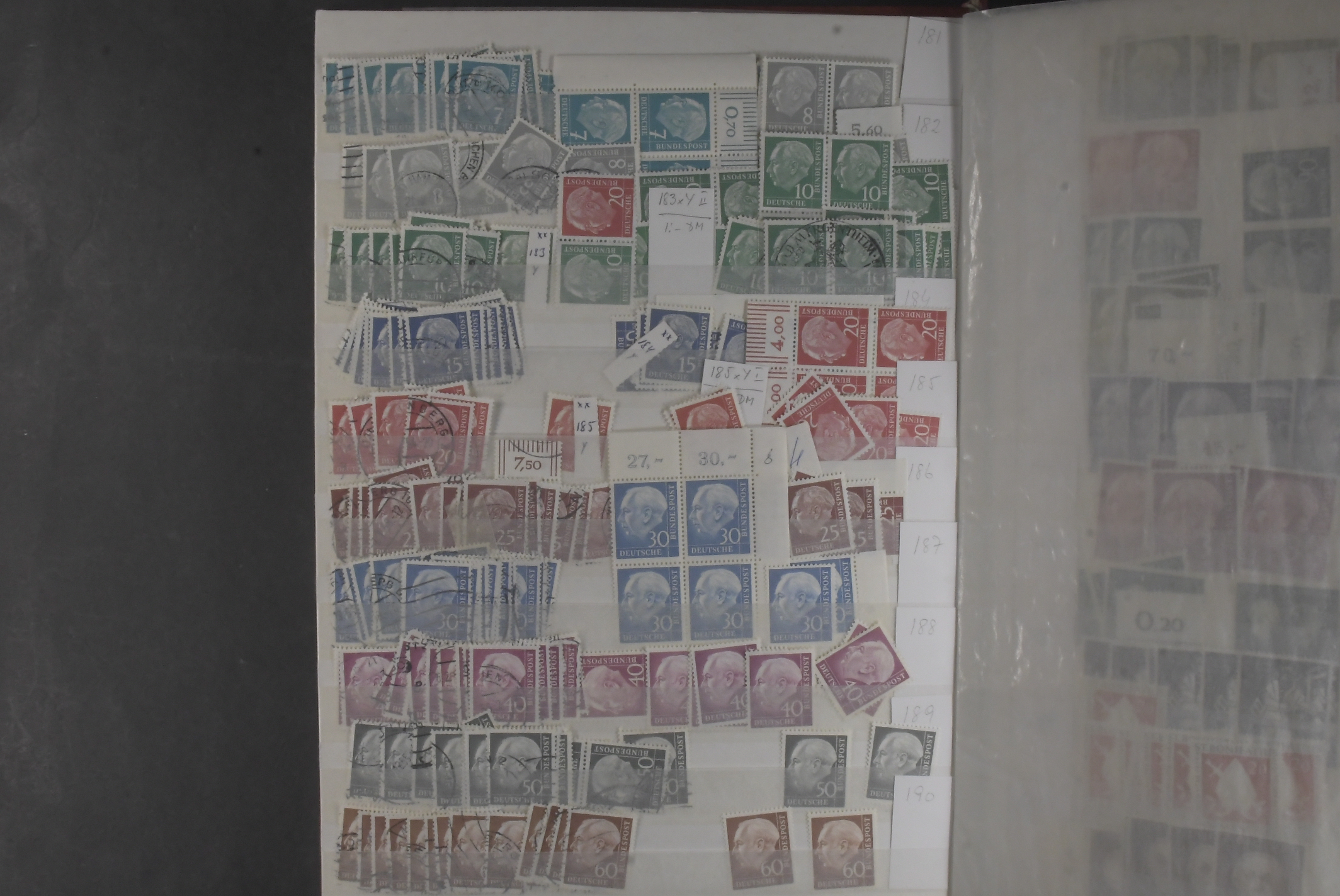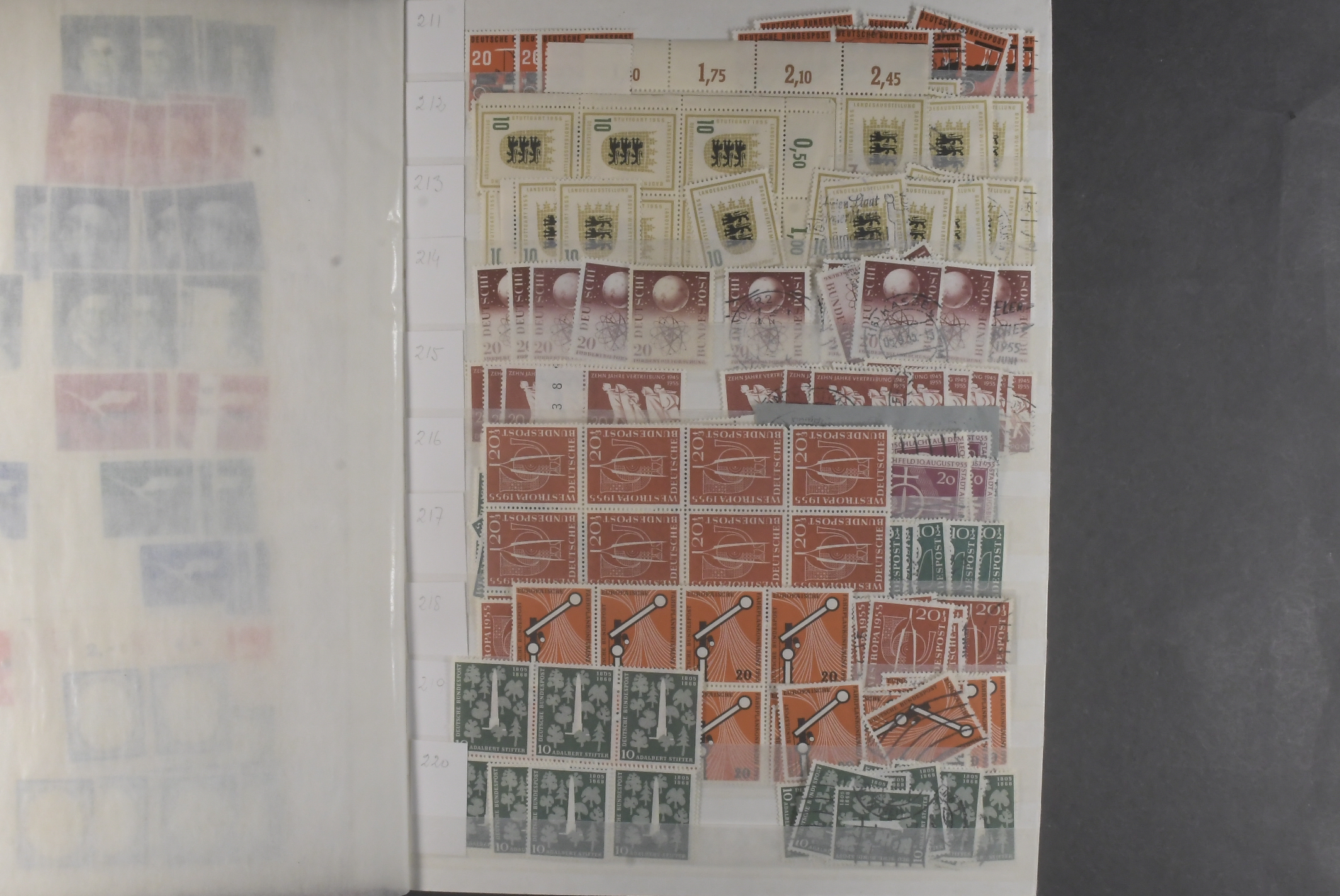 Germany, GFR (BRD). Accumulation ★★/★/⊙ to 1963 in large overfilld stockbook 32 pages. Both used and mint, looks to be complete often several of each. The most valuabe are mostly mint, but often ** as well. Please see a selection of scans at www.philea.se. Fine quality.