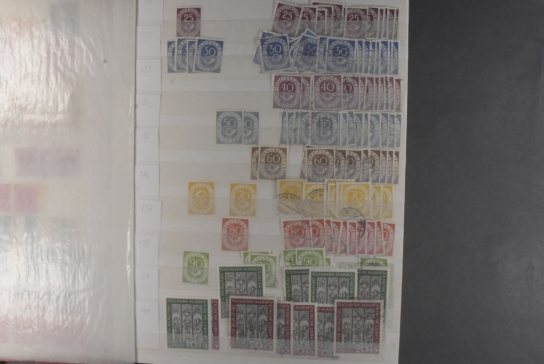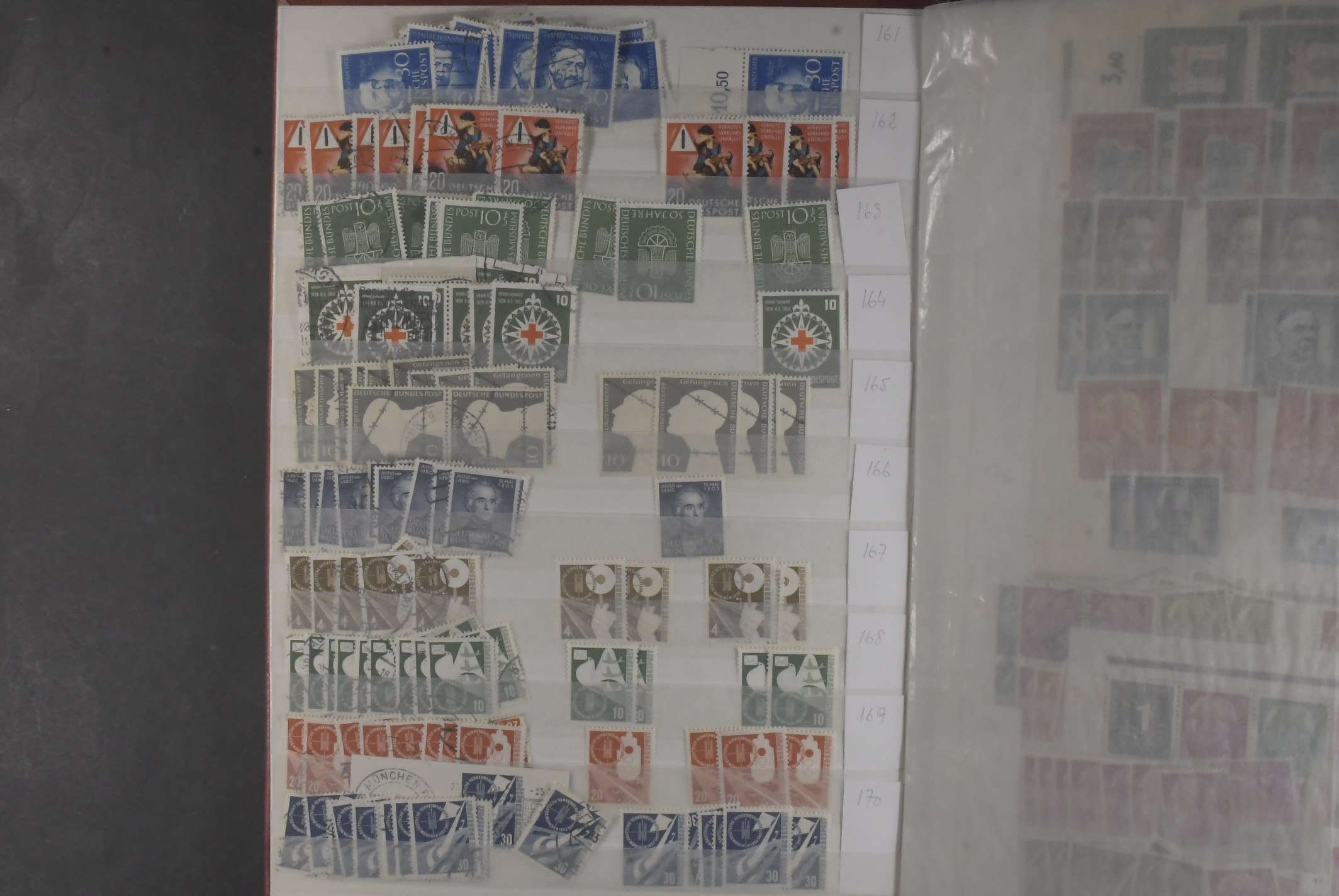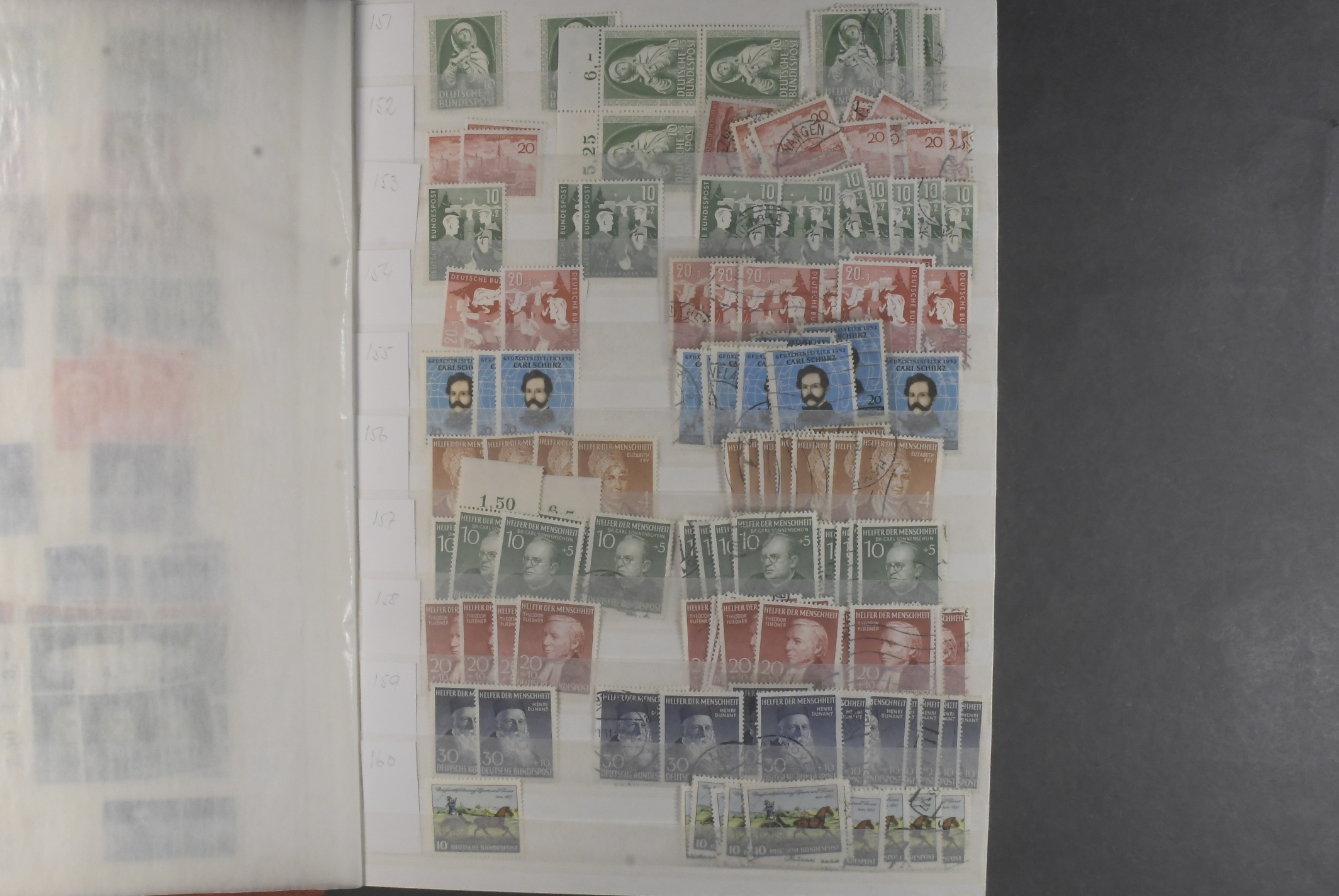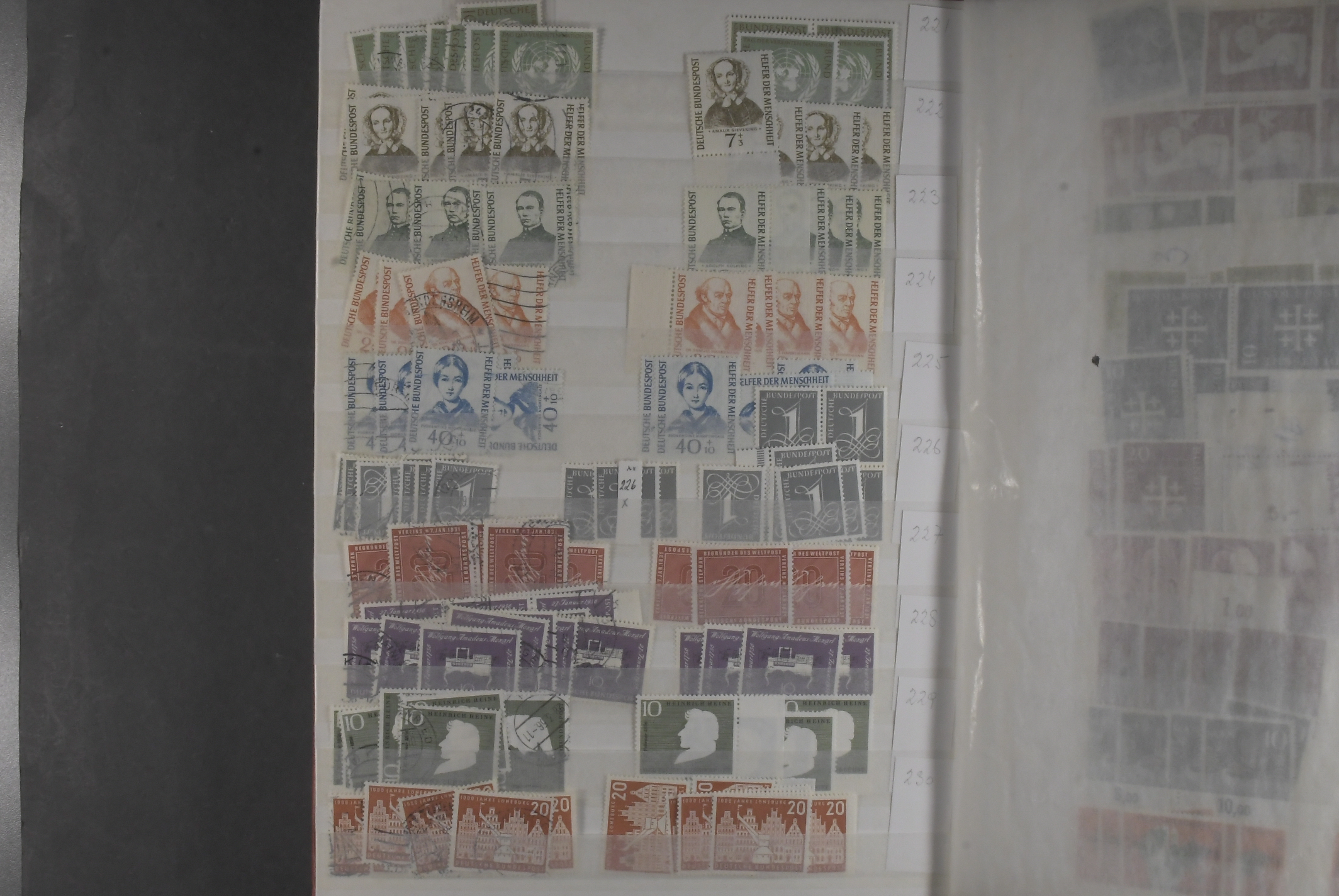Germany, GFR (BRD). Accumulation ★★/★/⊙ to 1963 in large overfilld stockbook 32 pages. Both used and mint, looks to be complete often several of each. The most valuabe are mostly mint, but often ** as well. Please see a selection of scans at www.philea.se. Fine quality.