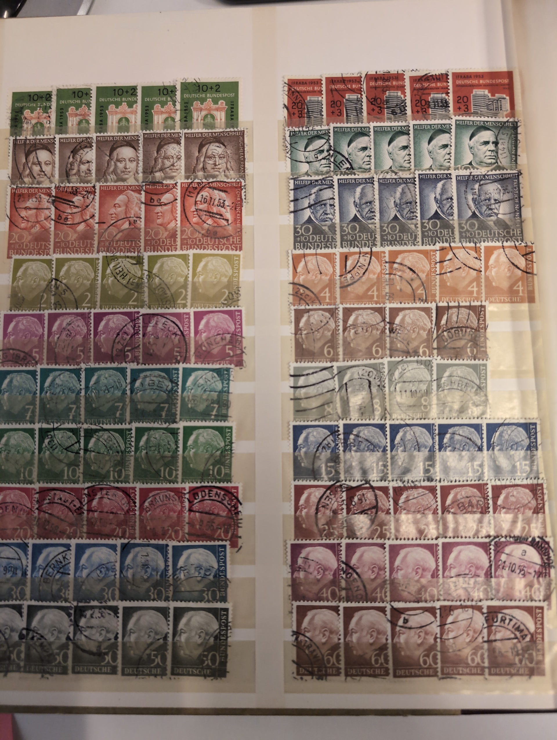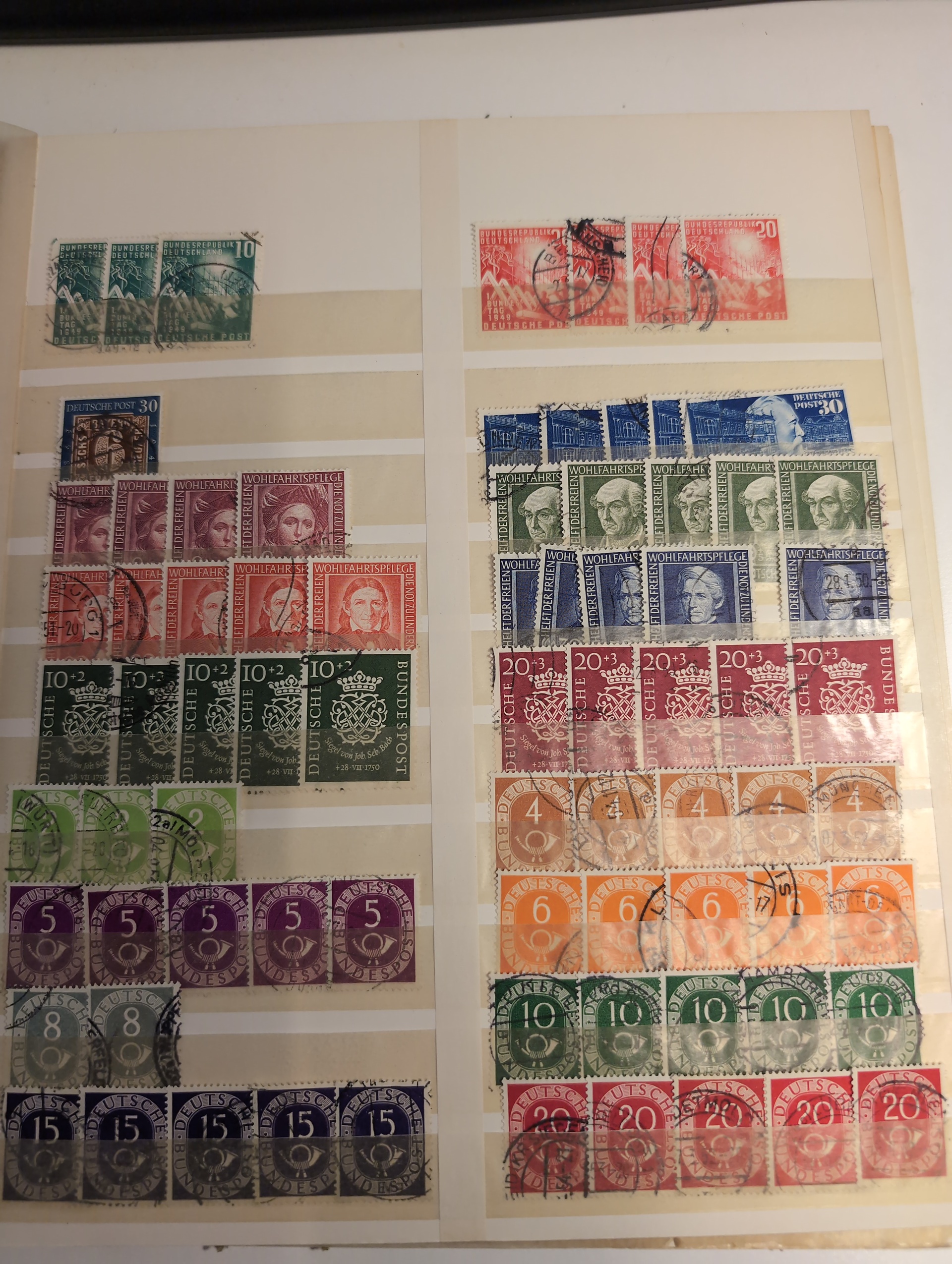 Germany, GFR (BRD). Accumulation used 1949–1963 in stockbook. With some better stamps and sets. Please see a selection of scans at www.philea.se. Mostly fine quality. (500+)