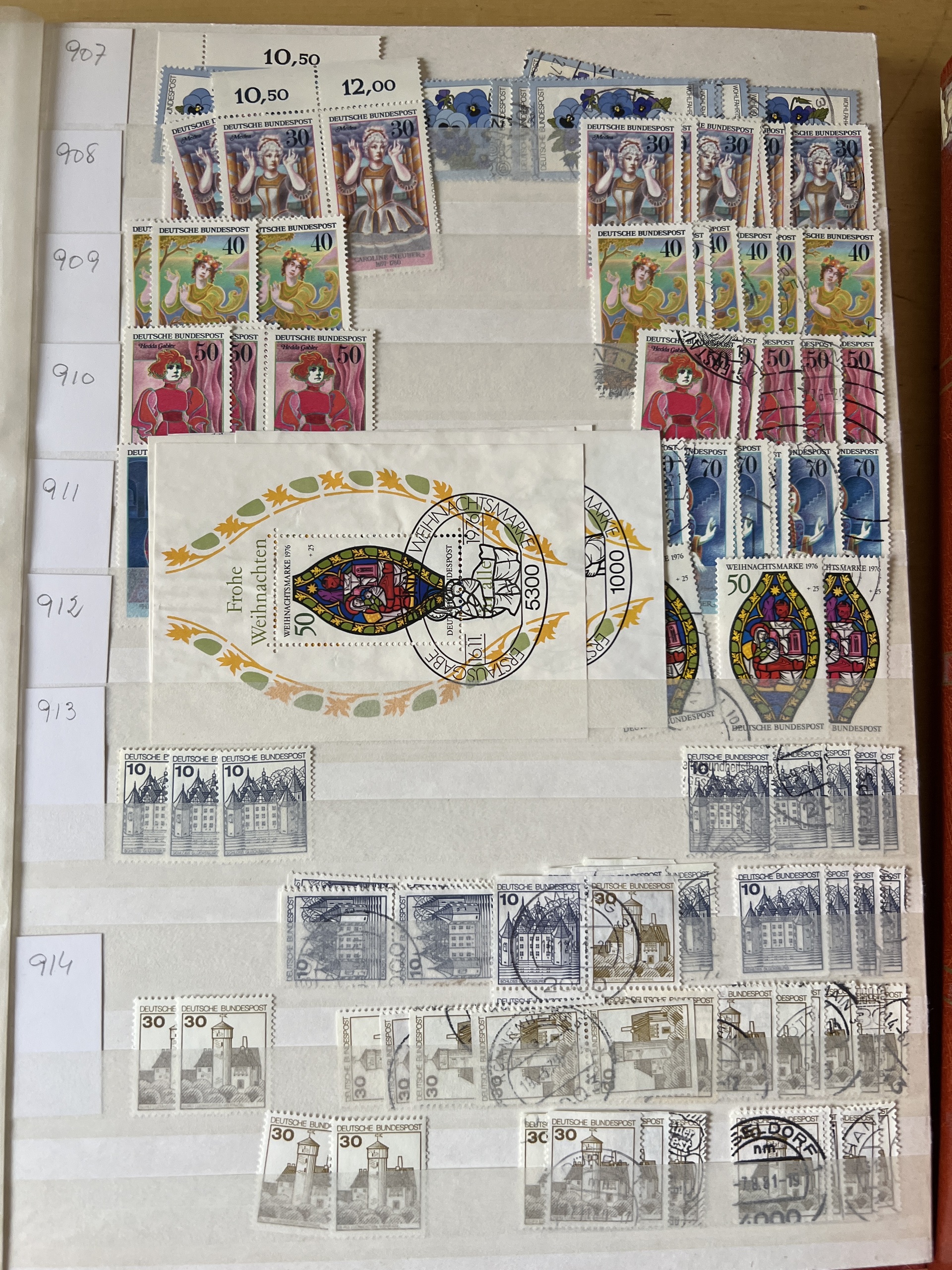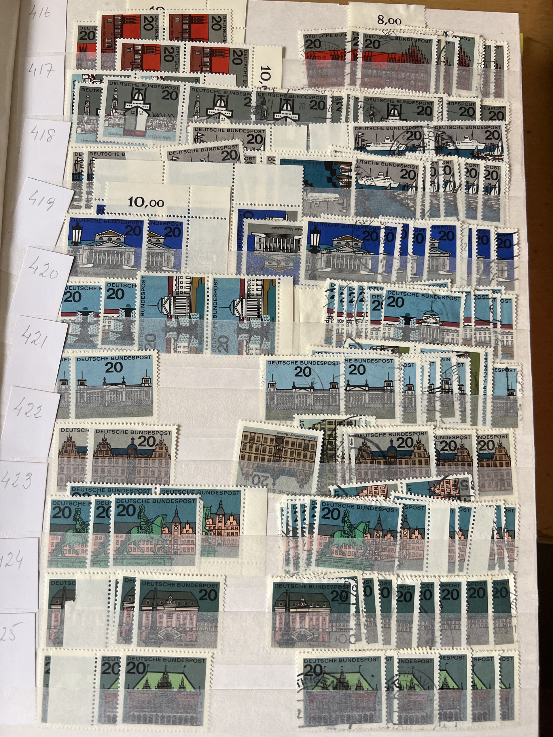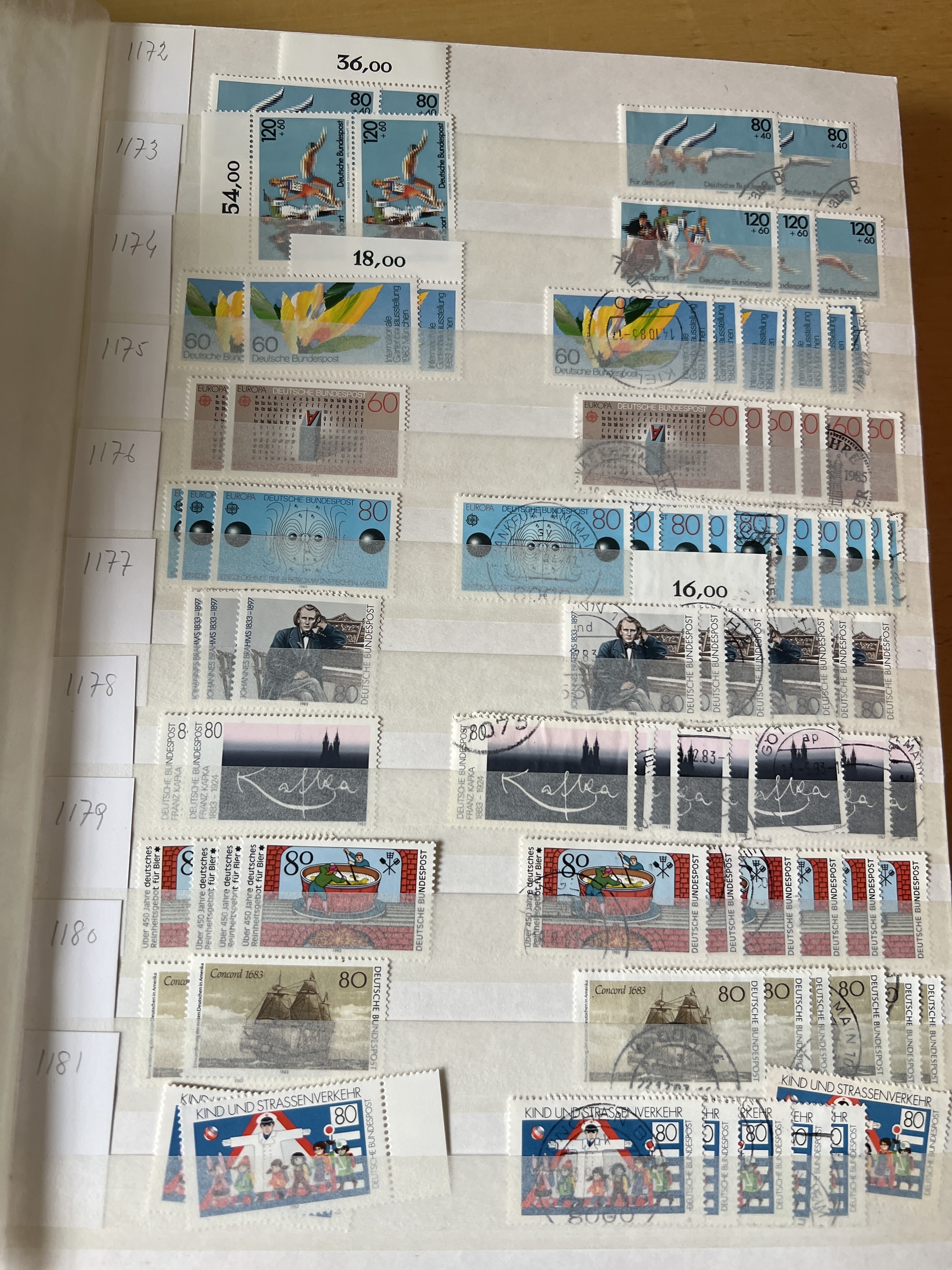 Germany, GFR (BRD). Accumulation ★★/⊙ 1964–2002 in box. Extensive stock in seven thick stockbooks with NH and used. From c1997 a little bit more sparse. No mint from the €-period. Please see a selection of scans at www.philea.se. Mostly good quality. Approx. 9 kg. (10000+)