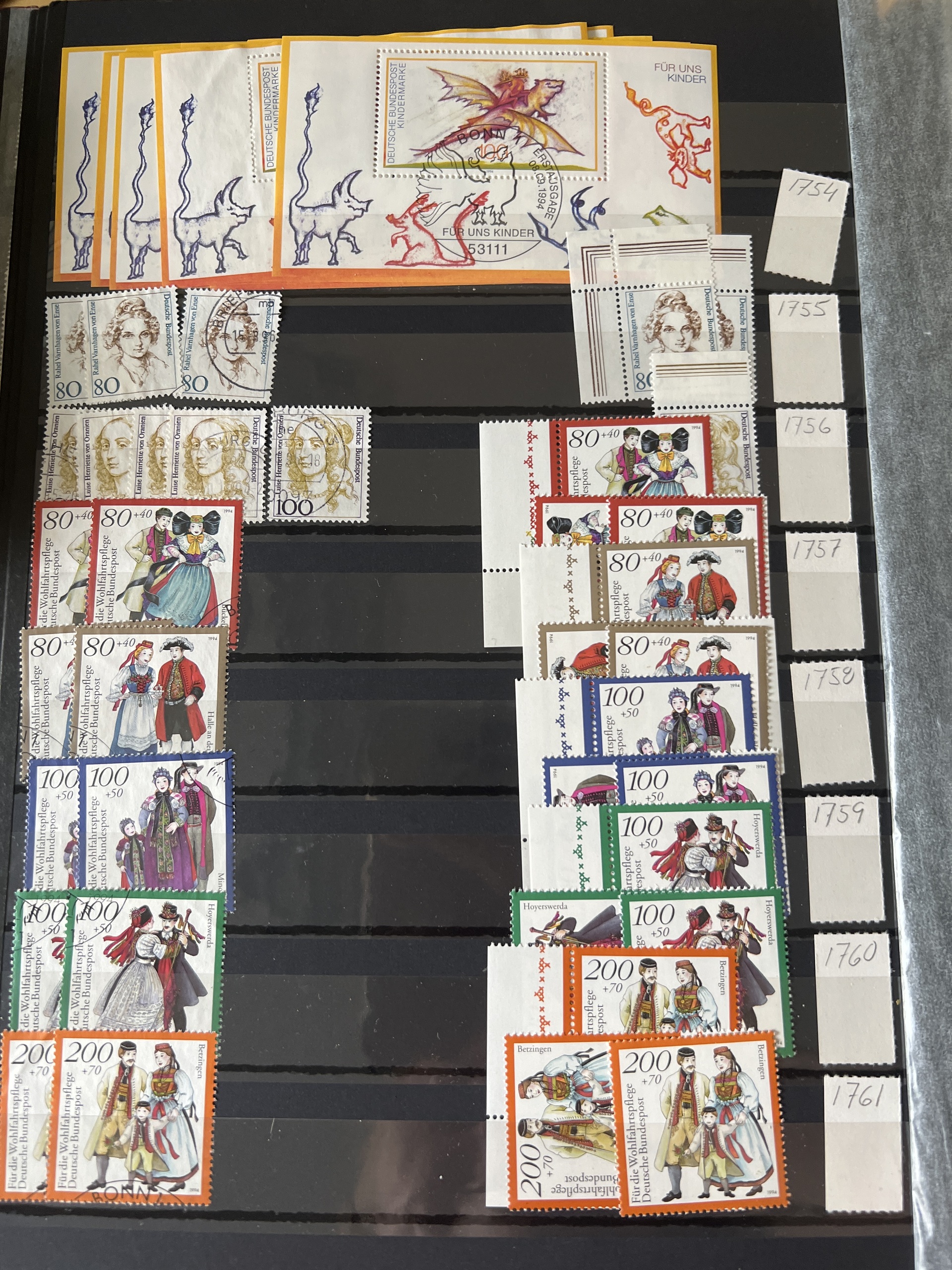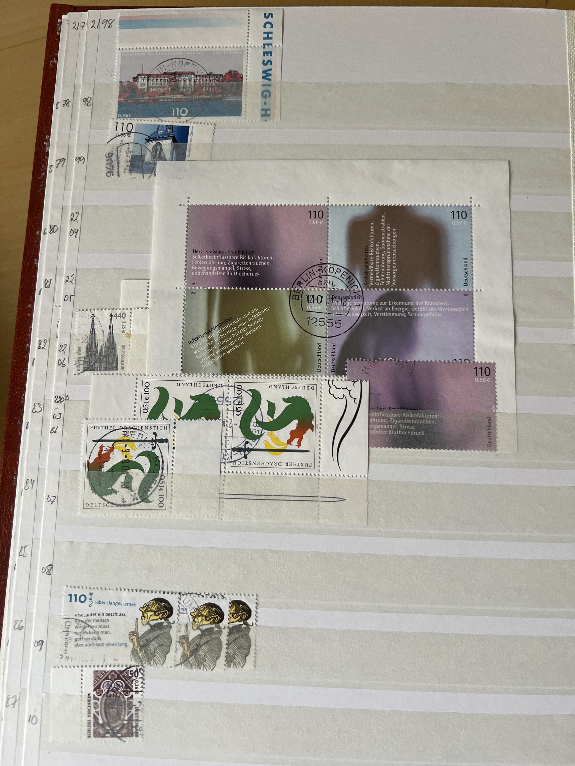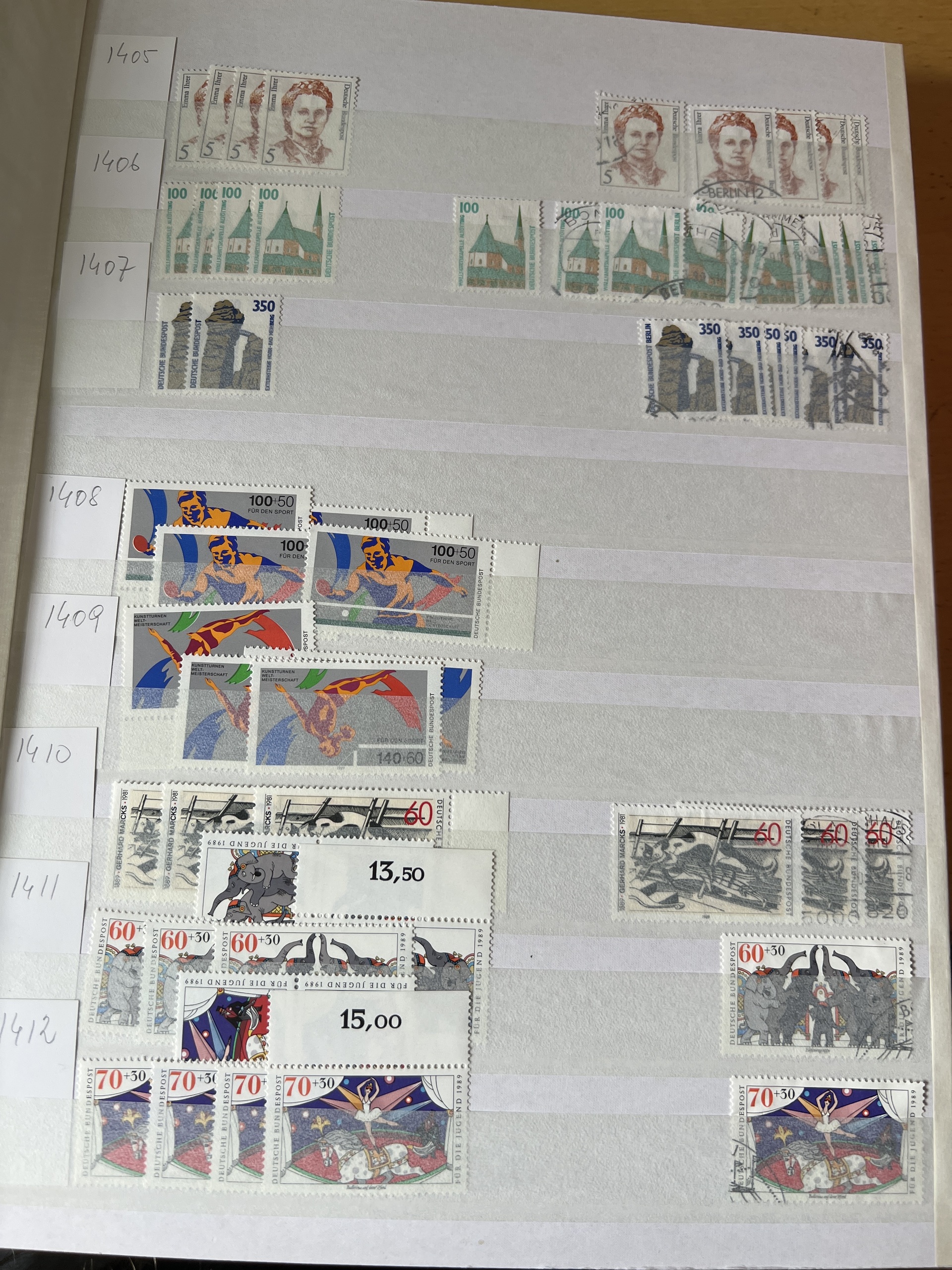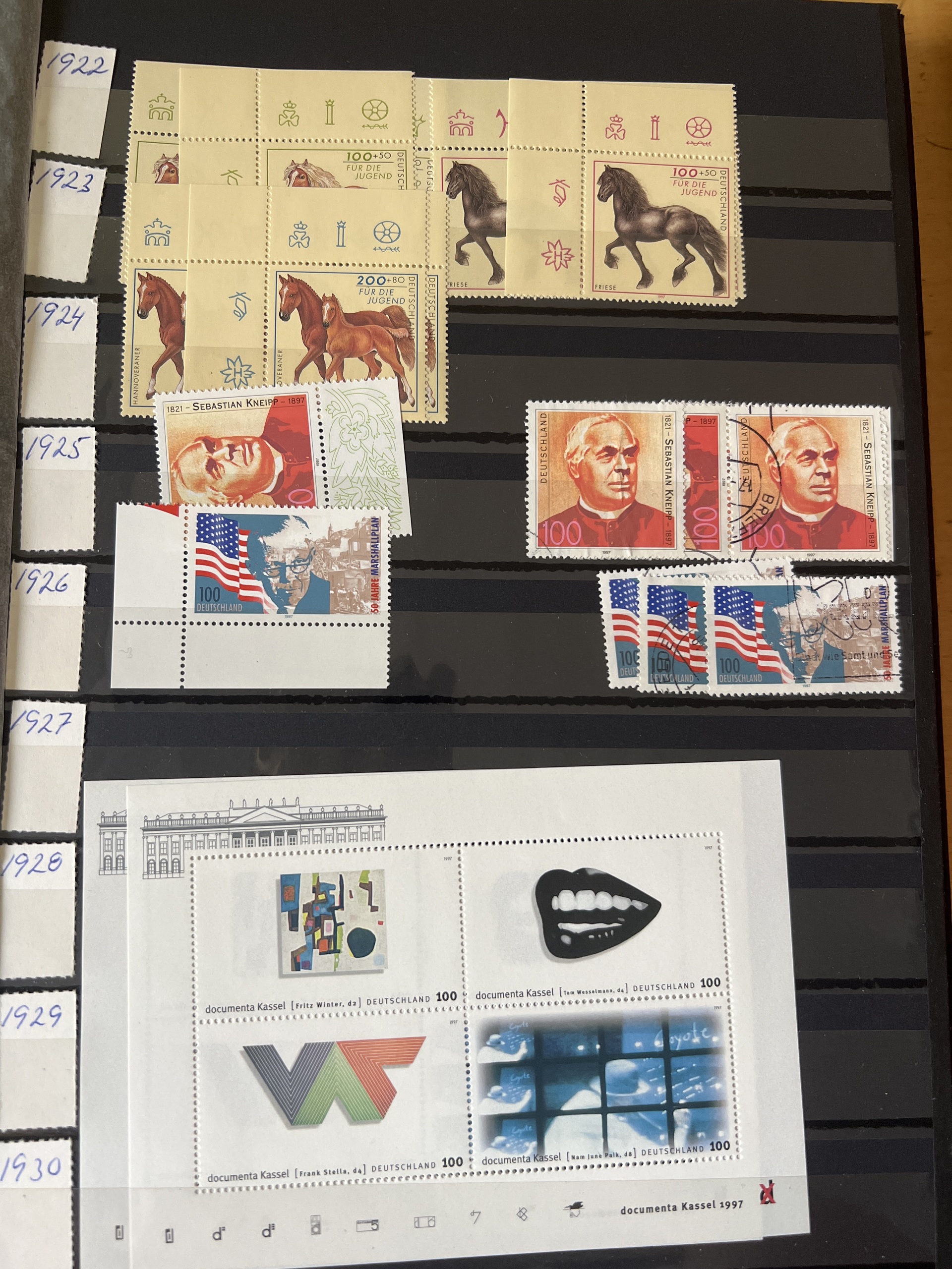 Germany, GFR (BRD). Accumulation ★★/⊙ 1964–2002 in box. Extensive stock in seven thick stockbooks with NH and used. From c1997 a little bit more sparse. No mint from the €-period. Please see a selection of scans at www.philea.se. Mostly good quality. Approx. 9 kg. (10000+)