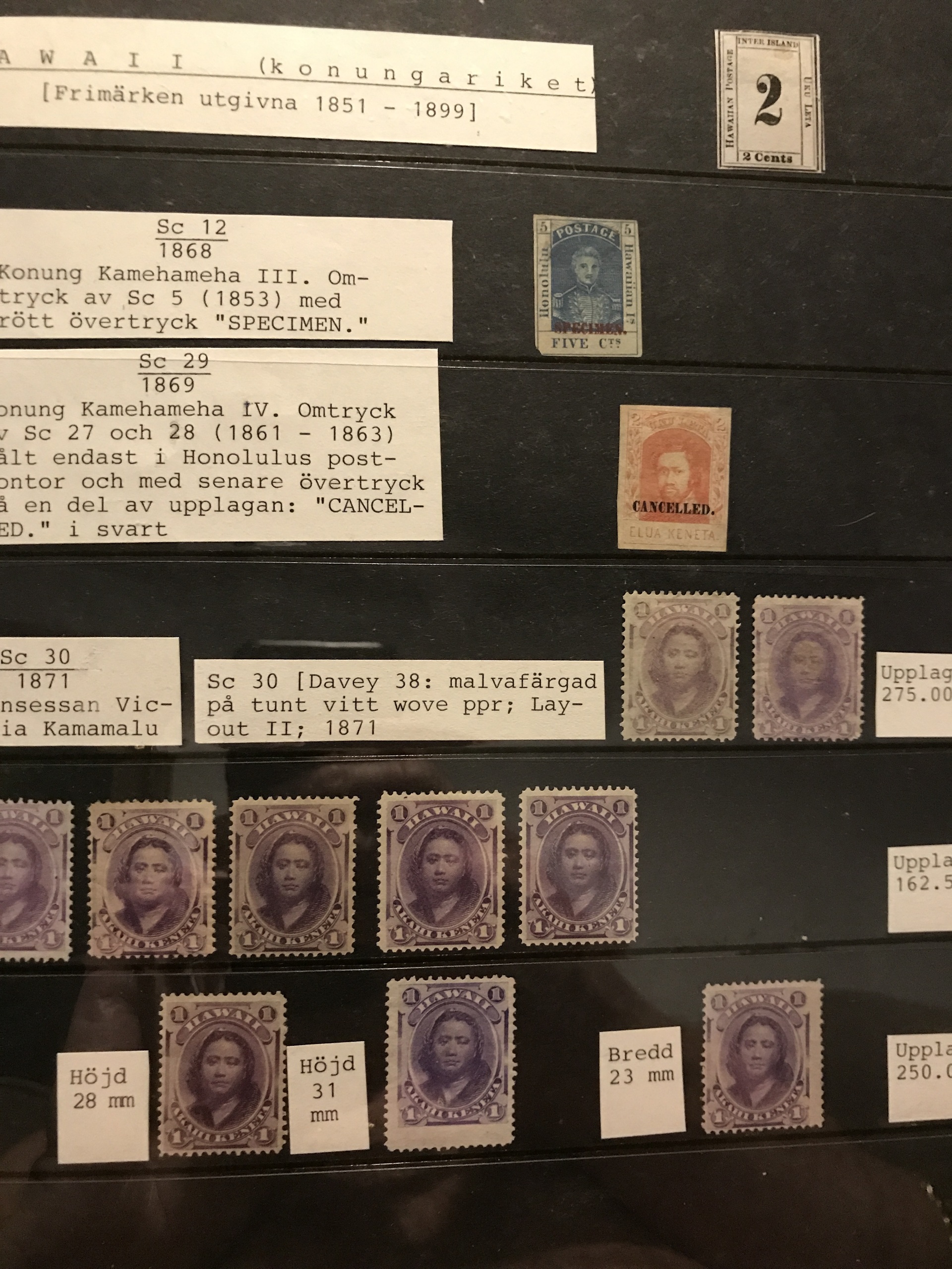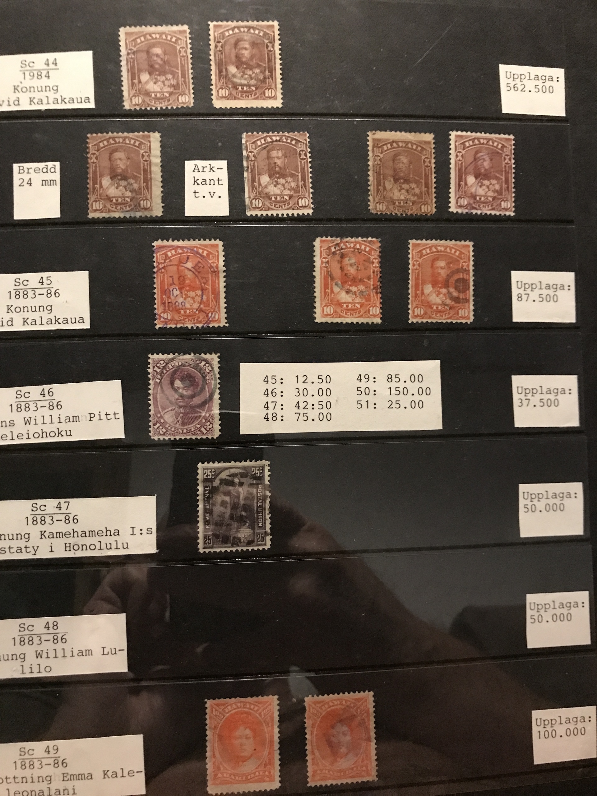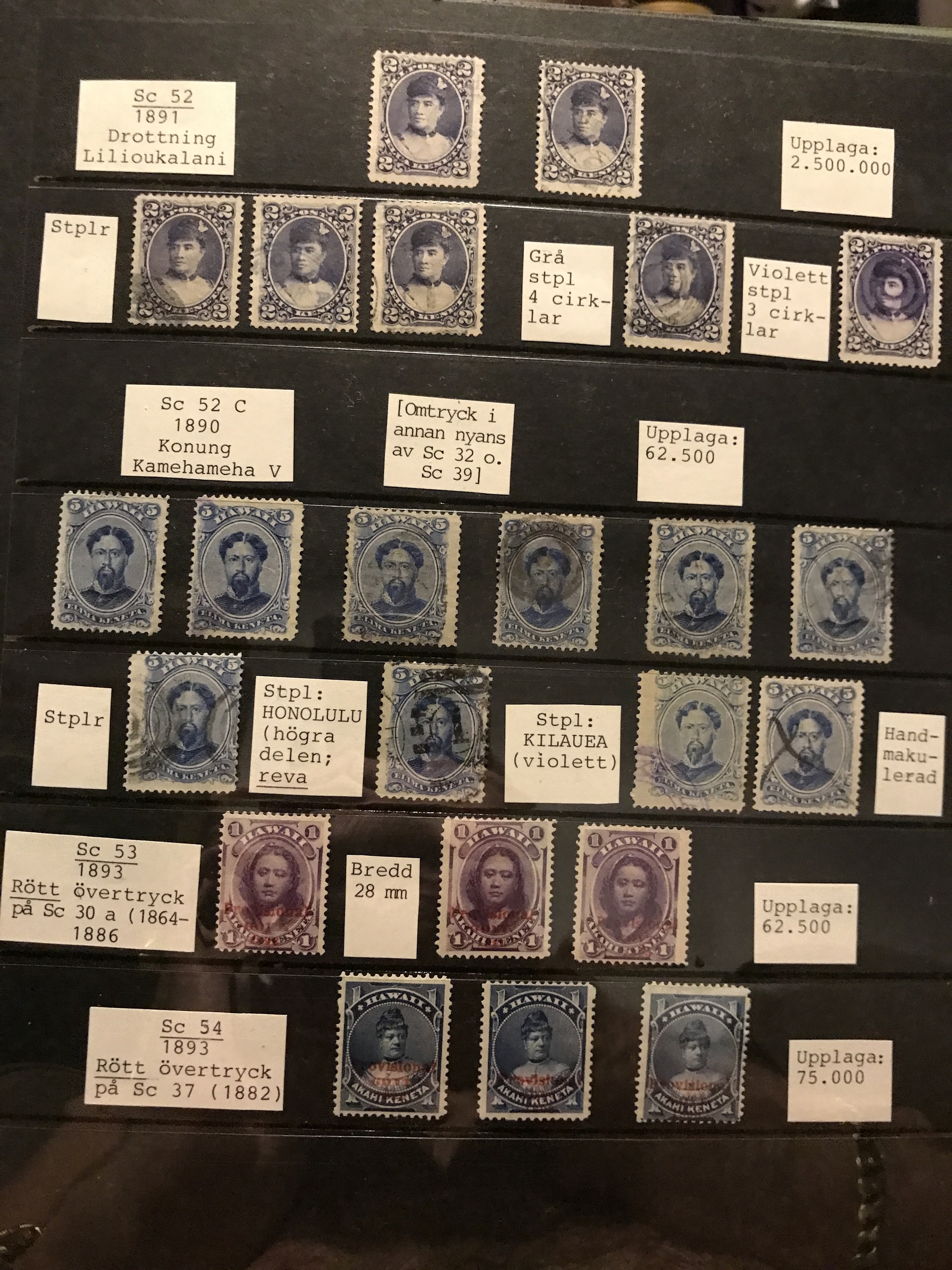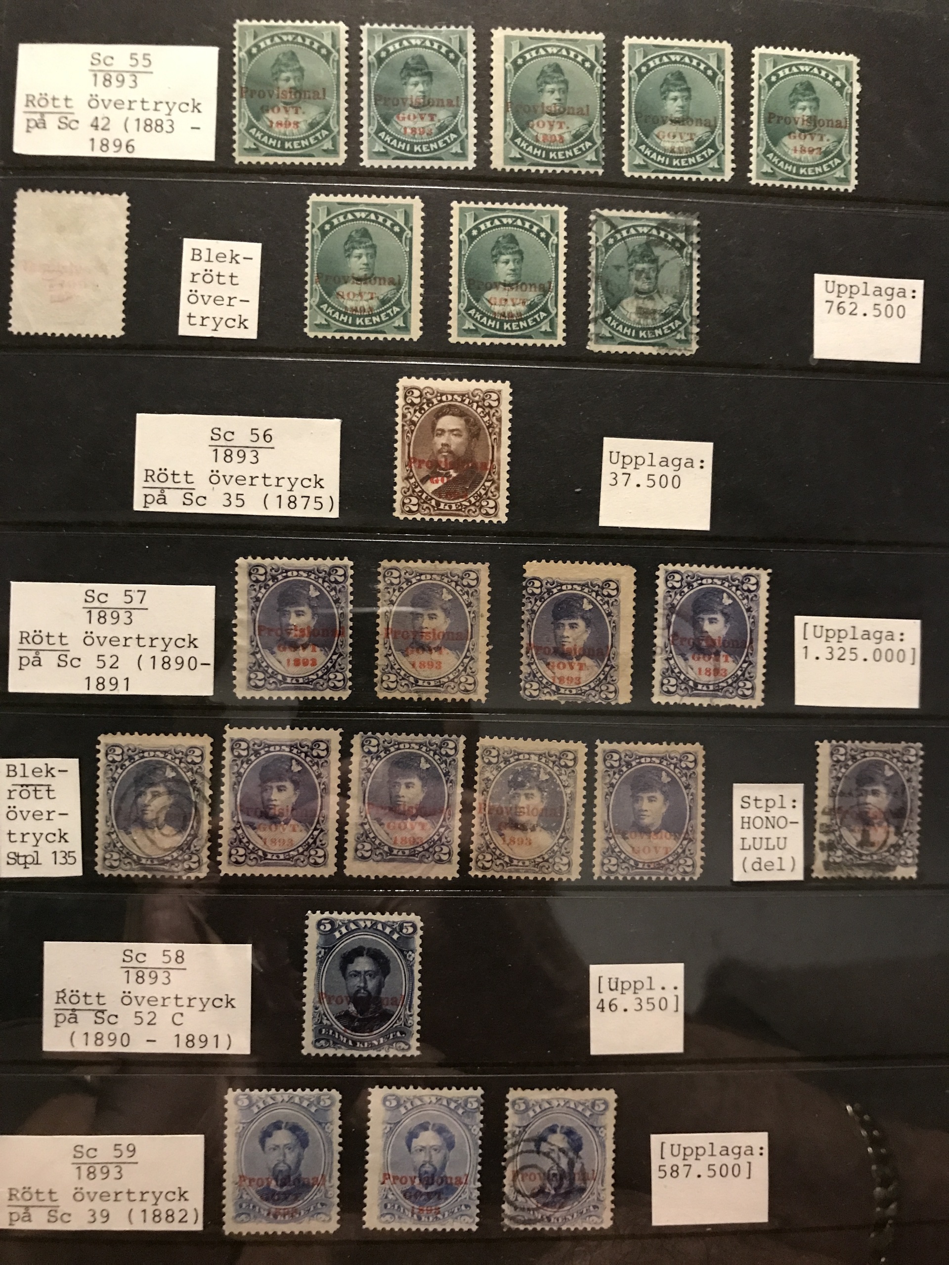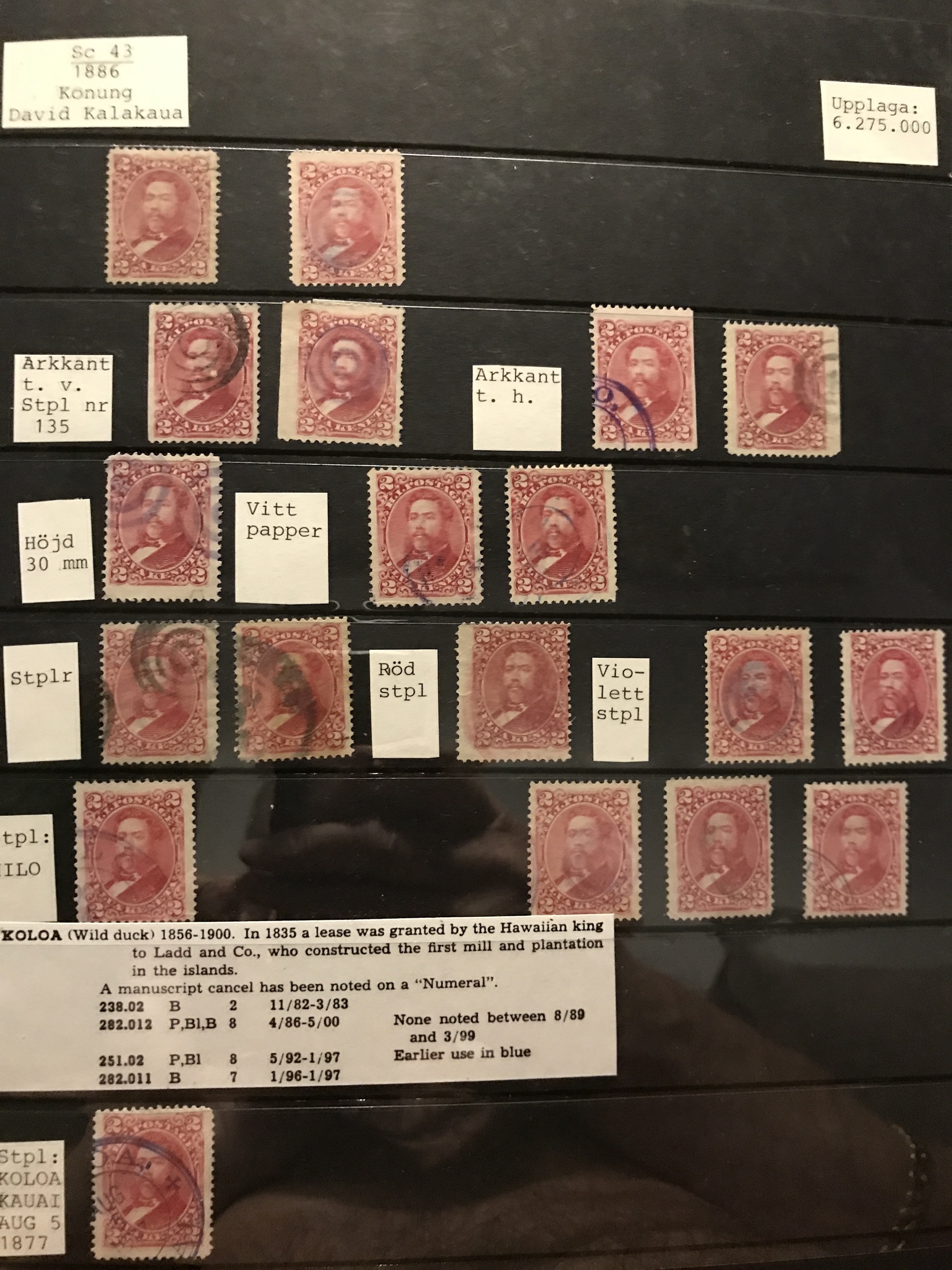 U.S.A., Hawaii. ★/⊙. Specialized collection 1868–99 in visir binder incl. dupl. and nine unused postal stationery items. Also some modern covers, etc. Please see a selection of scans at www.philea.se. (300)