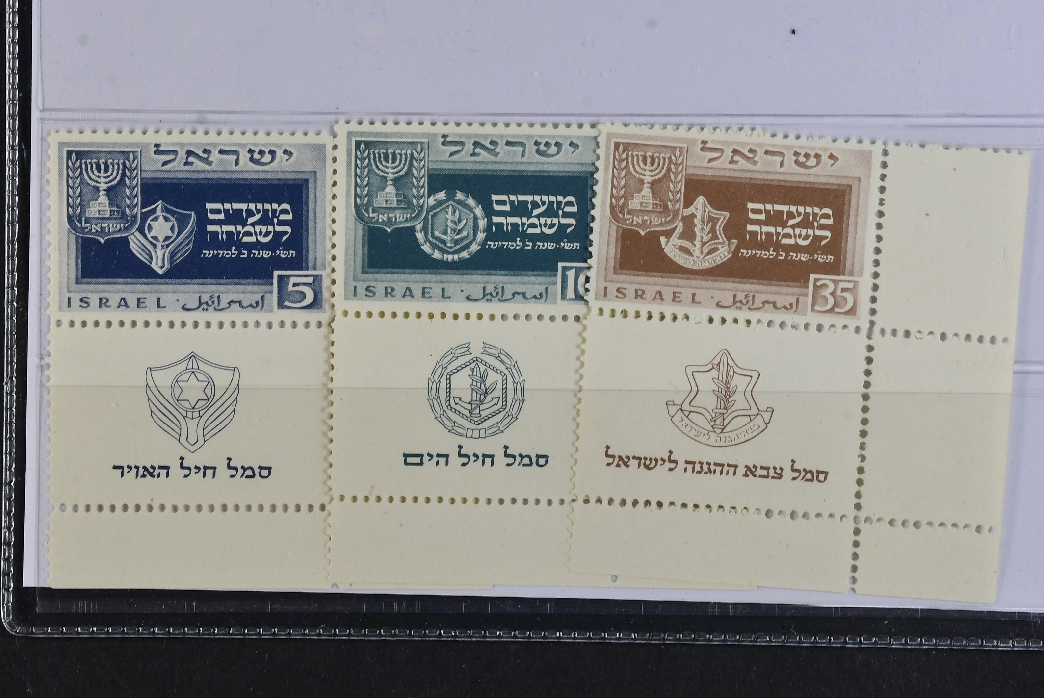 Israel. Michel 19–21zf ★★, 1949 Festival SET with tab (3). EUR 950