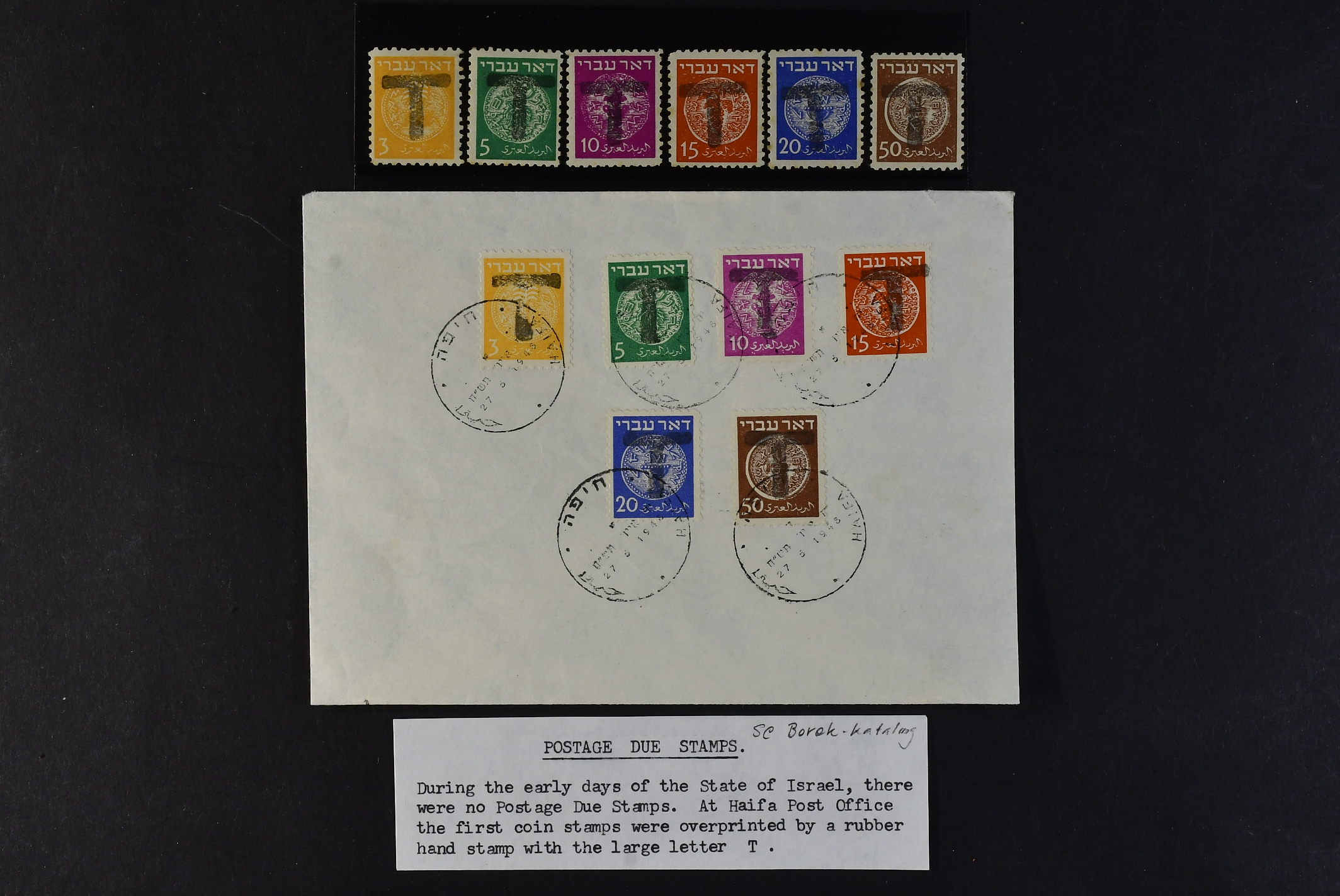 Israel. Postage due ★★, 1948 set (6) Hand overprint with rubber stamp with large letter "T". Also unaddressed envelope cancelled 27.6.1948.