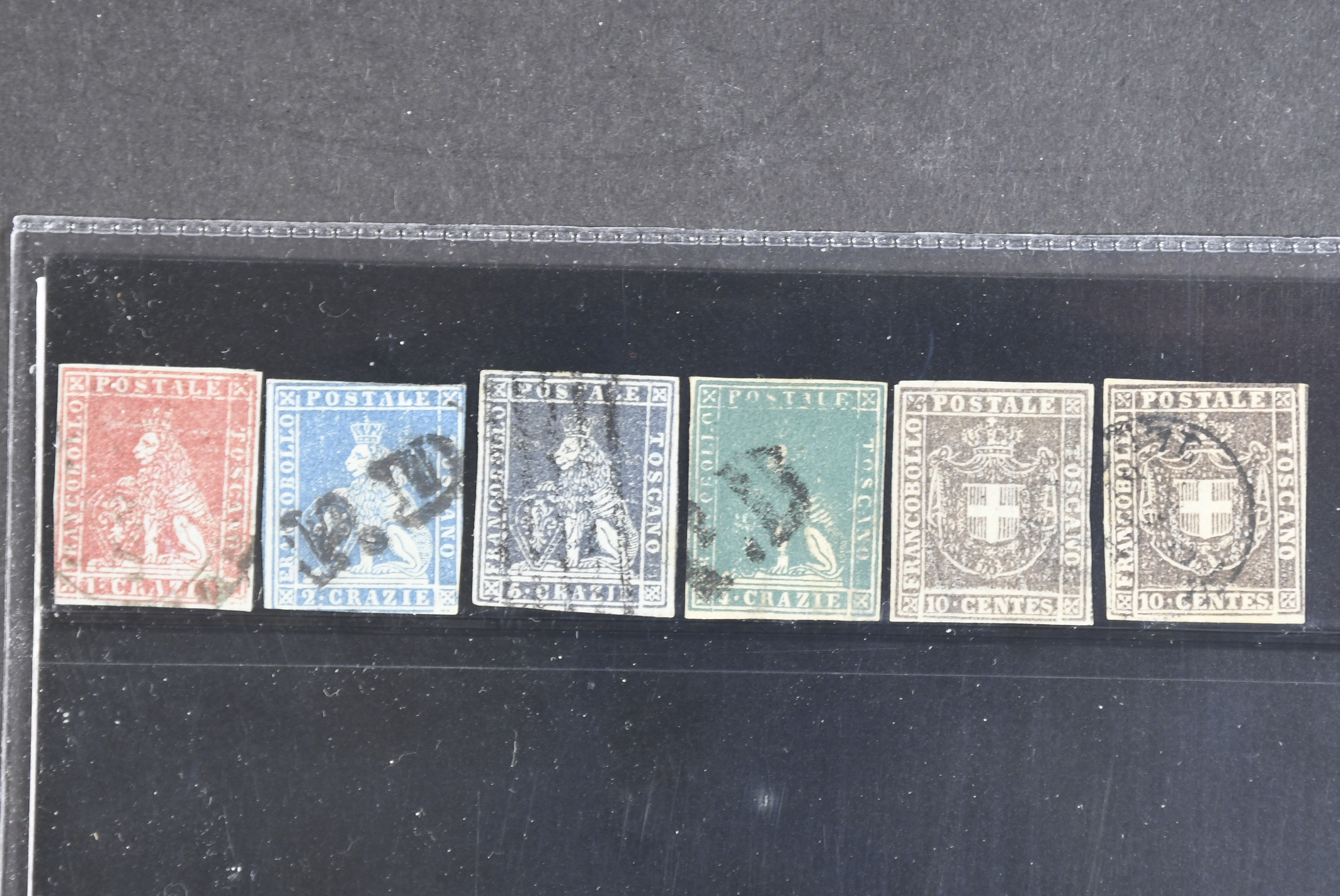 Italy, Tuscany. Used 1851–1860. All different, e.g. Mi 4xa, 5xb, 7y, 14, 19a+b. Mostly good quality. Mi € 695 (6)
