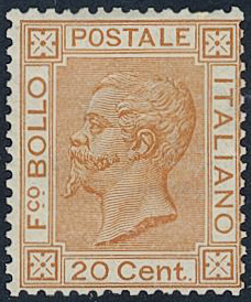 Italy. Michel 28 ★, 1877 Victor Emanuel II 20 c orange. One minor short perf in top. EUR 4000