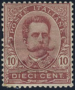 Italy. Michel 38 ★★, 1879 King Umberto I 10 c carmine. Short perf. EUR 400 if *