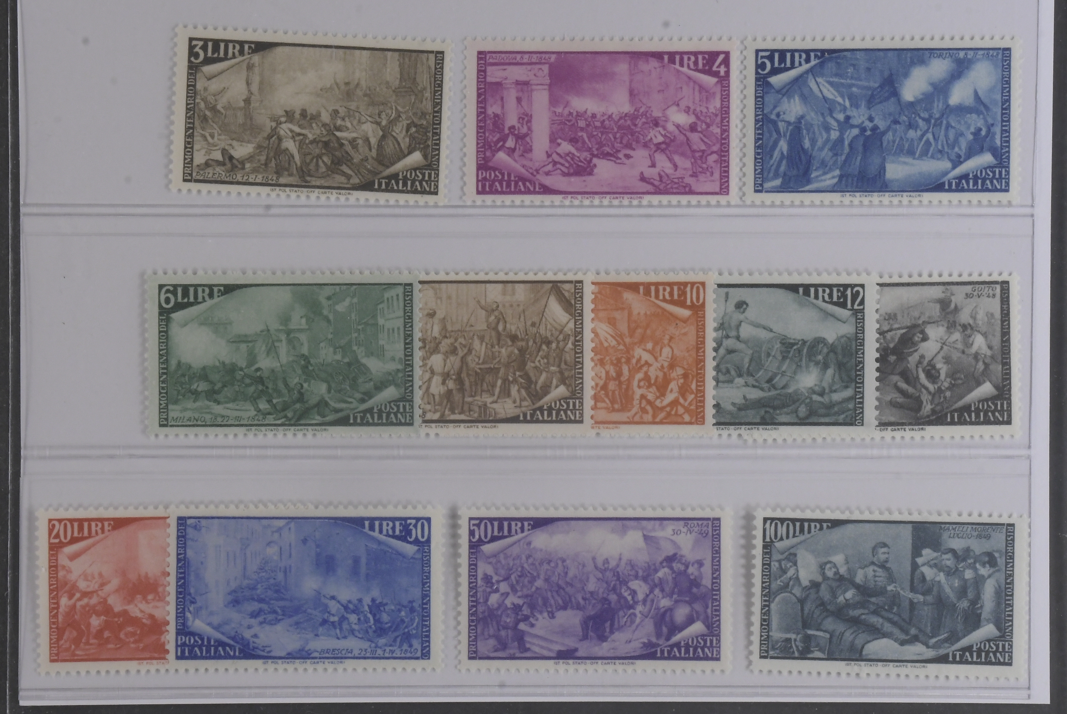 Italy. Michel 748–59 ★, 1948 1848 Revolution SET (12), missing the 35 L value. 450 € if **.