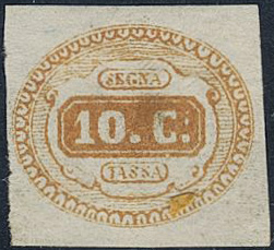 Italy. Postage due Michel 1d ★, 1863 Numeral 10 c brown-orange. EUR 2200