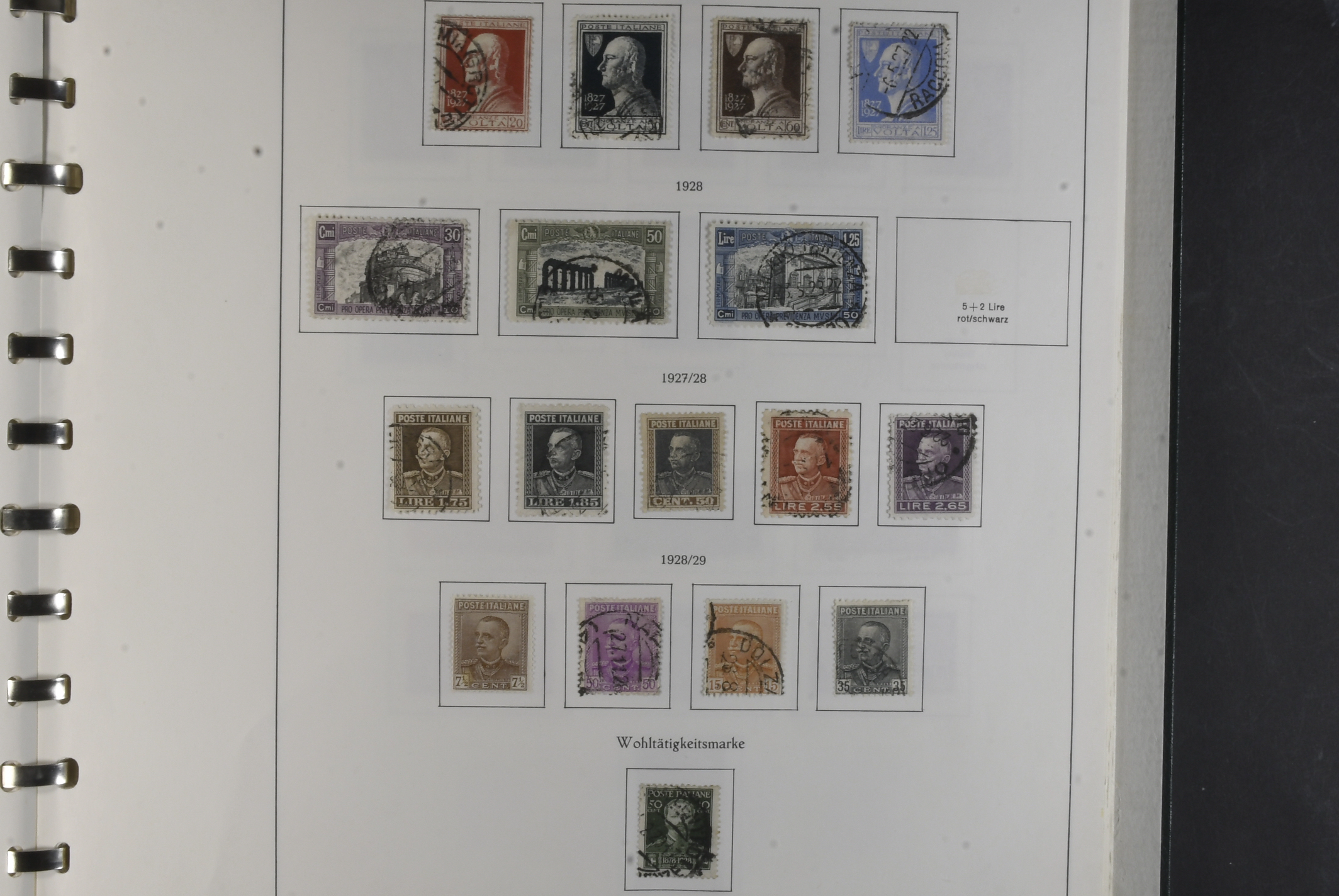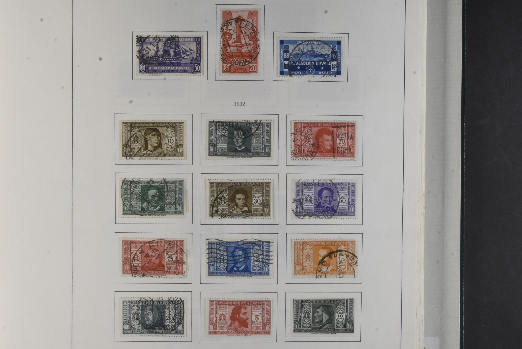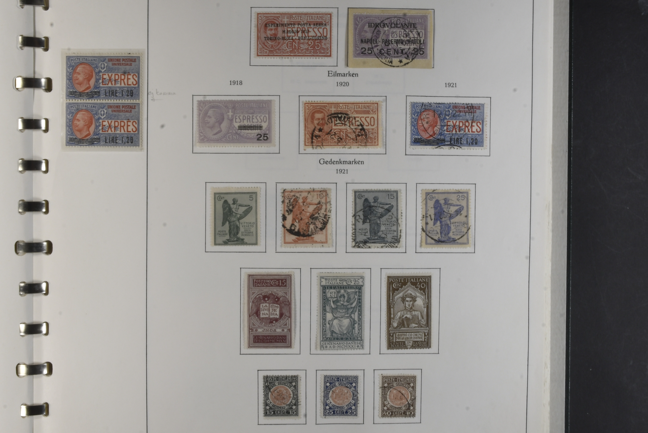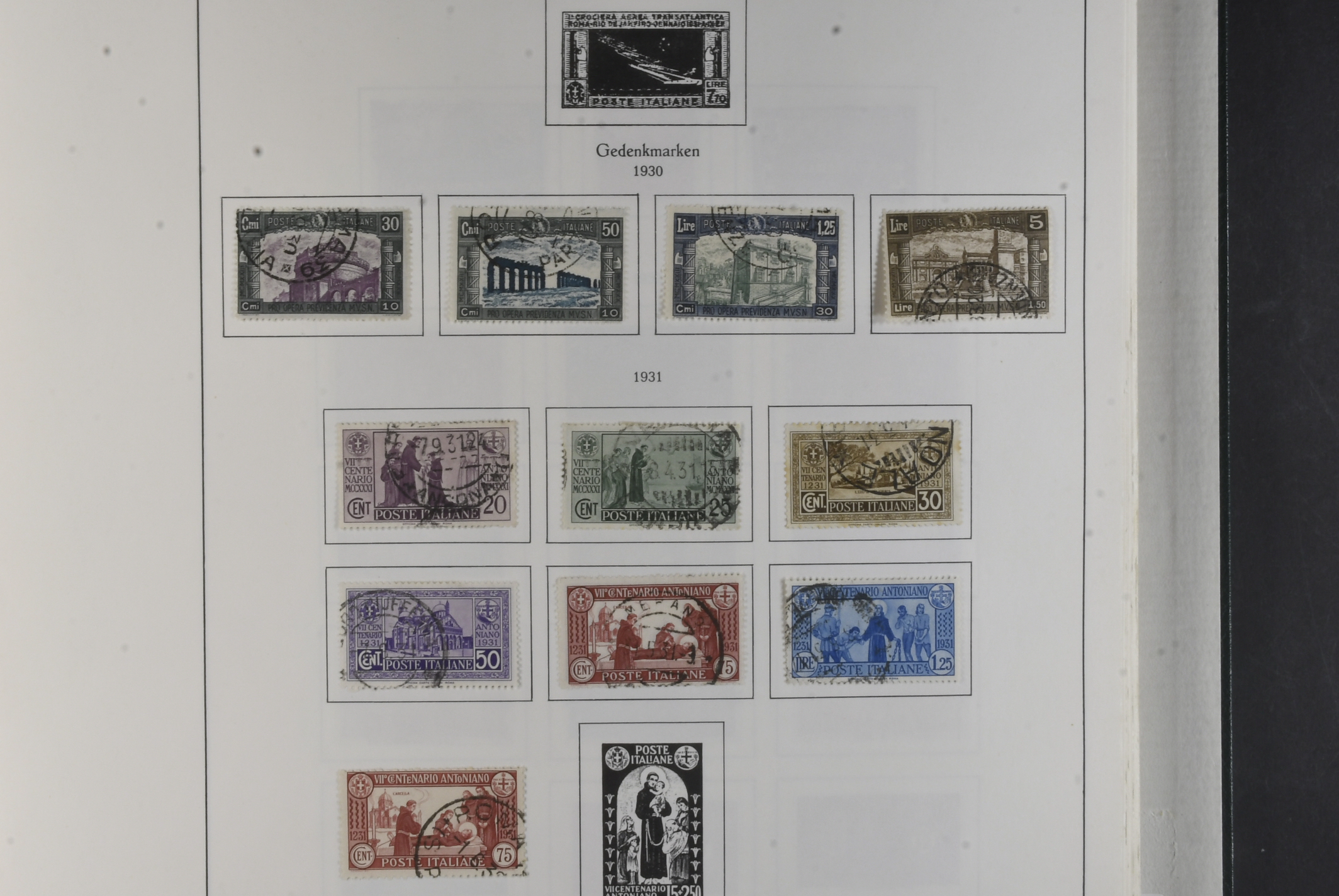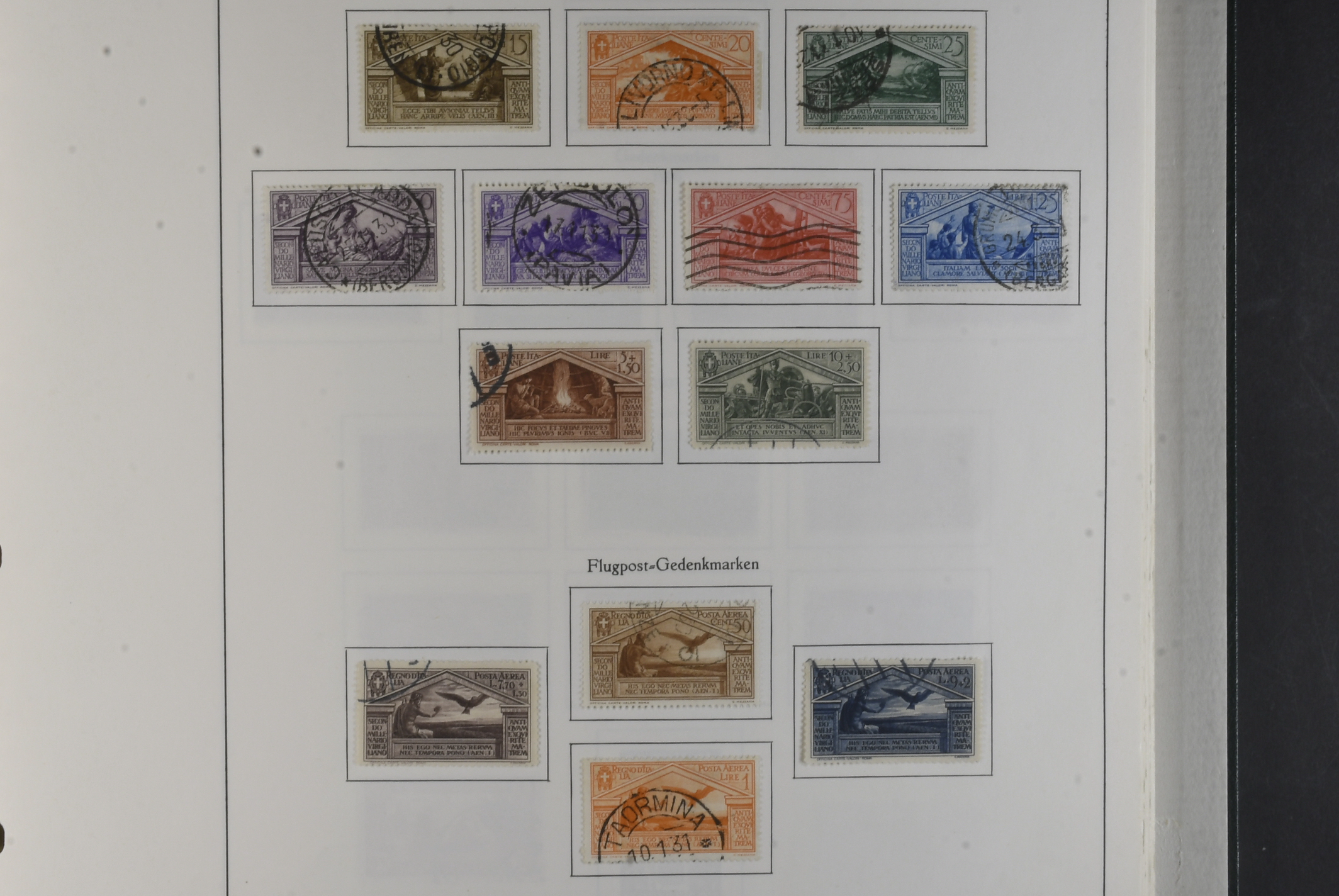 Italy. Accumulation mostly used 1861–1990 in two albums. Interesting collection including most of the 'better' sets from 1910–1940s, including Air Mail Commemorative Issues. Starts with stamps from Napoli. In between well filled, from 1940 generally complete. Please see a selection of scans at www.philea.se, and if possible also explore. Mostly fine quality. (>1500)