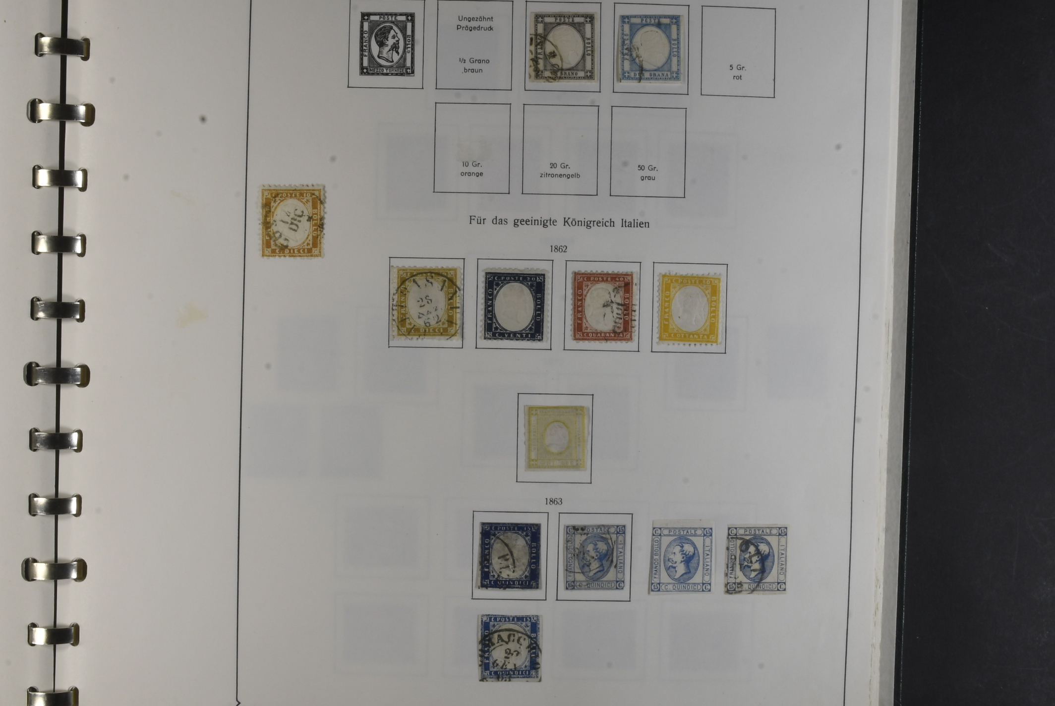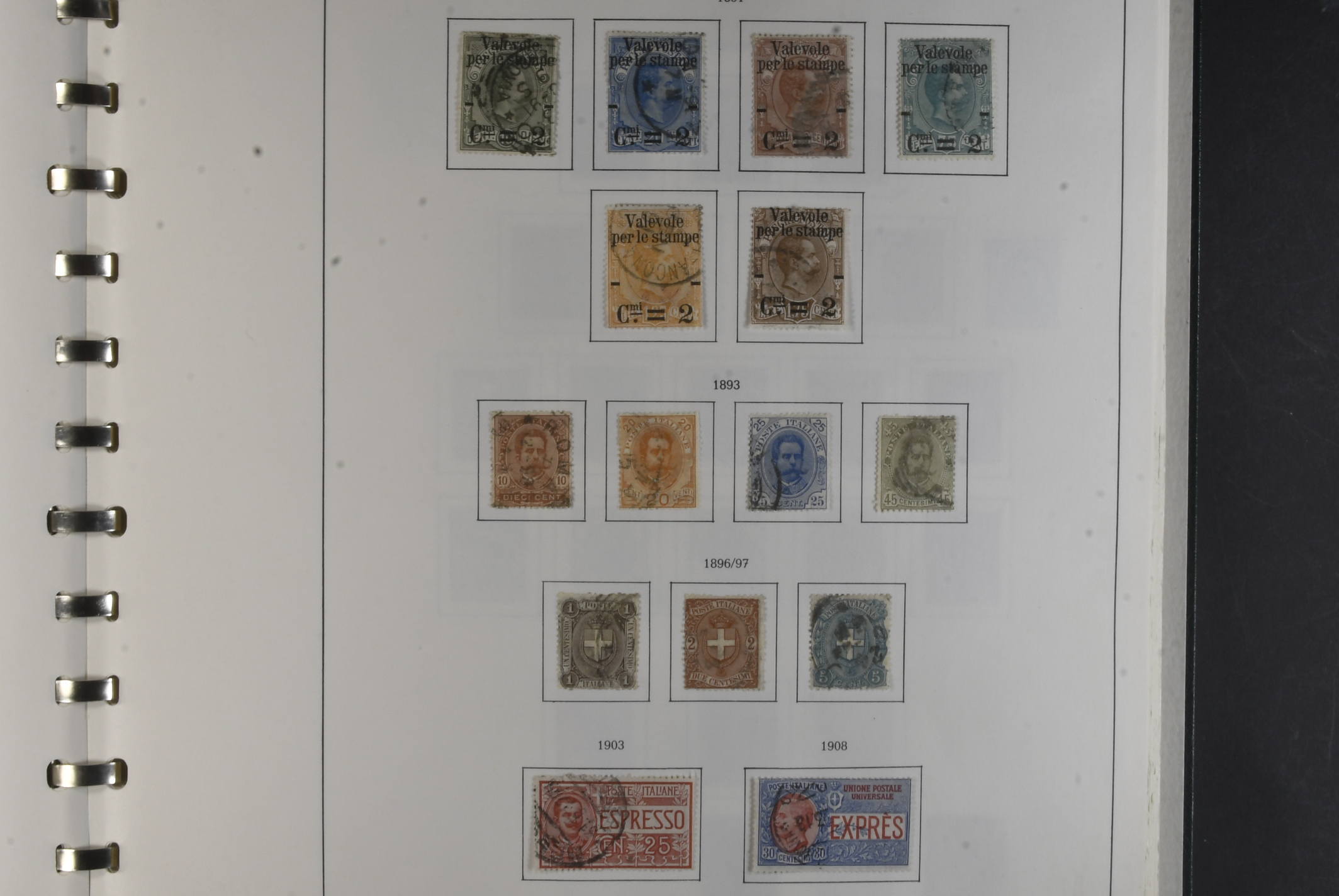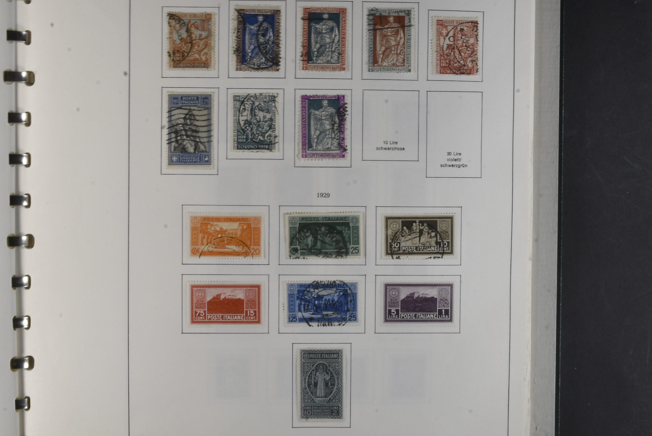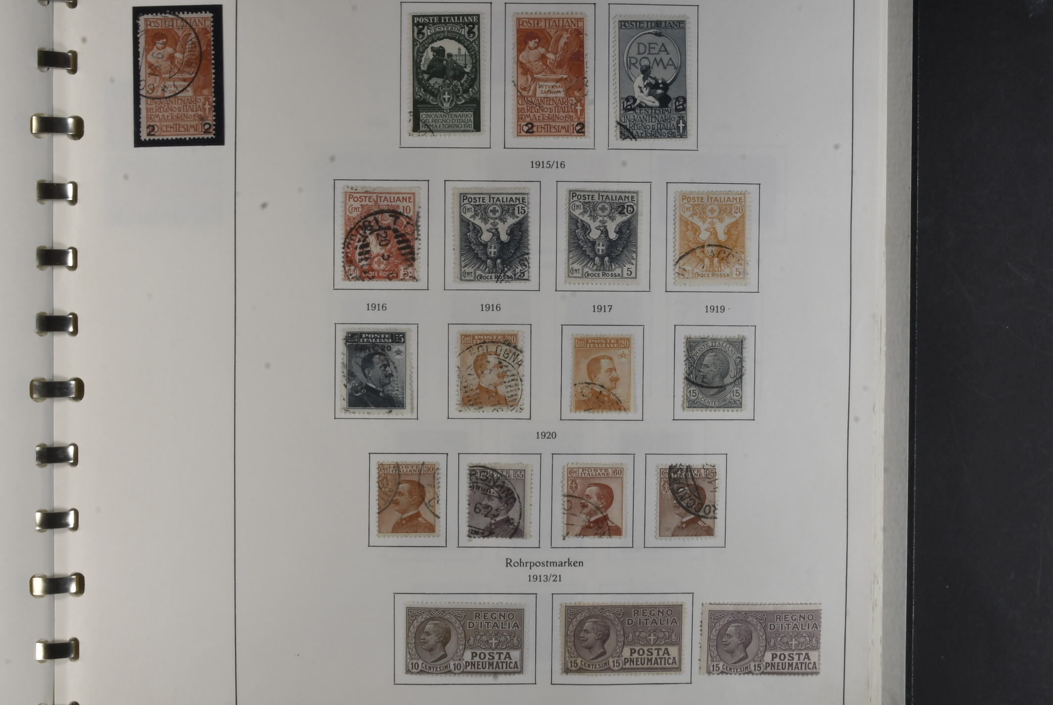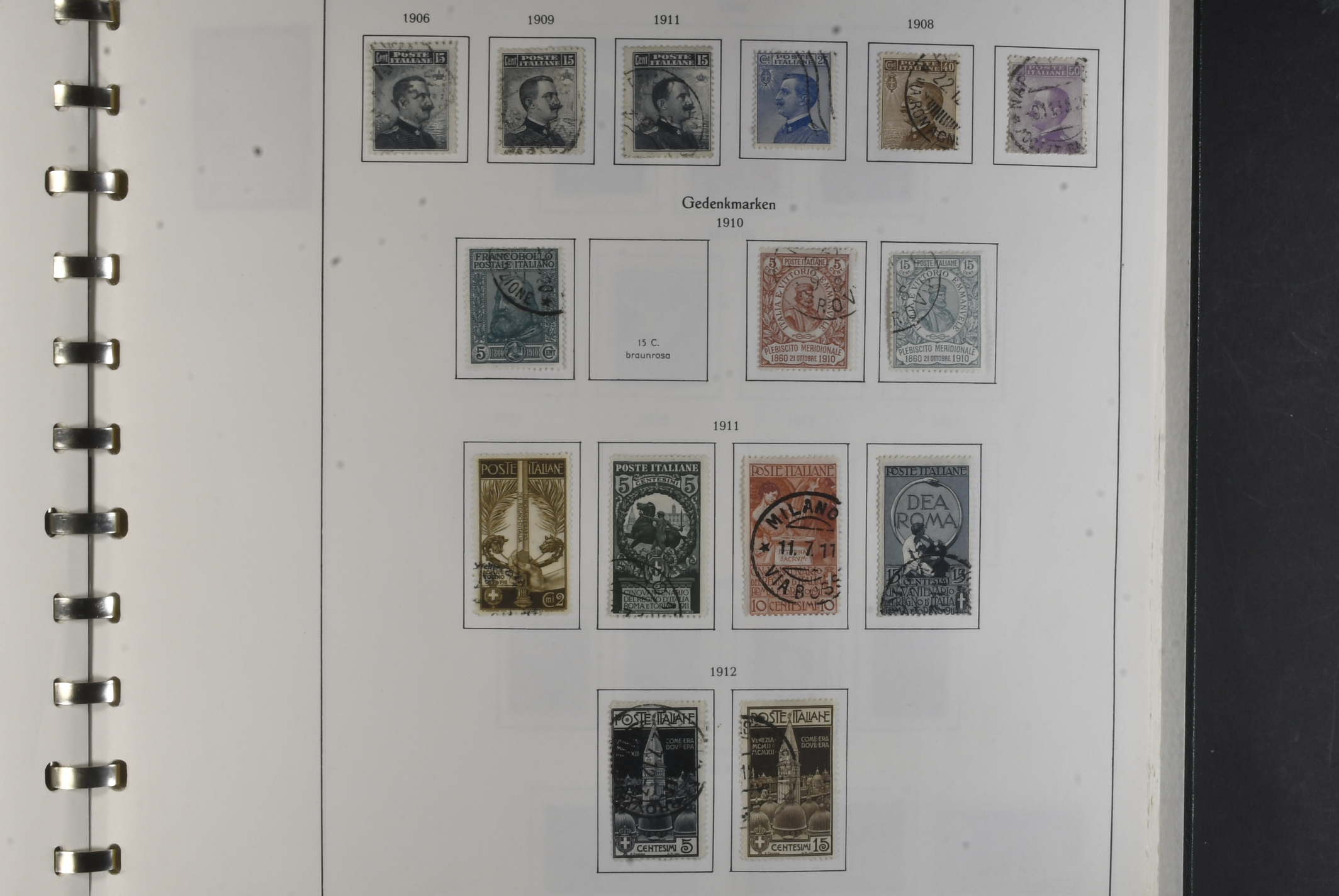 Italy. Accumulation mostly used 1861–1990 in two albums. Interesting collection including most of the 'better' sets from 1910–1940s, including Air Mail Commemorative Issues. Starts with stamps from Napoli. In between well filled, from 1940 generally complete. Please see a selection of scans at www.philea.se, and if possible also explore. Mostly fine quality. (>1500)