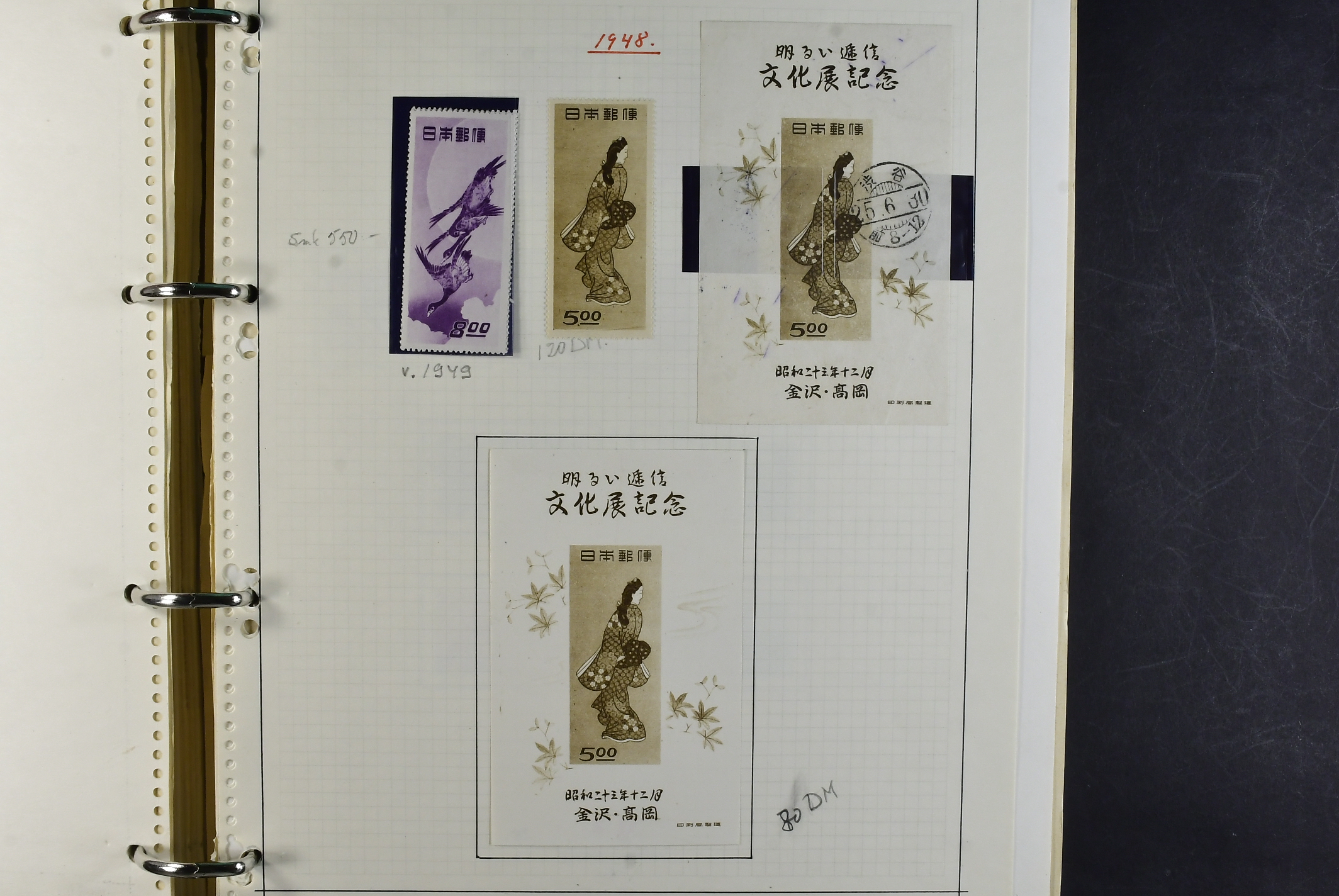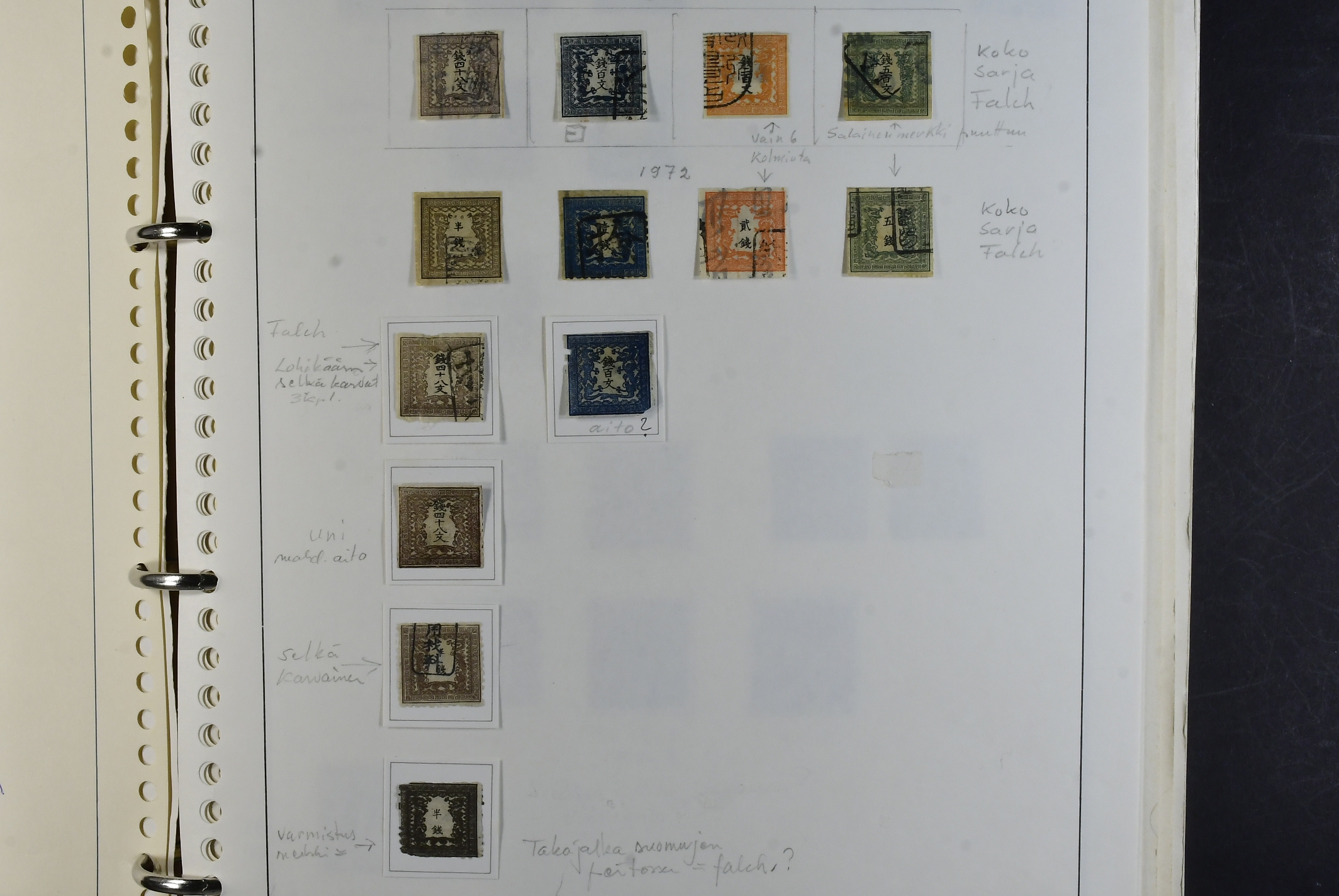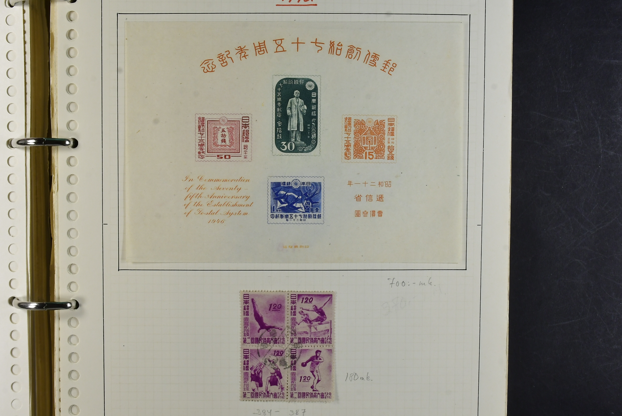 Japan. Collection ★★/★/⊙ 1871–1983 in two albums. Well filled collection, starts with a good section classics mostly forgeries (as always) from 1900–1975 only missing the most expensive stamps. Incl. many of the Souvenir Sheets mixed mint, a few mnh and used through the whole collection. There is also a small number of covers and postcards. Viewing is recommended Please see a selection of scans at www.philea.se. Somewhat mixed quality. (ca. 1200)
