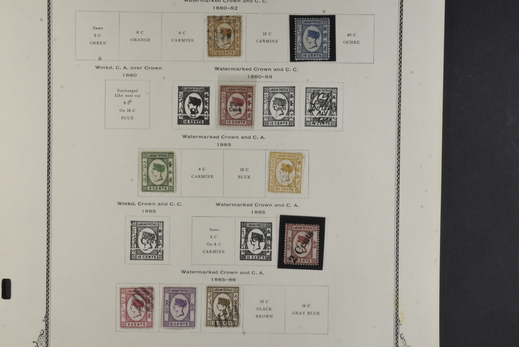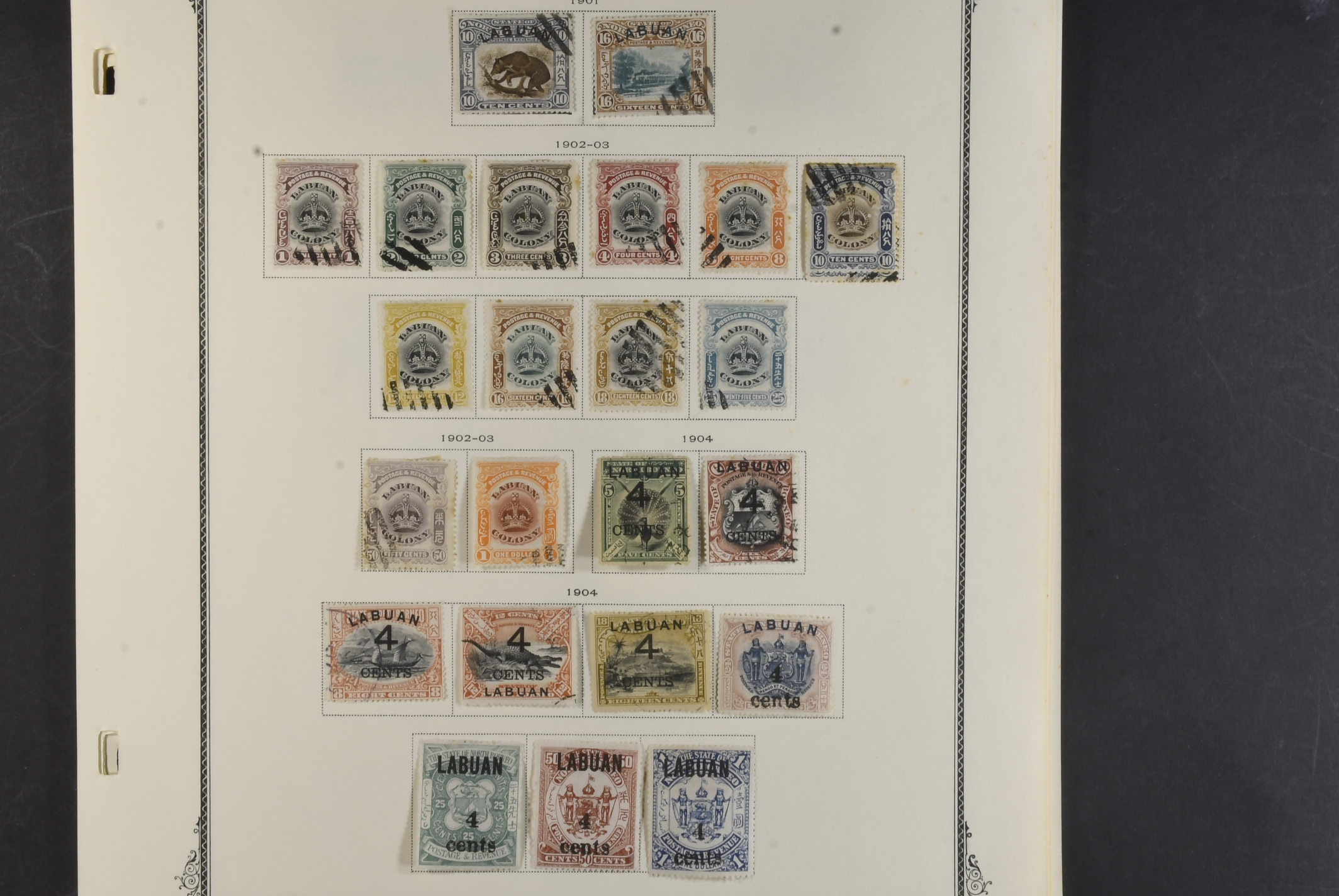 Malay states, Labuan. Collection ★/⊙ 1880–1904 on Scott leaves. With some better mint stamps. The entire lot is presented at www.philea.se. Mostly good quality. (99)