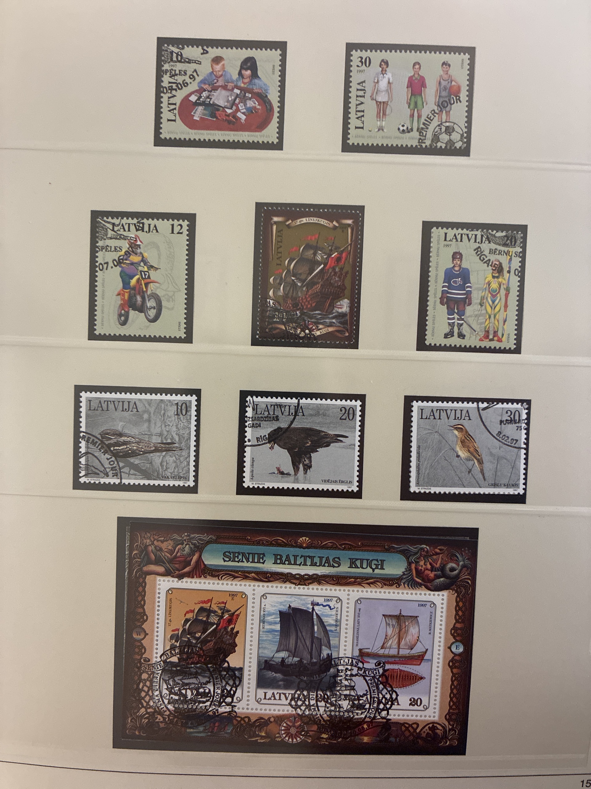 Latvia. Collection used 1990–2006 in two albums. Latvia 1992–2006 and Lithuania 1990–2002 in Safe dual. Looks complete. Please see a selection of scans at www.philea.se. Good quality. Approx. 6 kg. (700)