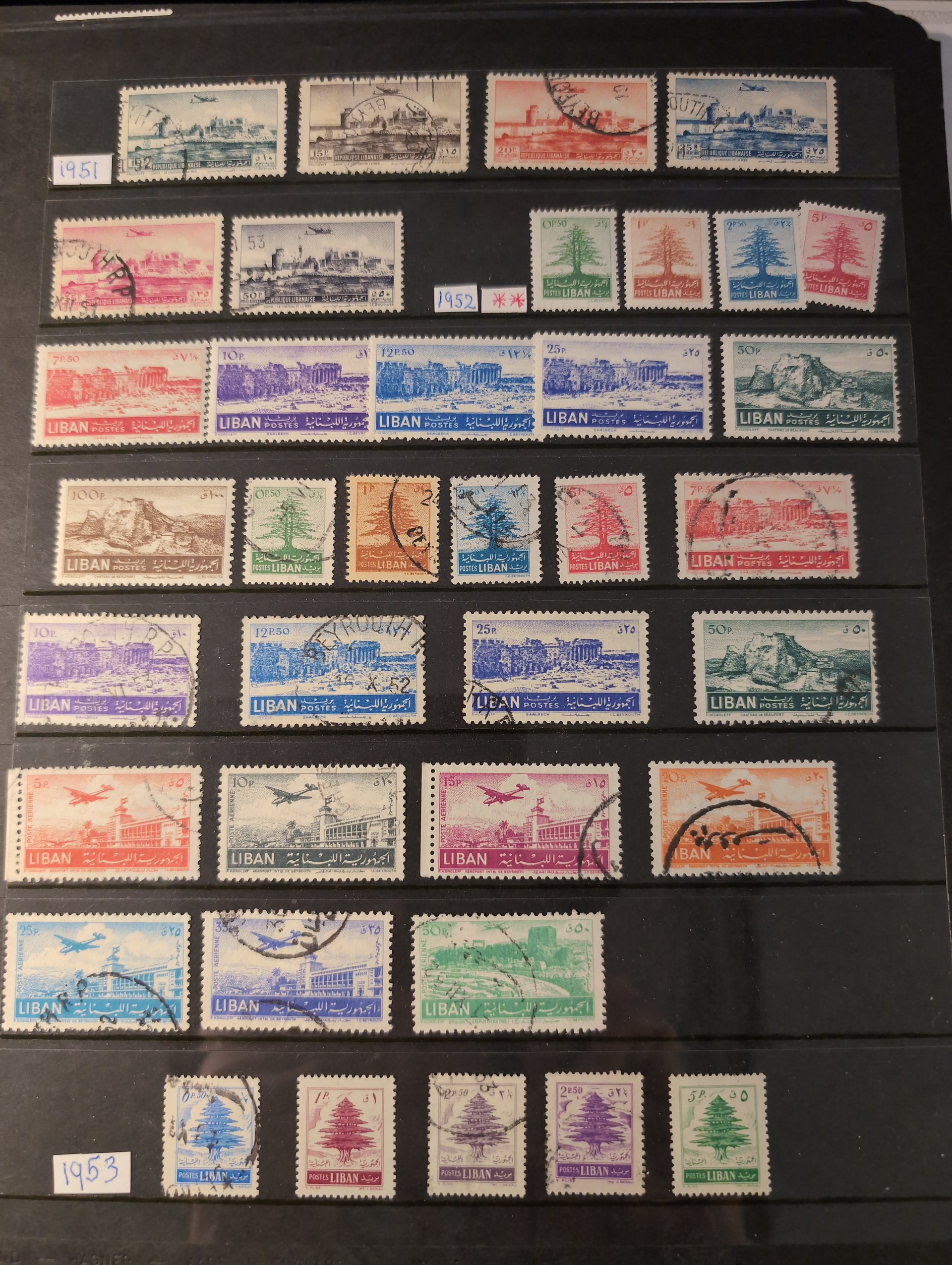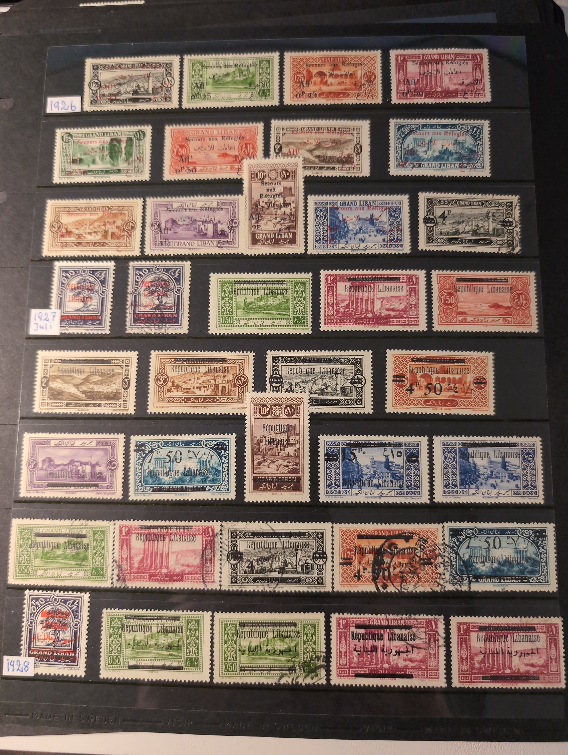 Lebanon. Collection mostly used 1920s–1960s on visir leaves. with some better stamps. Good start. Please see a selection of scans at www.philea.se. Mostly fine quality. (600+)