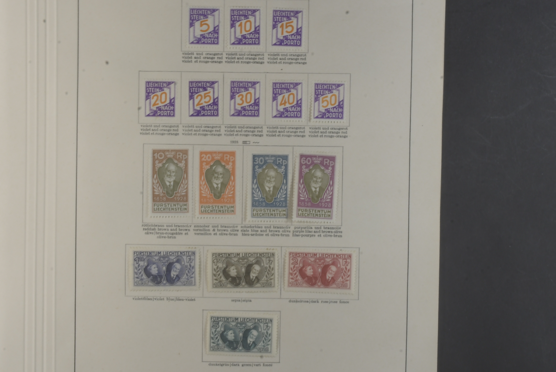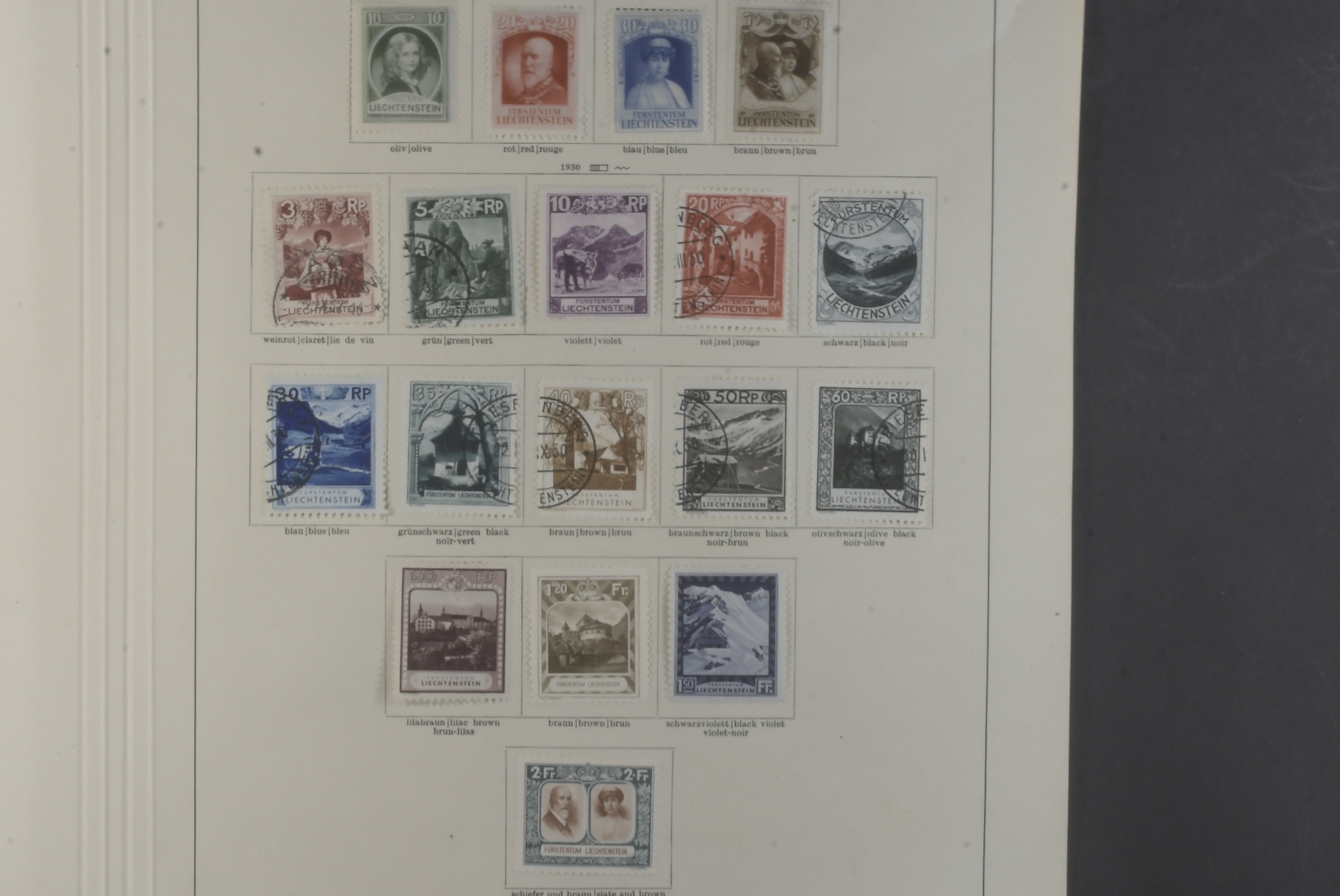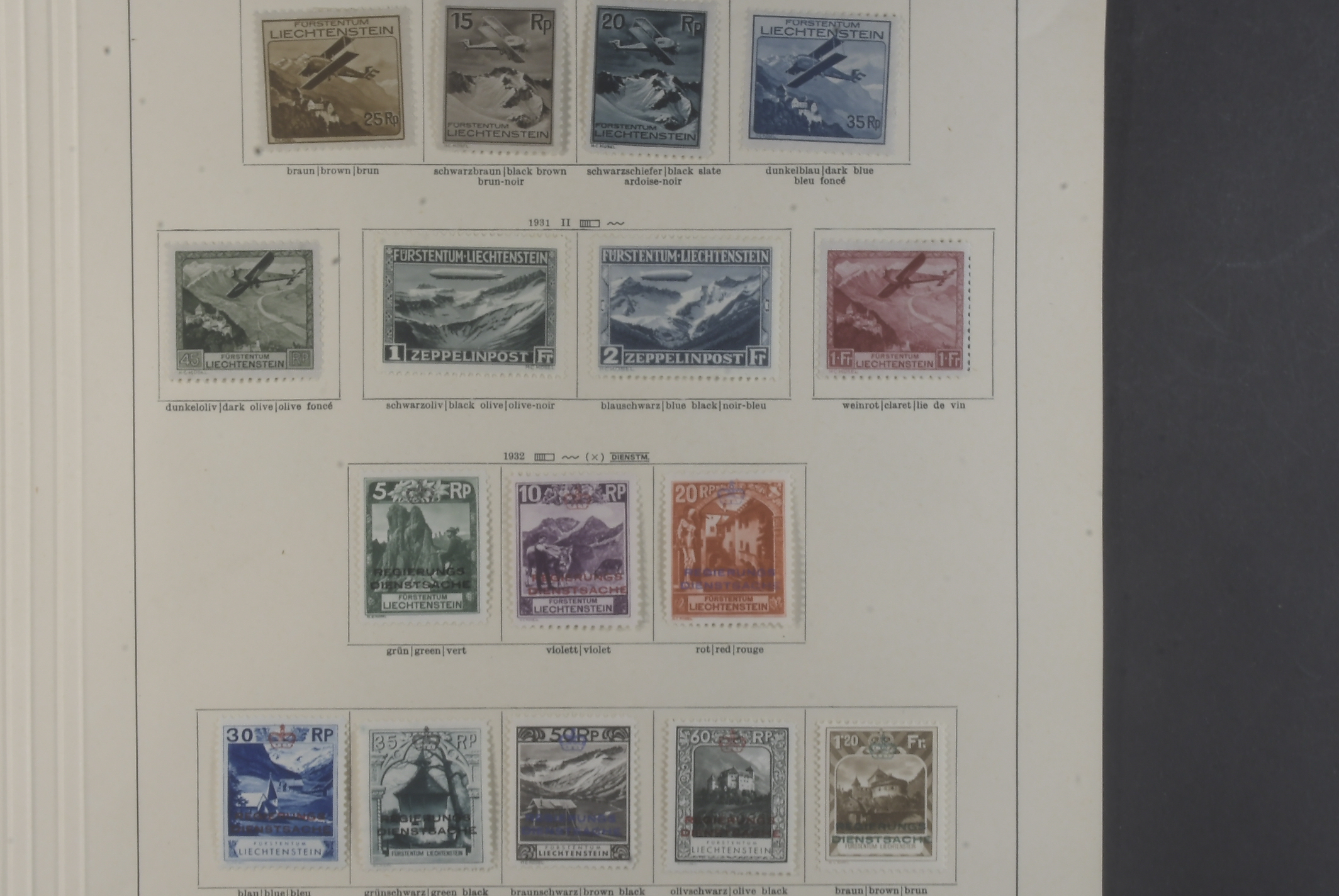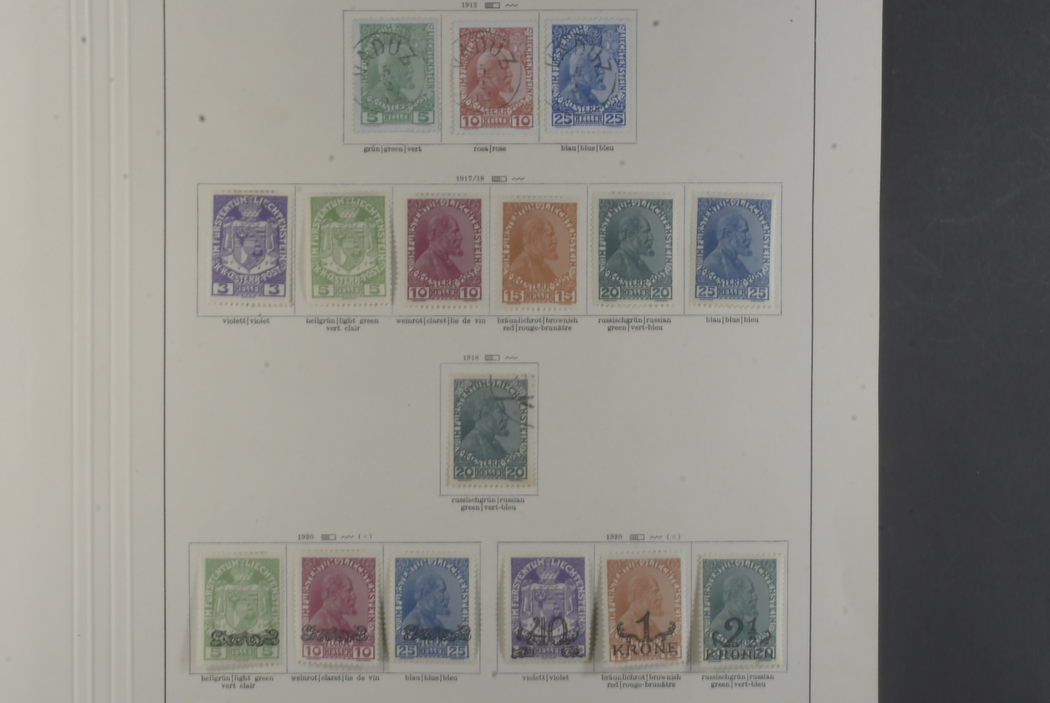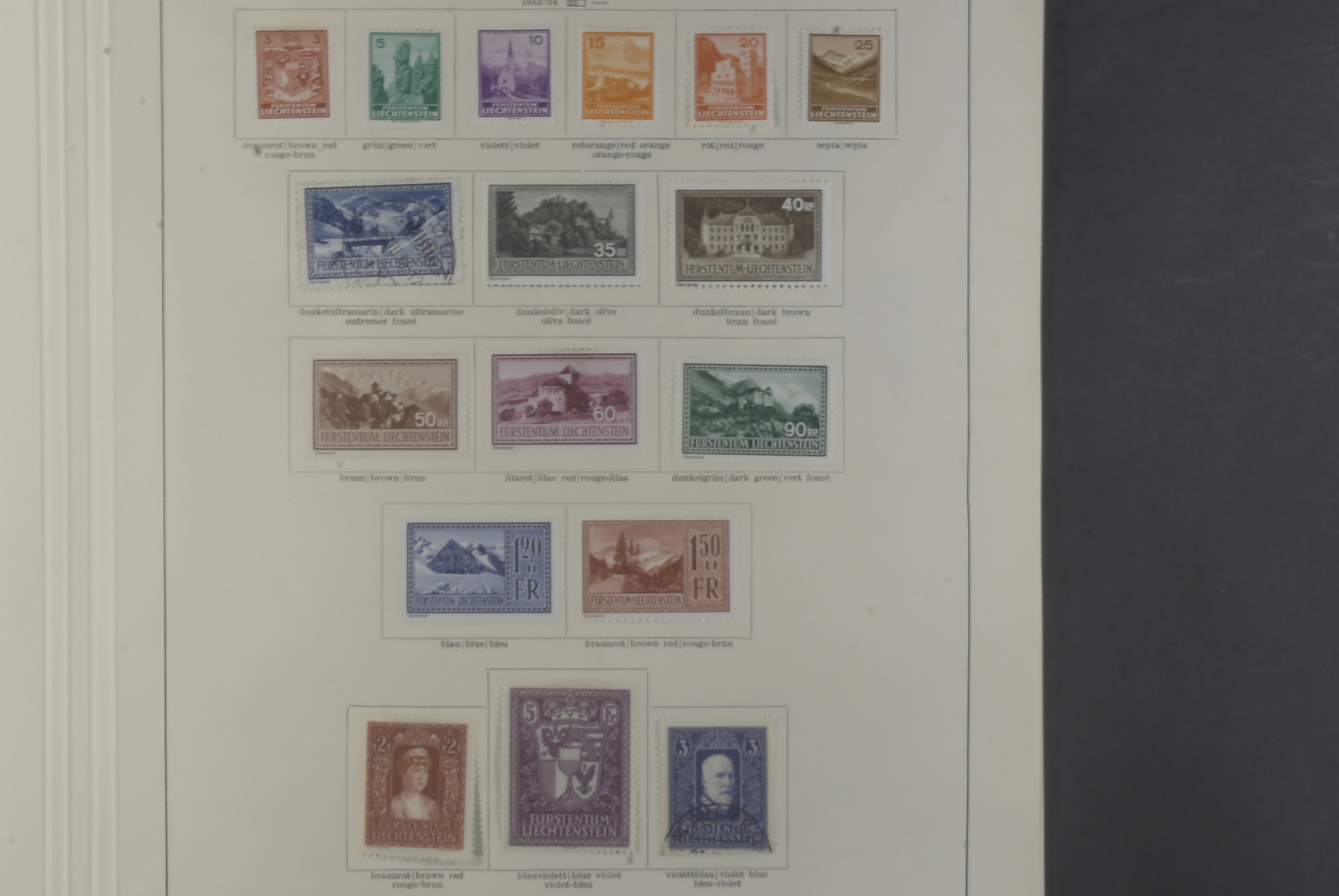 Liechtenstein. Collection ★/⊙ 1912–56 on Schaubek leaves. Almost complete mixed used and mint missing only one s/s. Very high catalogue value with e.g. Mi 1–3, 523–60 used, 71–93 *, 94–117 used/*, 108–115 partly pasting, 119–21 used, 140–42 *, 141 used. Also S/S 5 **. Please see a selection of scans at www.philea.se. Mostly fine quality.