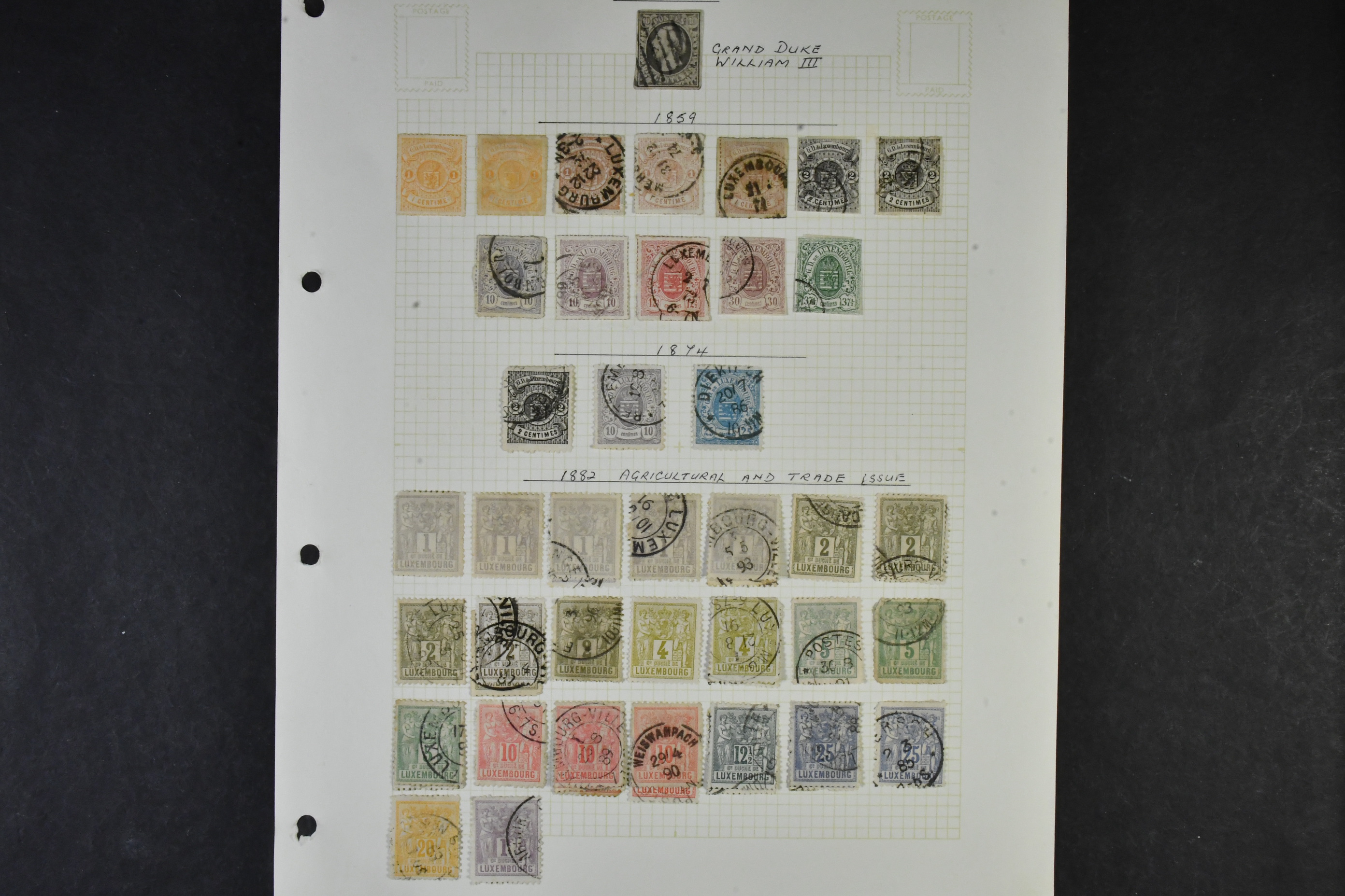 Luxembourg. Collection ★/⊙ 1852–1960s on leaves. With some better stamps and sets mostly used. incl a few Andorra and Liechtenstein aswell. Please see a selection of scans at www.philea.se. Good quality. (300+)