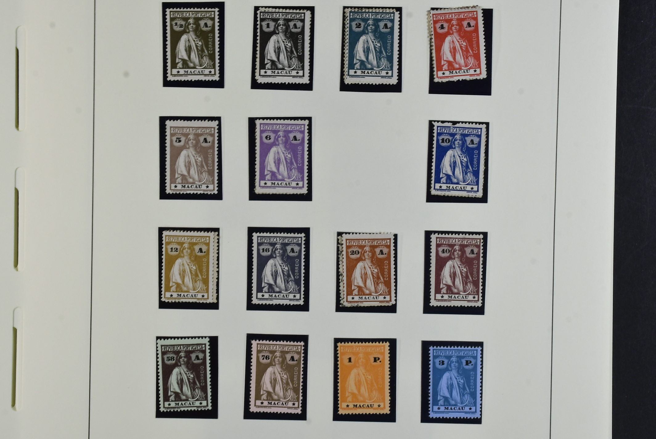 Macau. Collection ★★/★/⊙ 1884–1979 on leaves. Good section early stamps mostly mint, Crowns incl. some overprints, Luis I incl. better overprints, Vasco Da Gama set, Carlos I with values up to 78a, Carlos and Vasco da Gama Republica overprints, Good section Ceres incl. both 3p and 5p×2. later issues mostly used. Please see a selection of scans at www.philea.se. Good quality. (250+)
