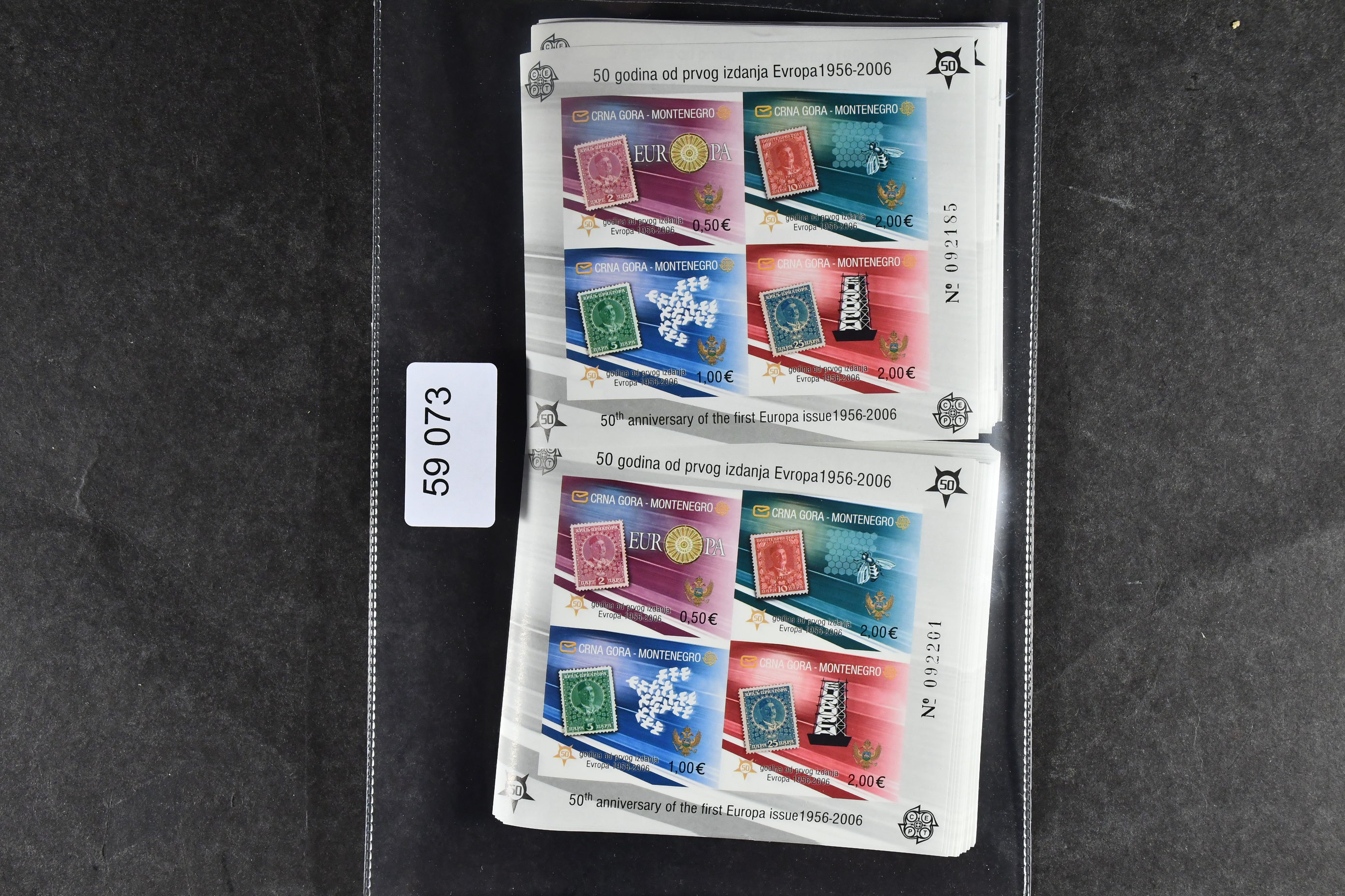 Montenegro. Michel 108–11 ★★, 2006 Europa Cept 50 years. 100 IMPERFORATED s/s! Unusual offer, face value alone EUR 550 and catalogue value EUR 8000.