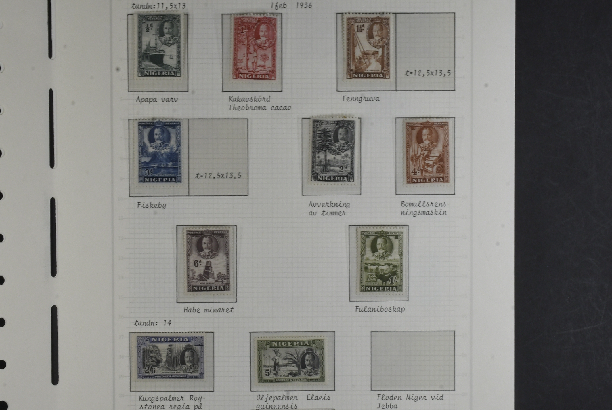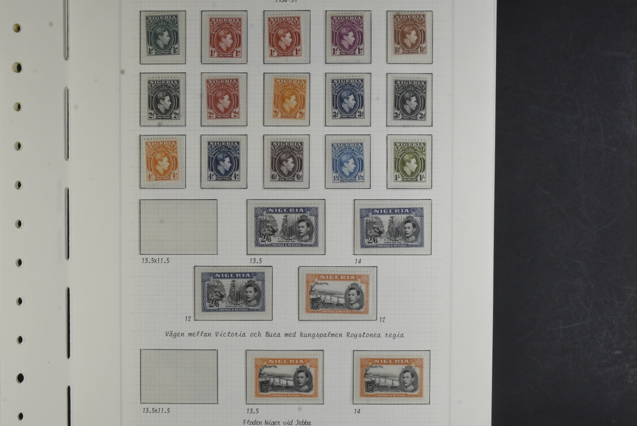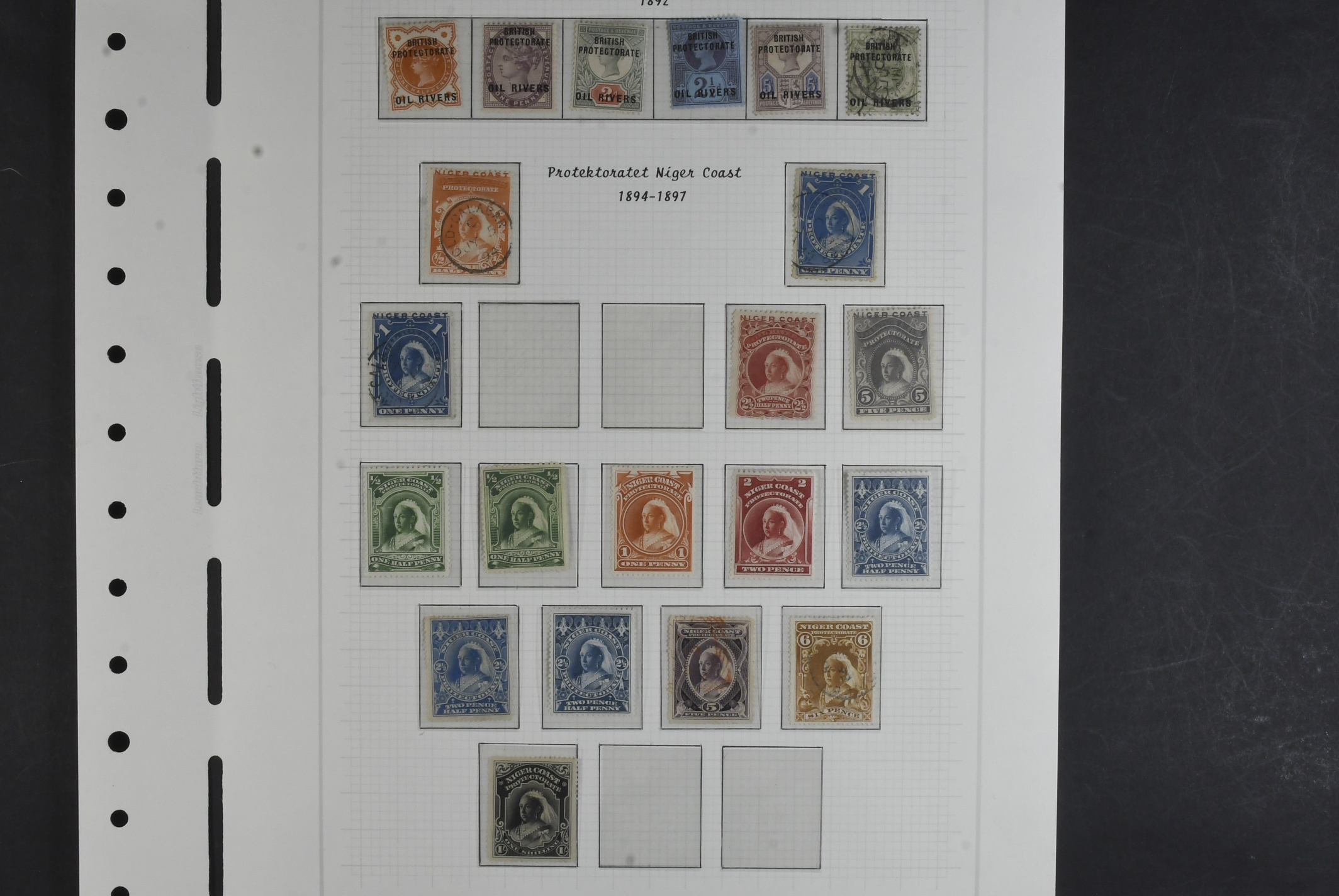 Nigeria. Collection ★/⊙ 1892–1938 on leaves. Incl. Oil Rivers up to 1s and Niger Coast to 1s, KGV to 5s and KGVI 5s (3). The entire lot is presented at www.philea.se. Mostly fine quality. (59)