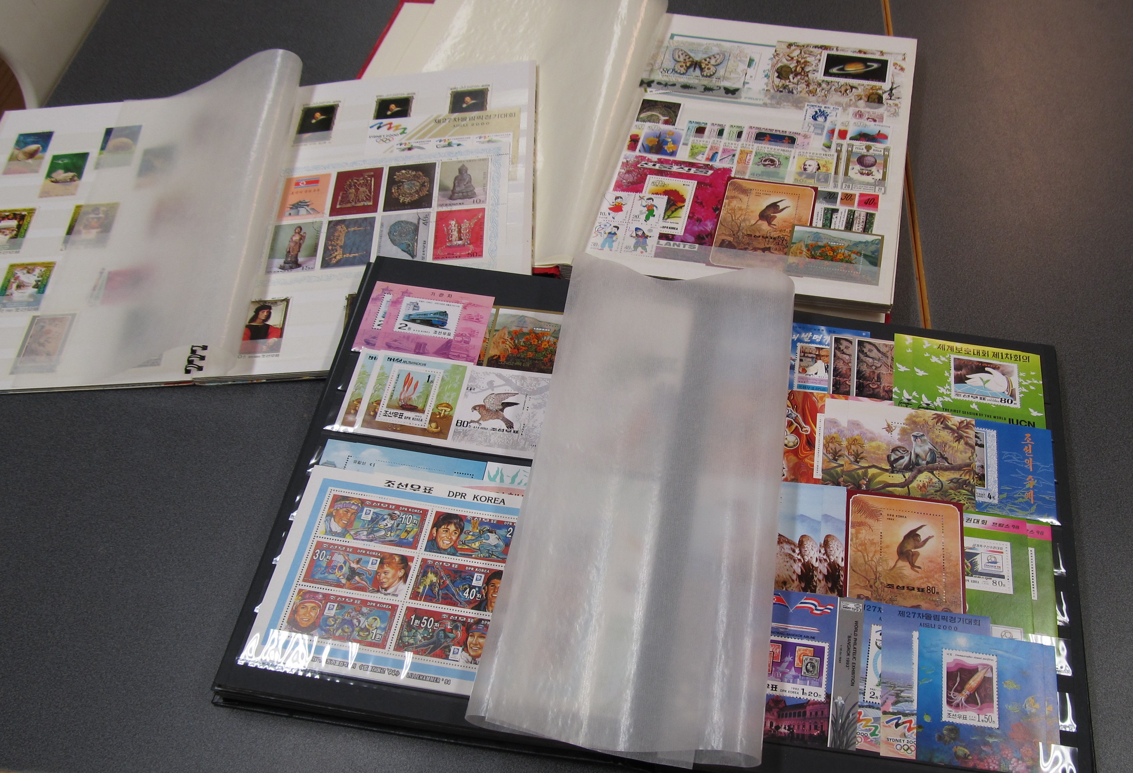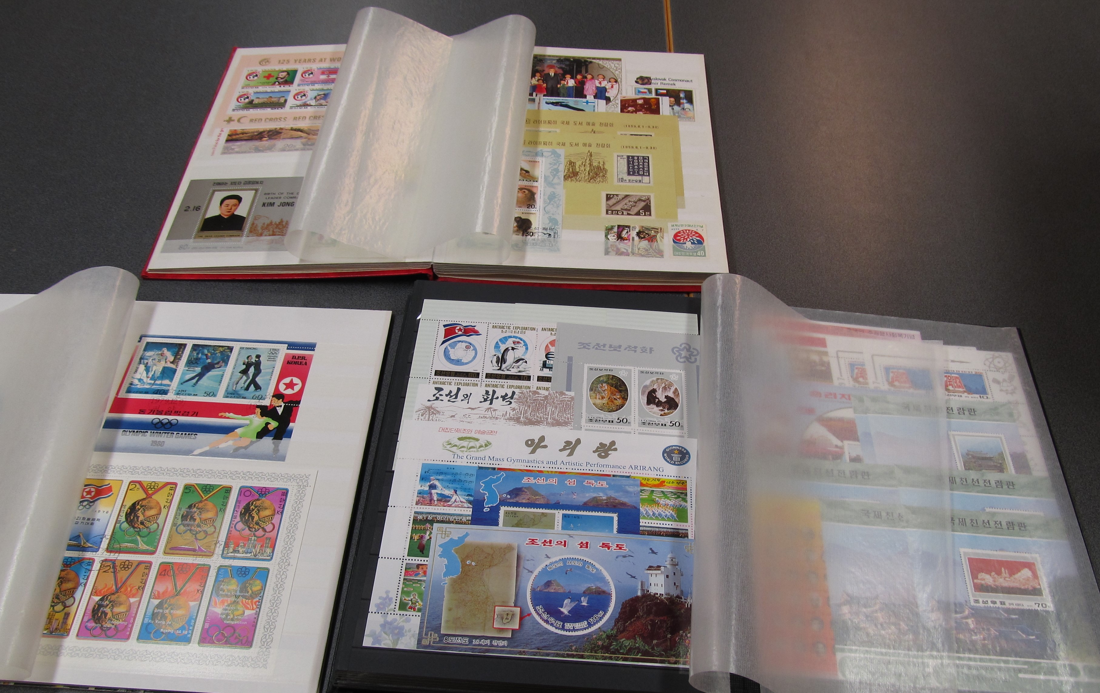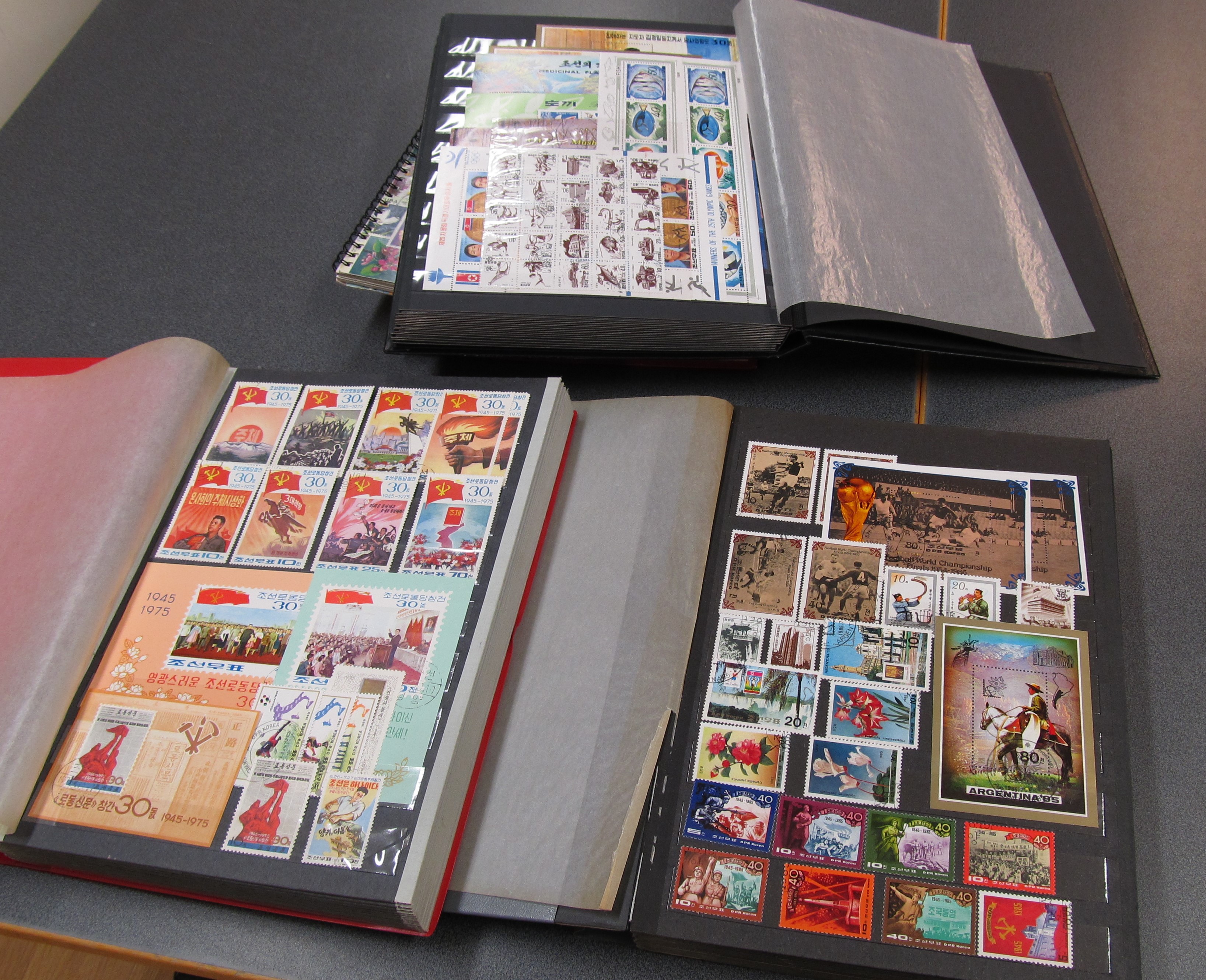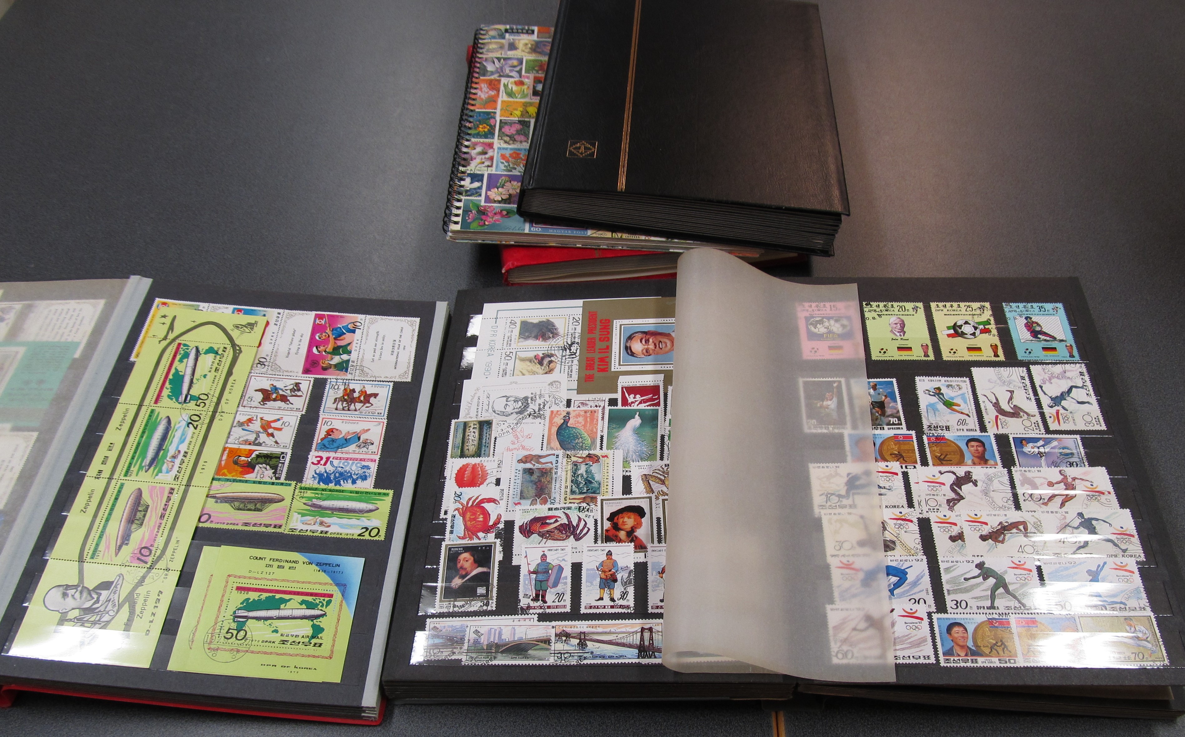 North Korea. Collection/accumulation ★★/⊙ in five stockbooks. Appears to be 1980s and 1990s, well filled incl. several souvenir sheets. Some scans are presented at www.philea.se. Approx. 6 kg.