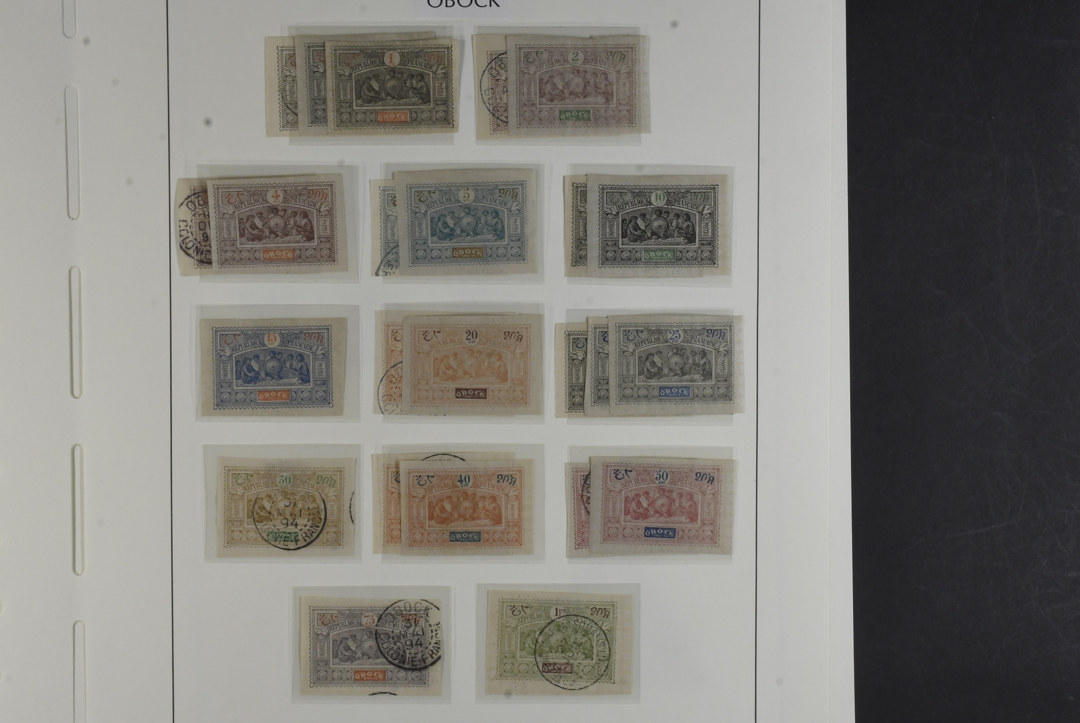 Obock. Collection ★/⊙ 1892–1894 on leaves with stamp mounts. Very nice collection with both mint and used incl. better stamps e.g. Mi 11 II *, 38 *, ¤, 52 *, ¤, 53 ¤, 54 ¤ and 55 no gum and a decent section postage dues. Some of the better stamps are signed. The entire lot is presented at www.philea.se. Mixed quality.