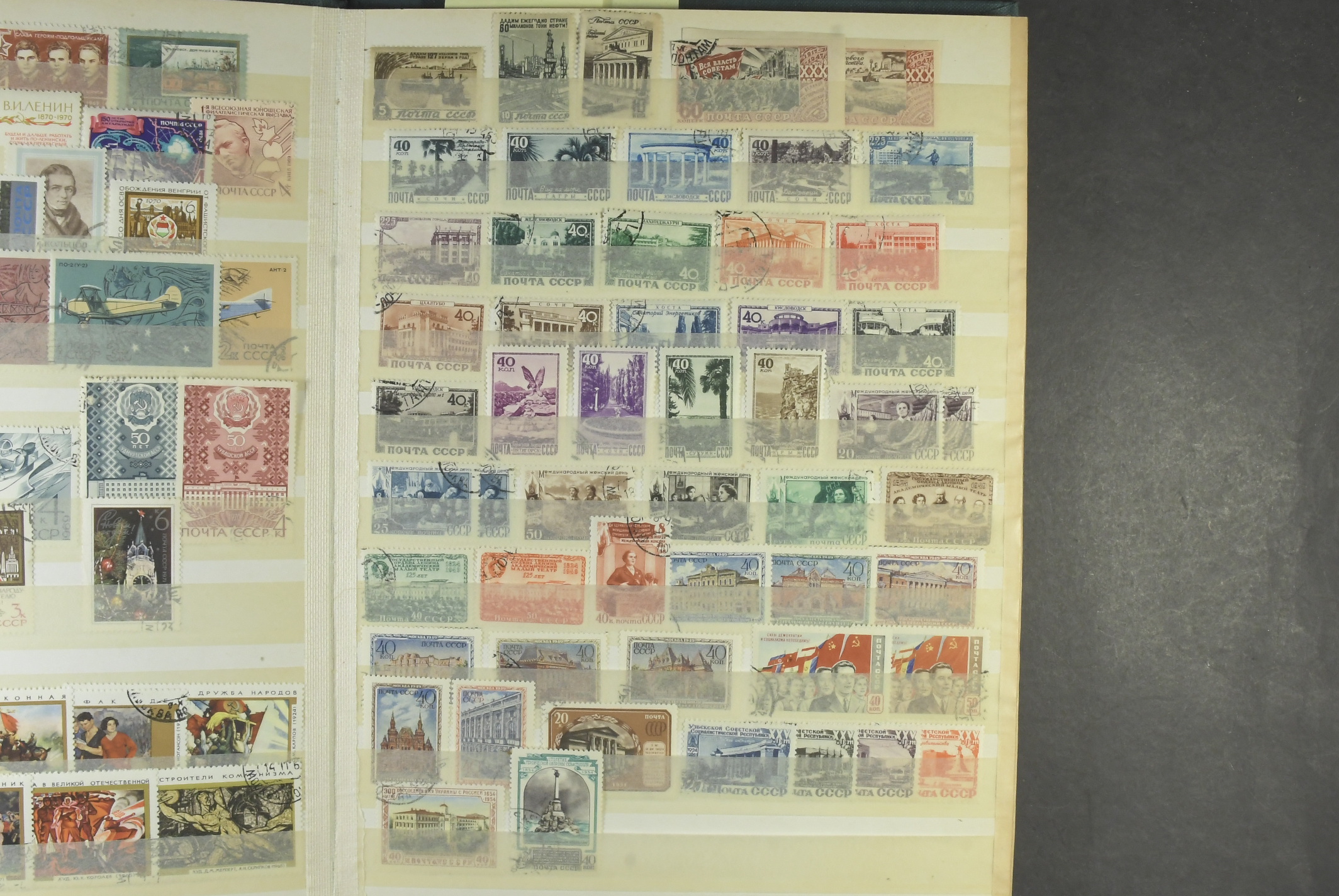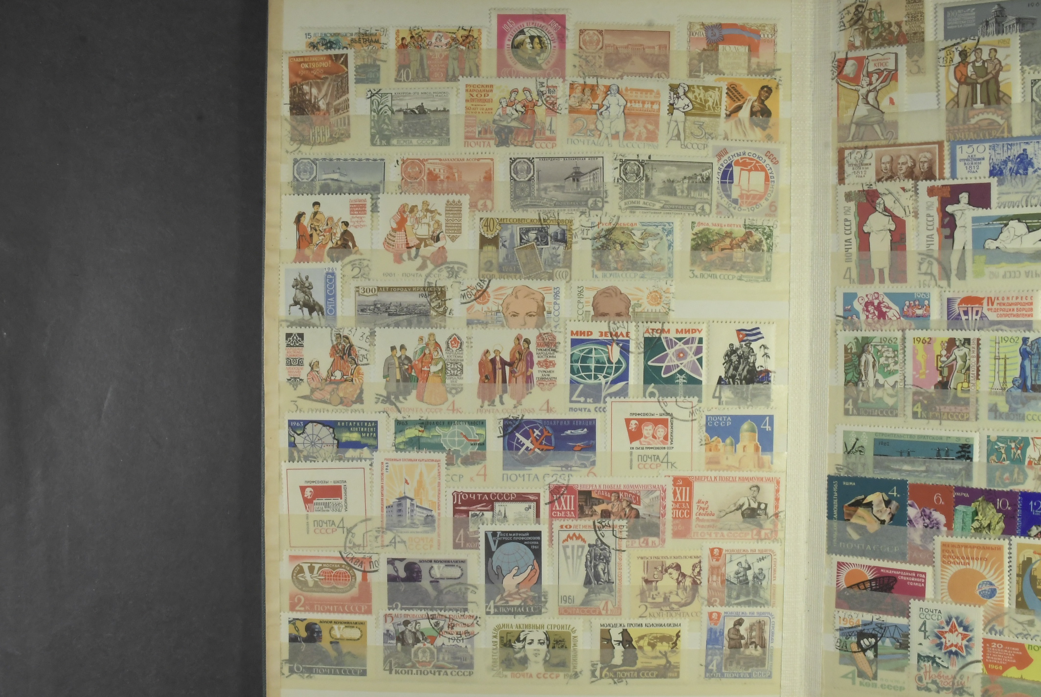 Russia. Collection/accumulation mostly used 1875–1990s in two albums. A comprehensive accumulation/collection in one album and one stockbook. Most of the material from the Soviet era (1959–1985). However, also older material and material from parts of the Soviet Union (e.g Georgia, Azerbadjian) and from Russian post offices abroad. Please see a selection of scans at www.philea.se. Somewhat mixed quality. (>1500)