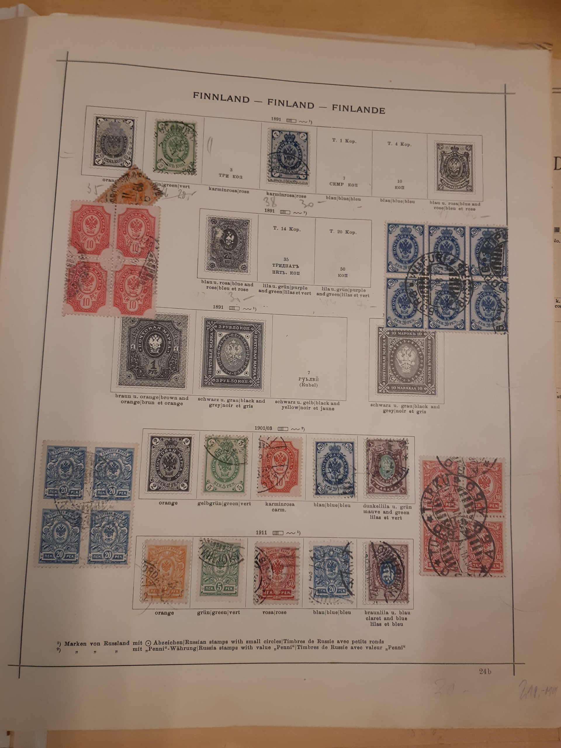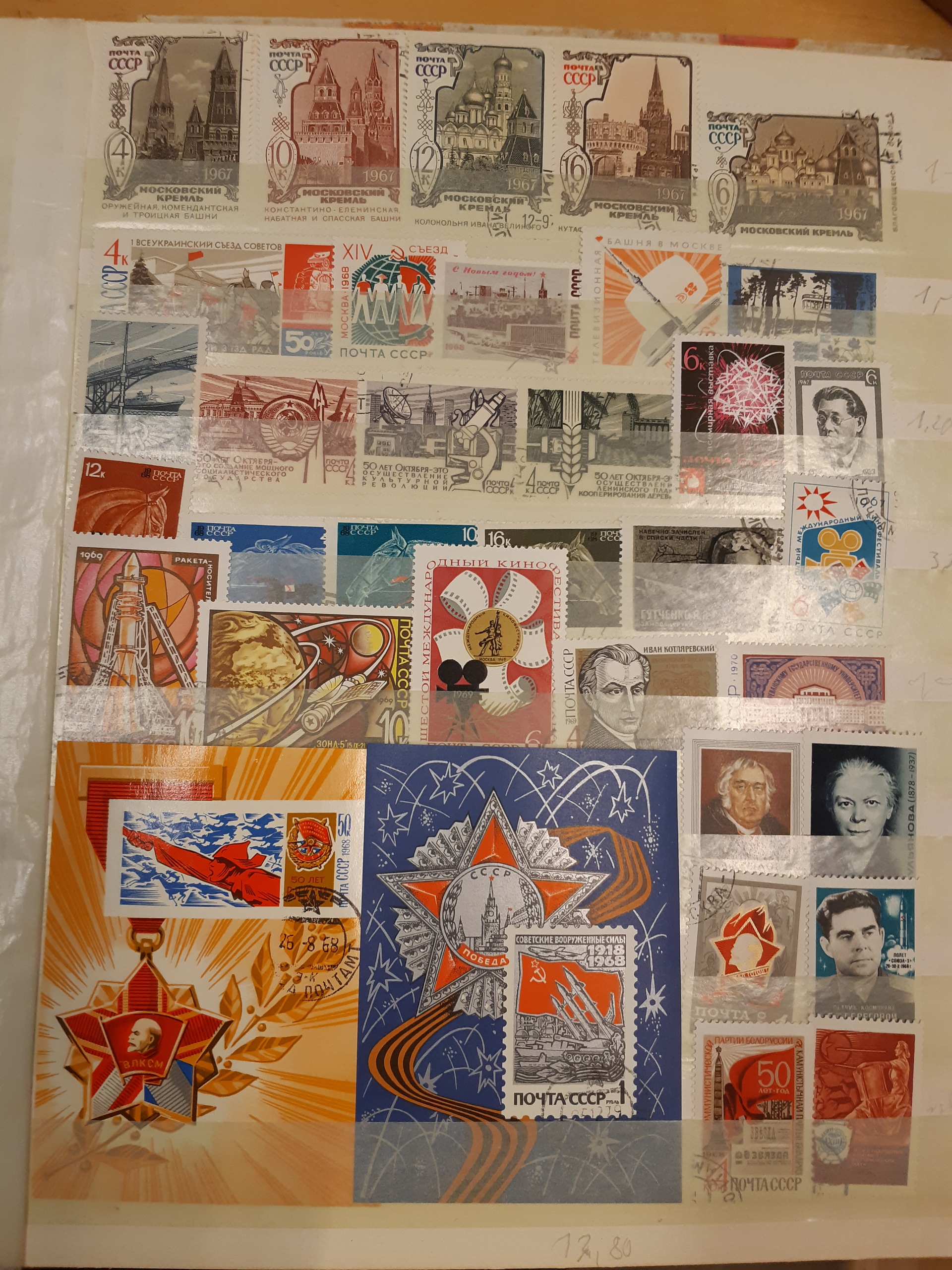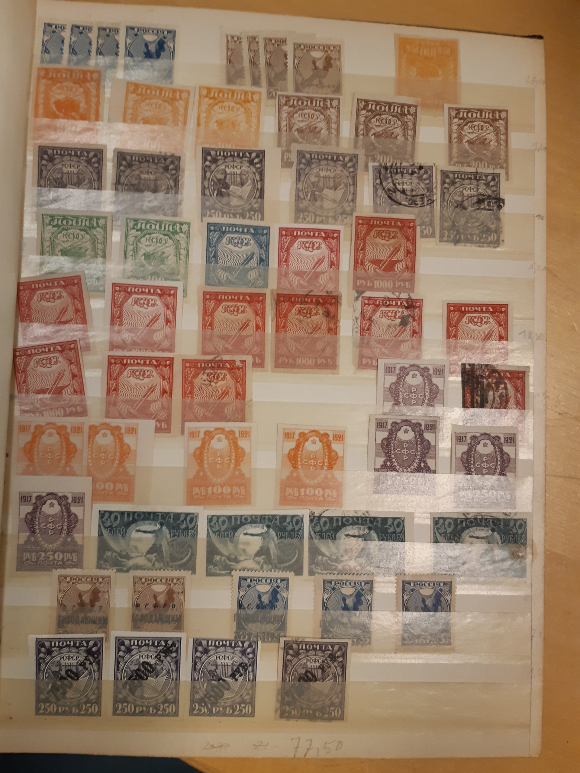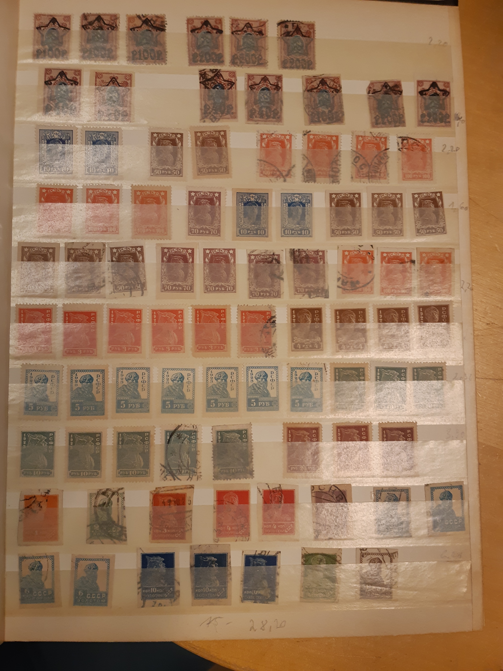 Soviet Union. Collection mostly used 1920s–1970s in three stockbooks in small box. Sorted duplicates. Also a few Finland on leaves. Somewhat mixed quality. (3000)