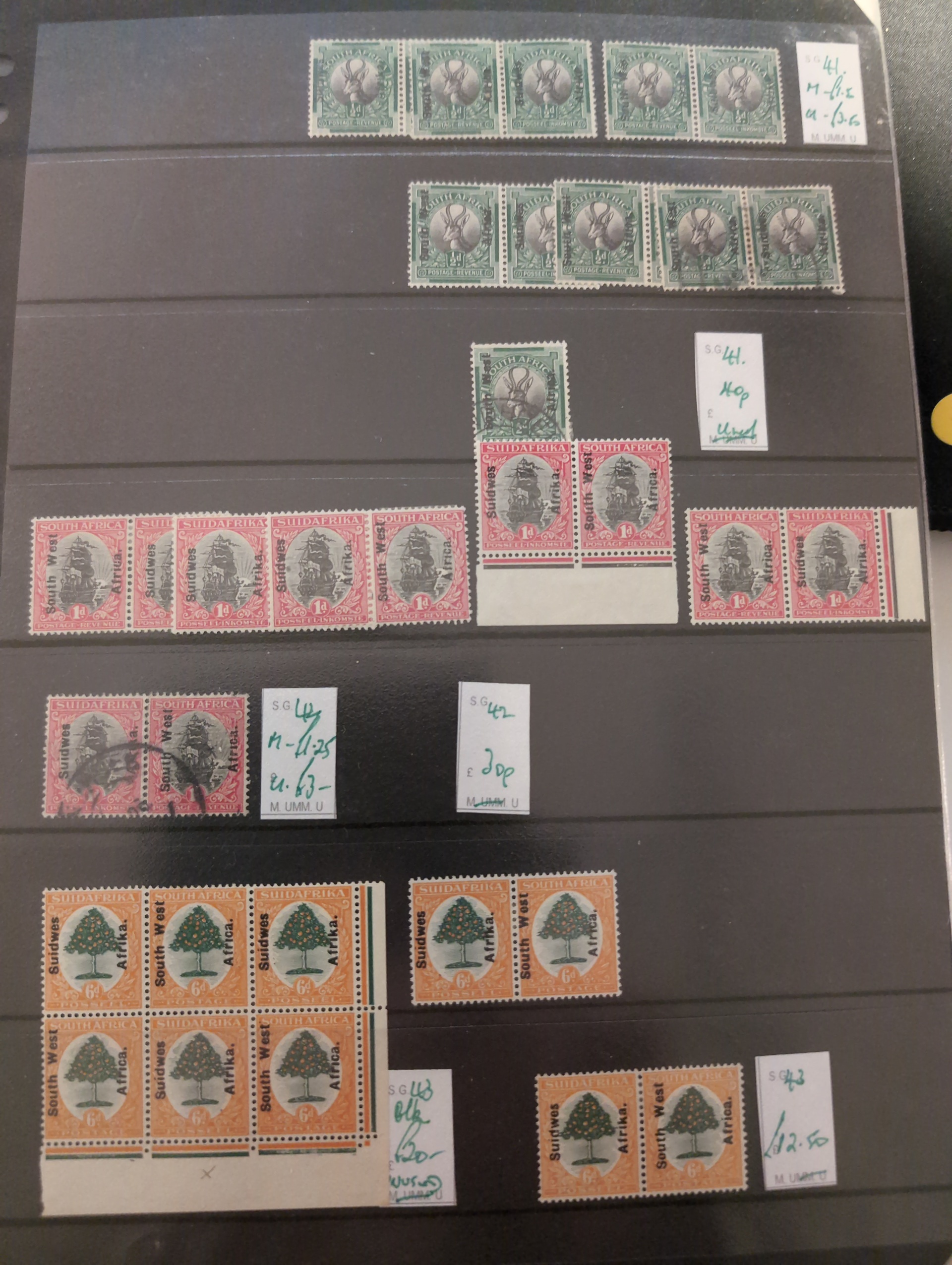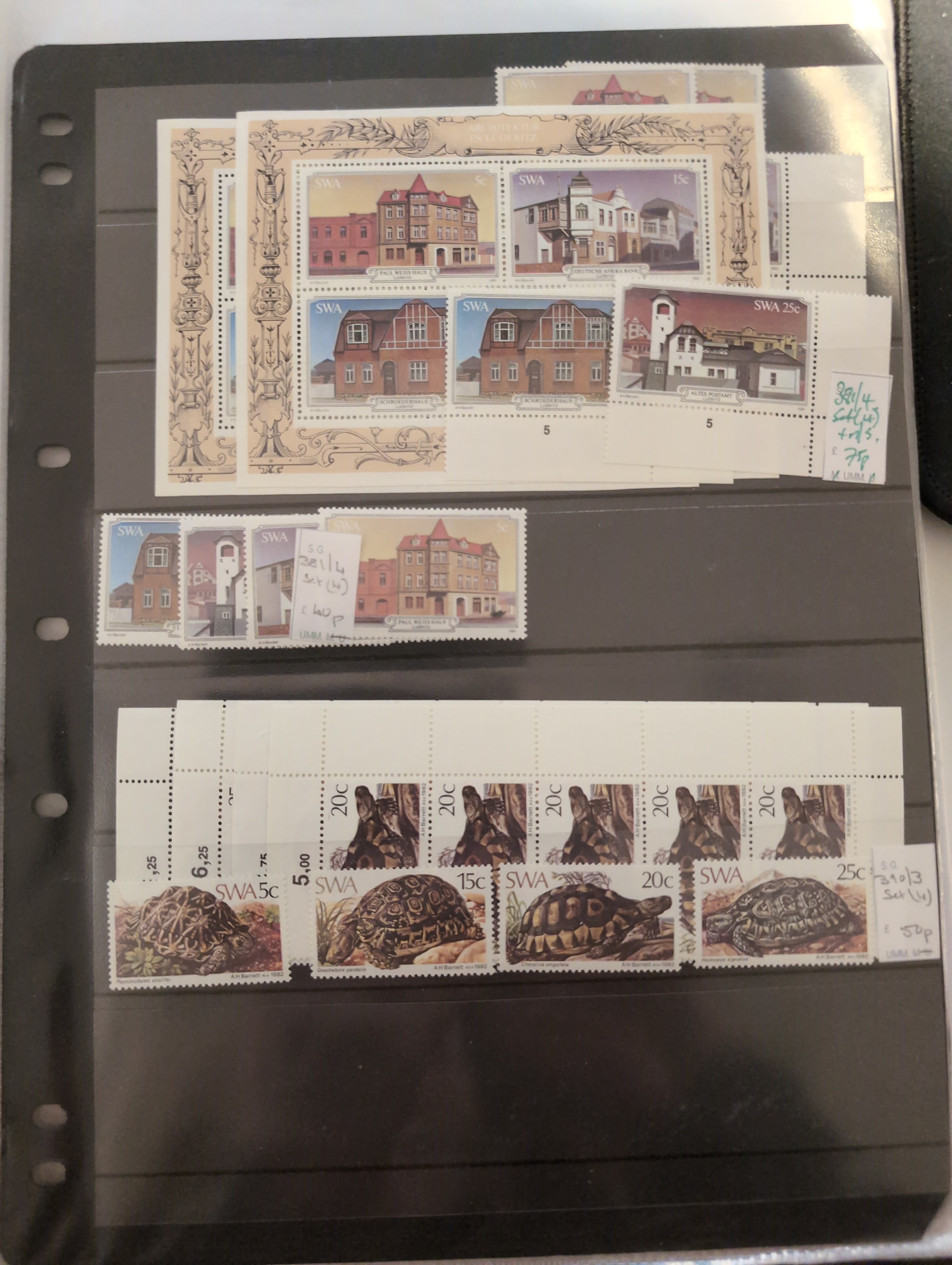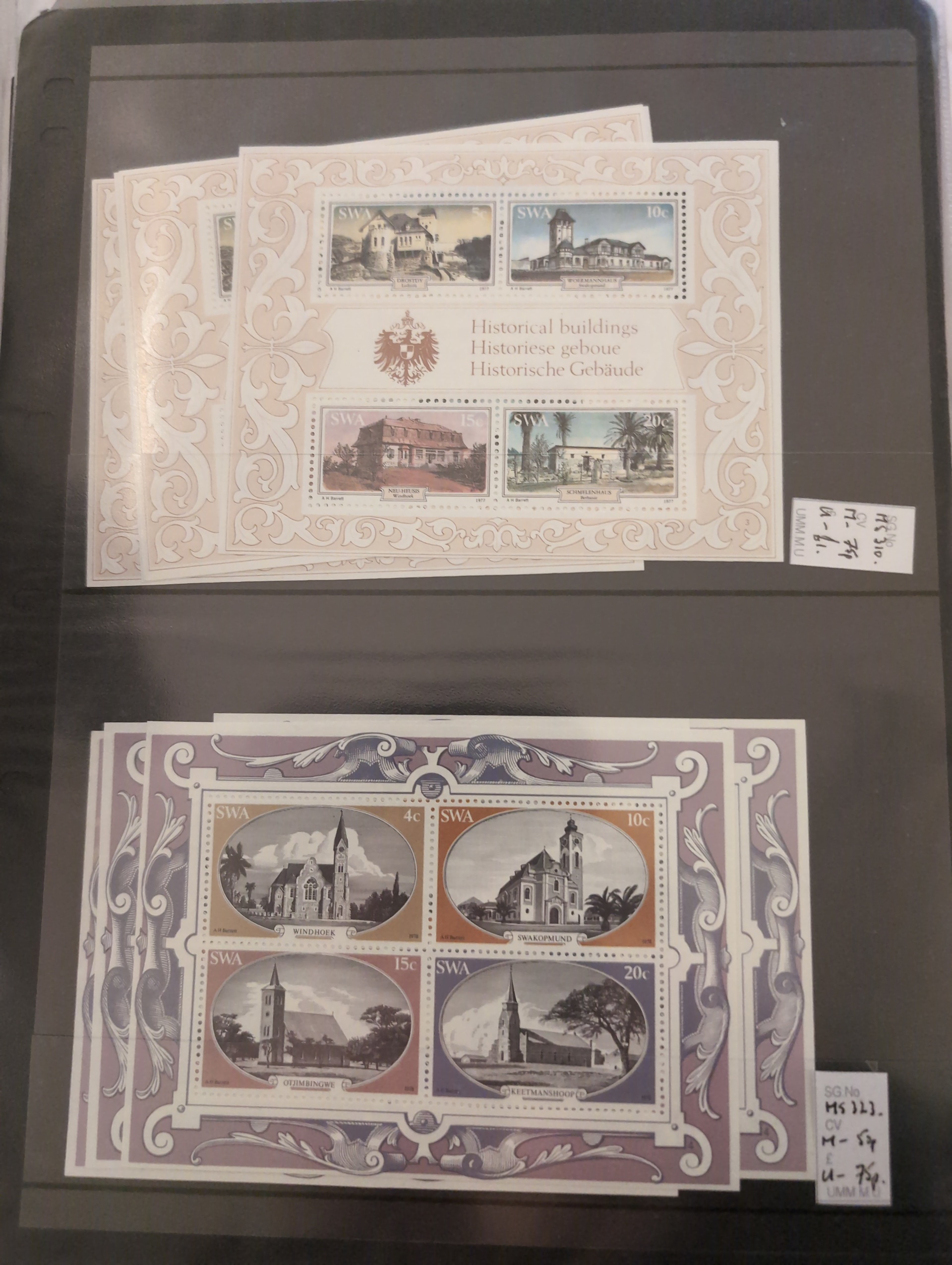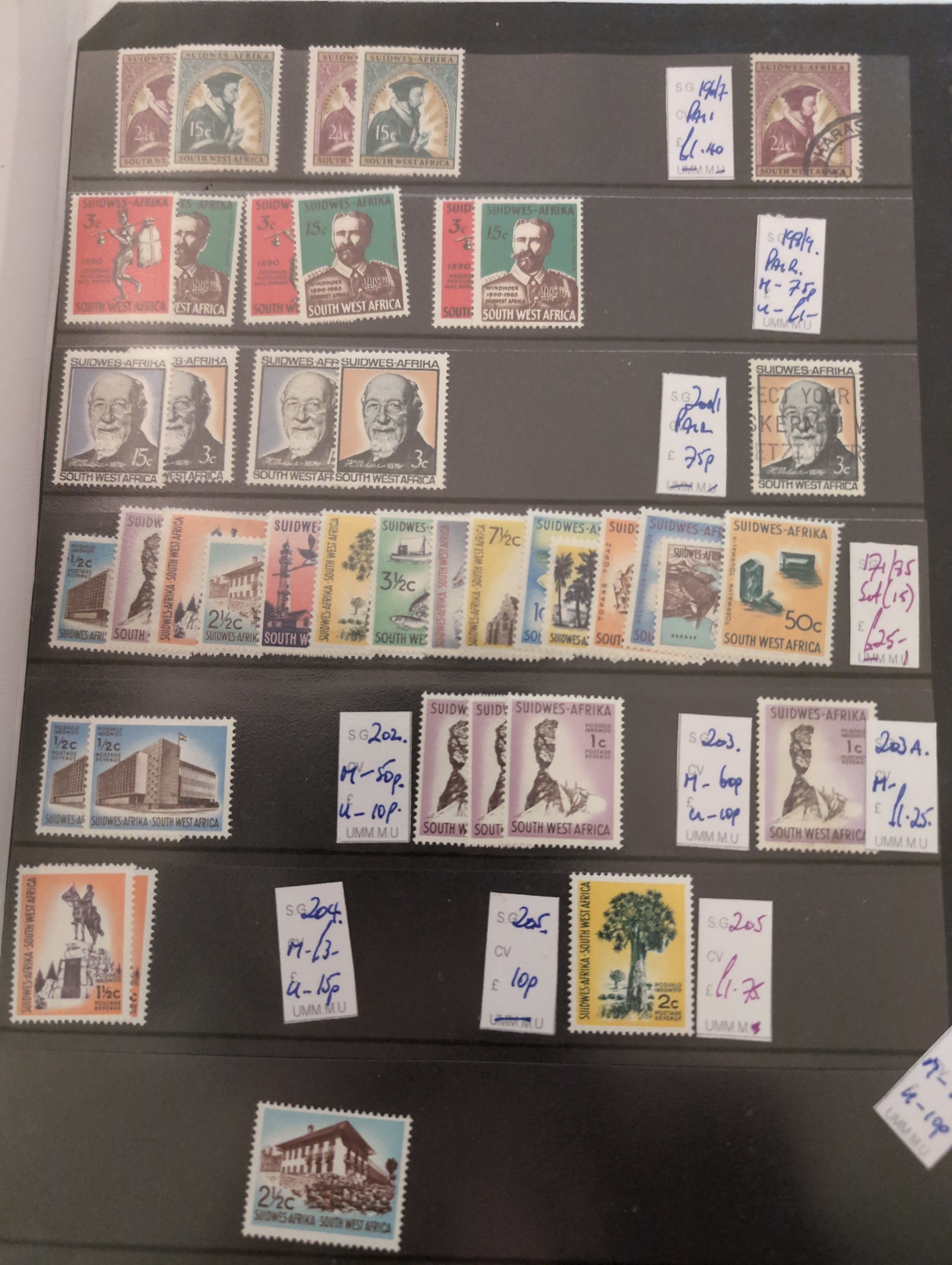 South West Africa. Accumulation ★★/★/⊙ 1890s–1990s in album. Incl. German period and Namibia. Dealer's stock with some better stamps and sets and several modern S/S. Please see a selection of scans at www.philea.se. Mostly good quality. (500+)