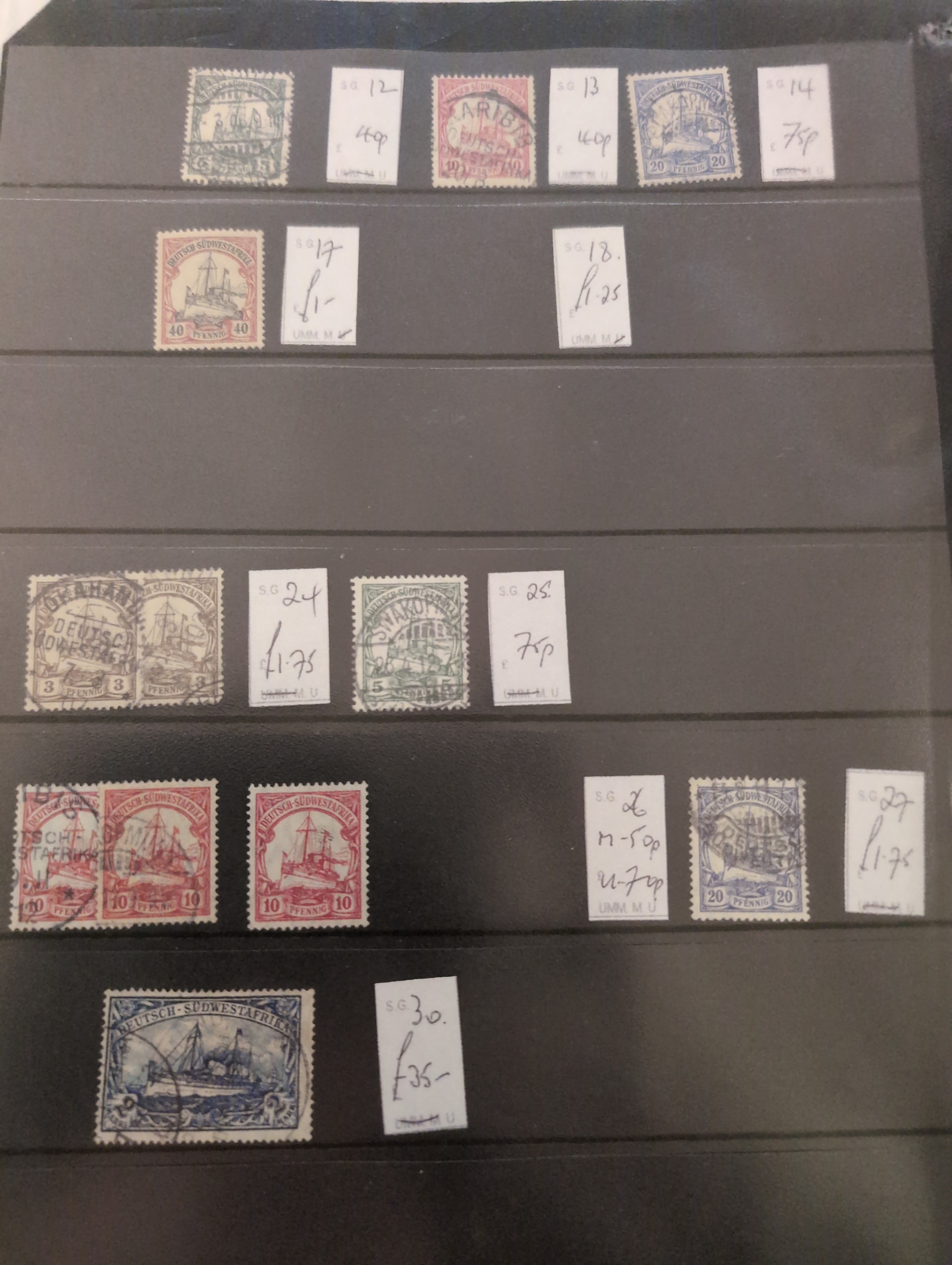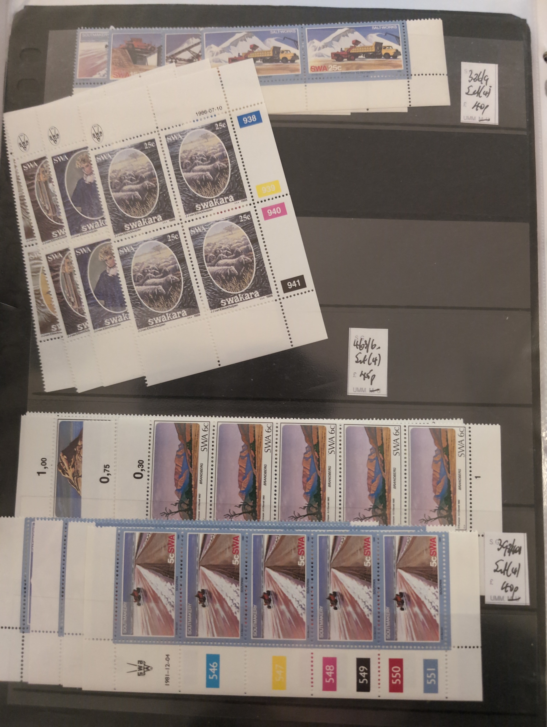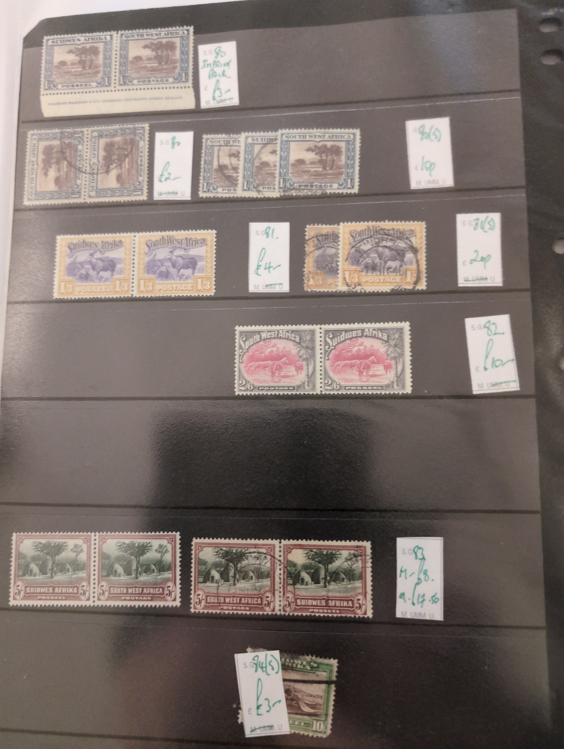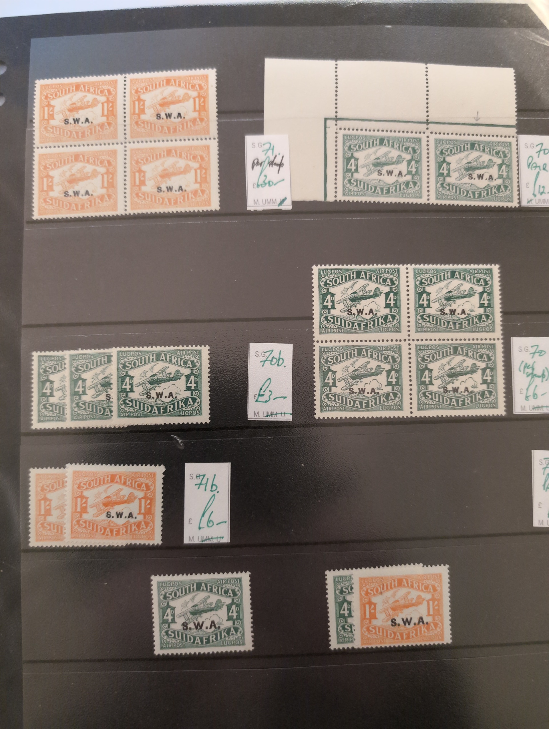 South West Africa. Accumulation ★★/★/⊙ 1890s–1990s in album. Incl. German period and Namibia. Dealer's stock with some better stamps and sets and several modern S/S. Please see a selection of scans at www.philea.se. Mostly good quality. (500+)