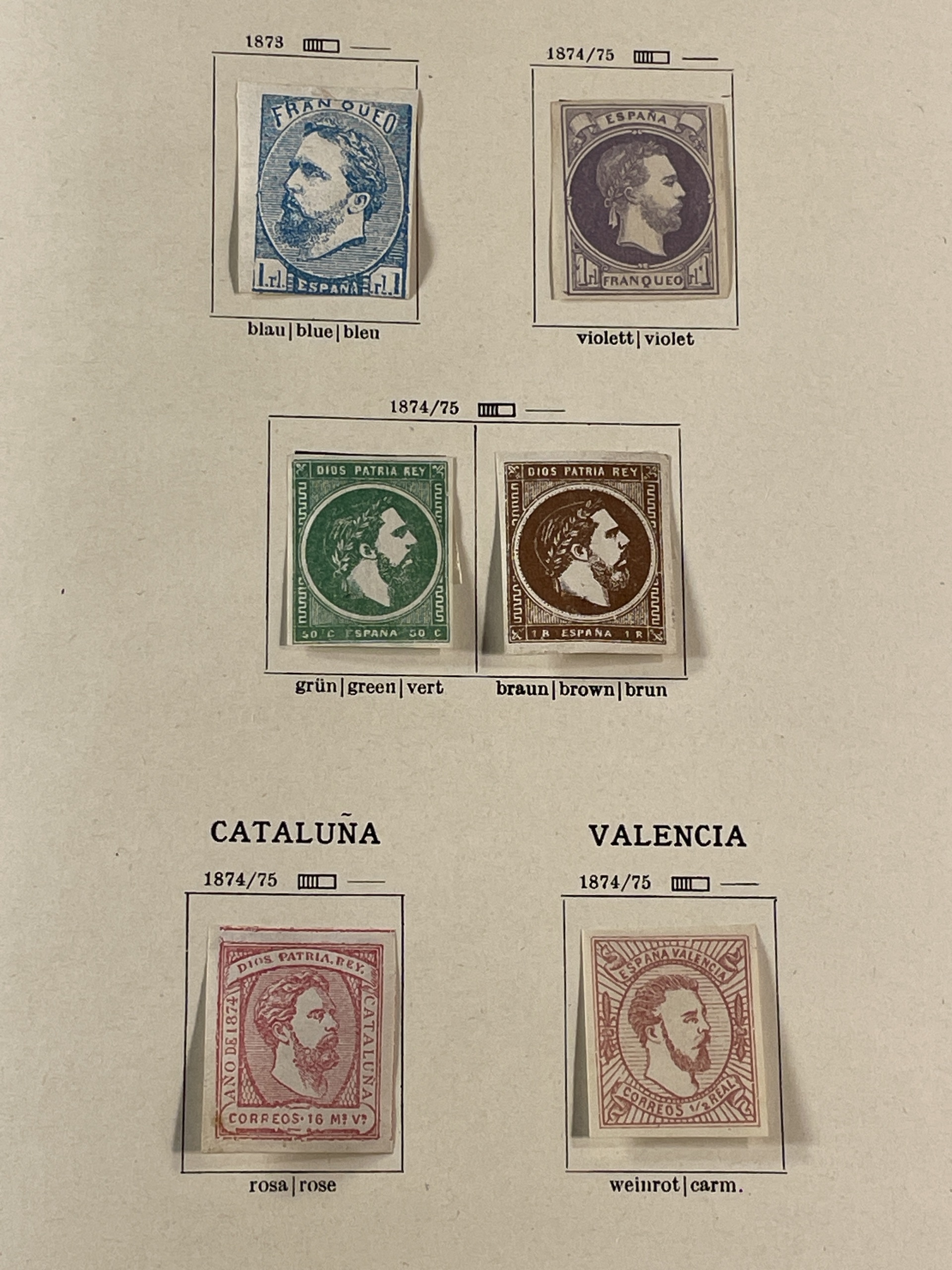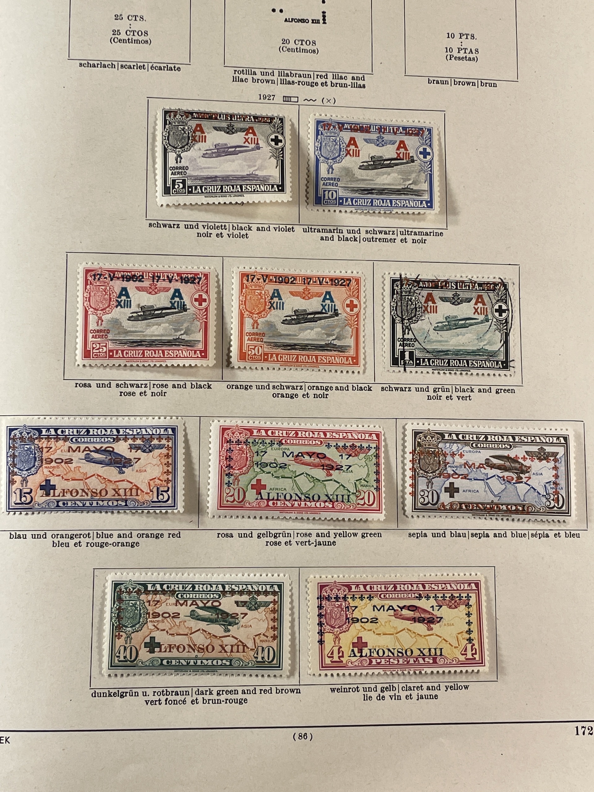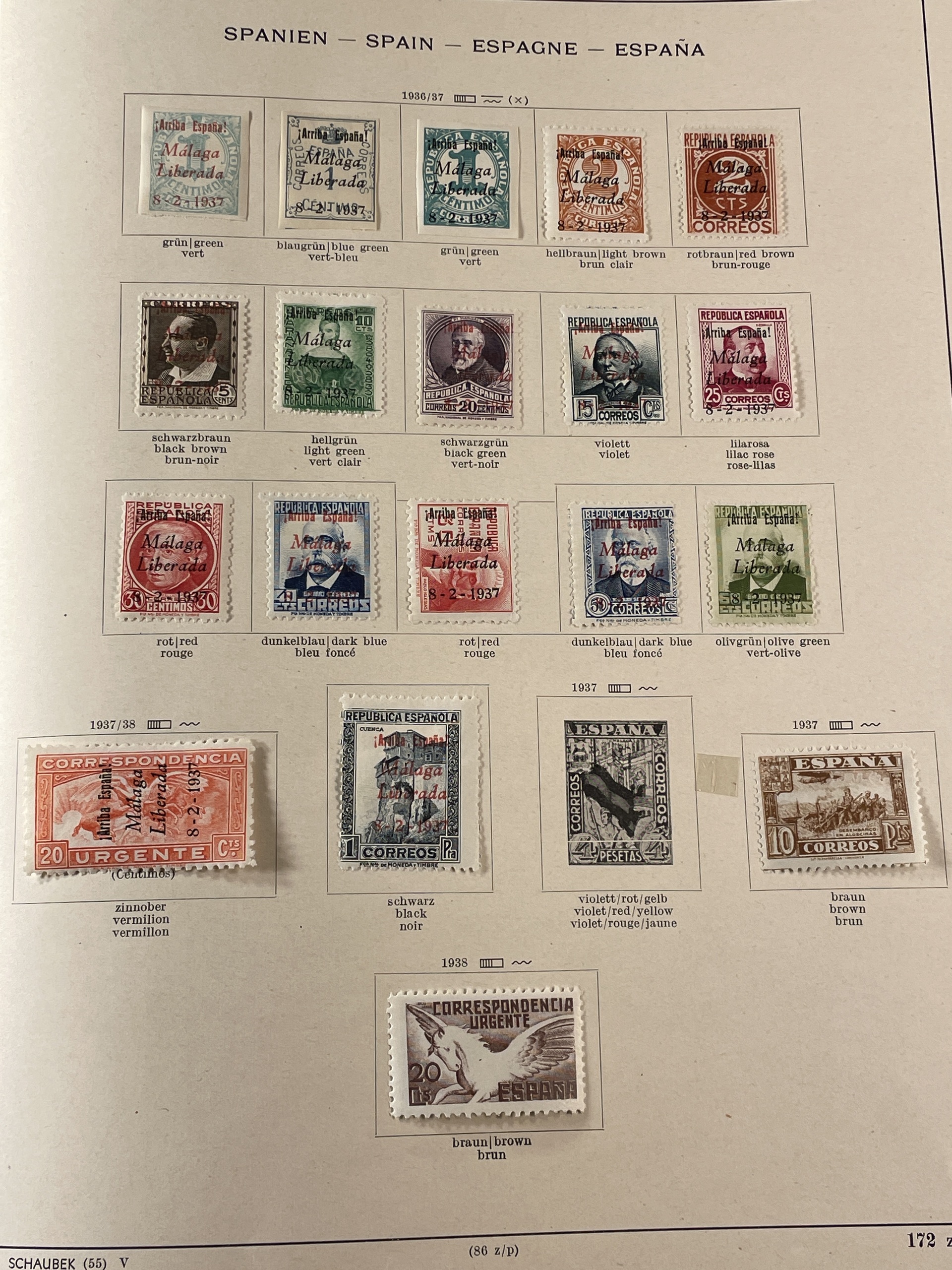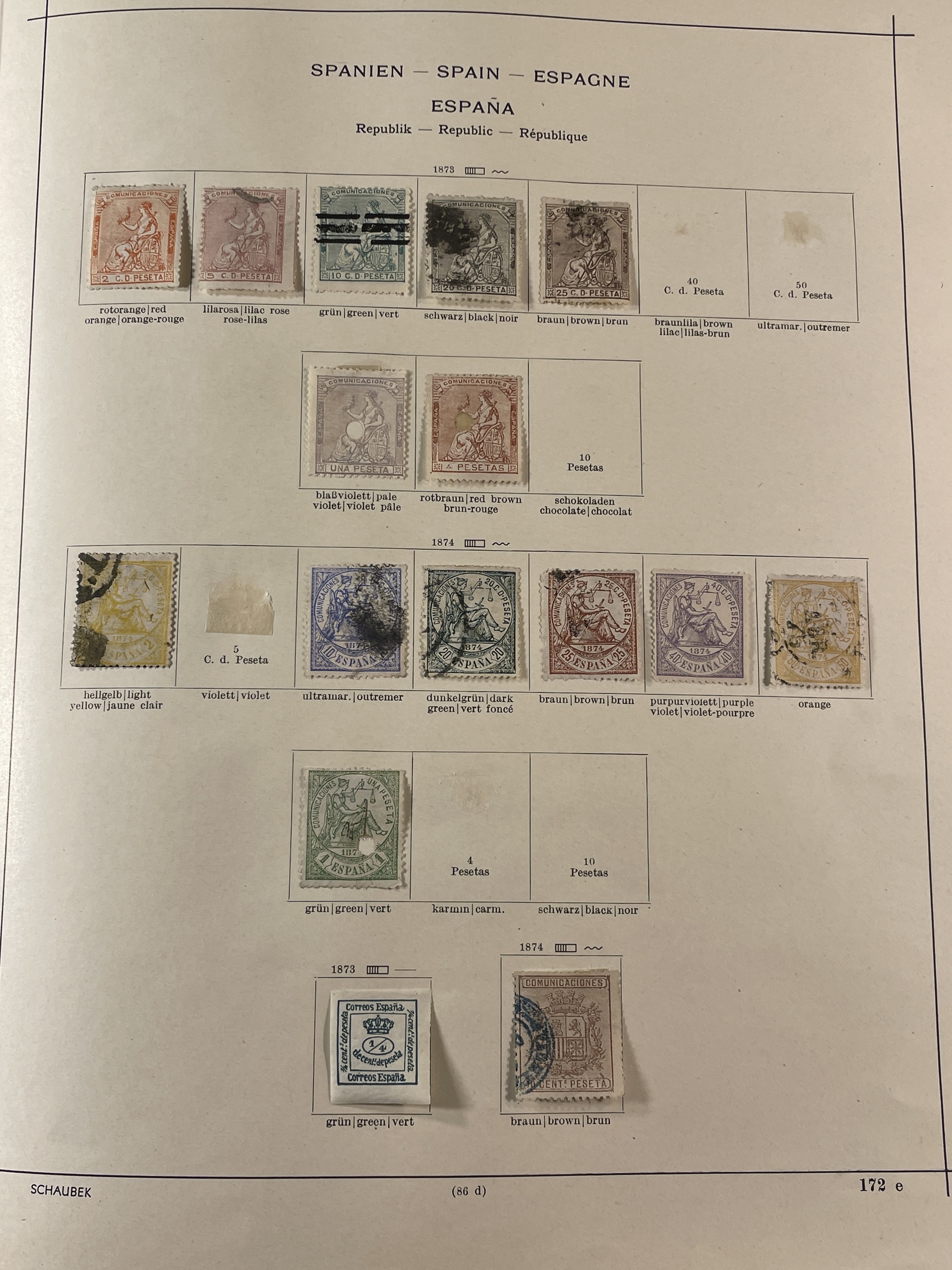 Spain. Collection ★/⊙ 1851–1955 in old album. Plundered years ago, but several better remains. Some unused are glued to the sheets. Mixed quality.
