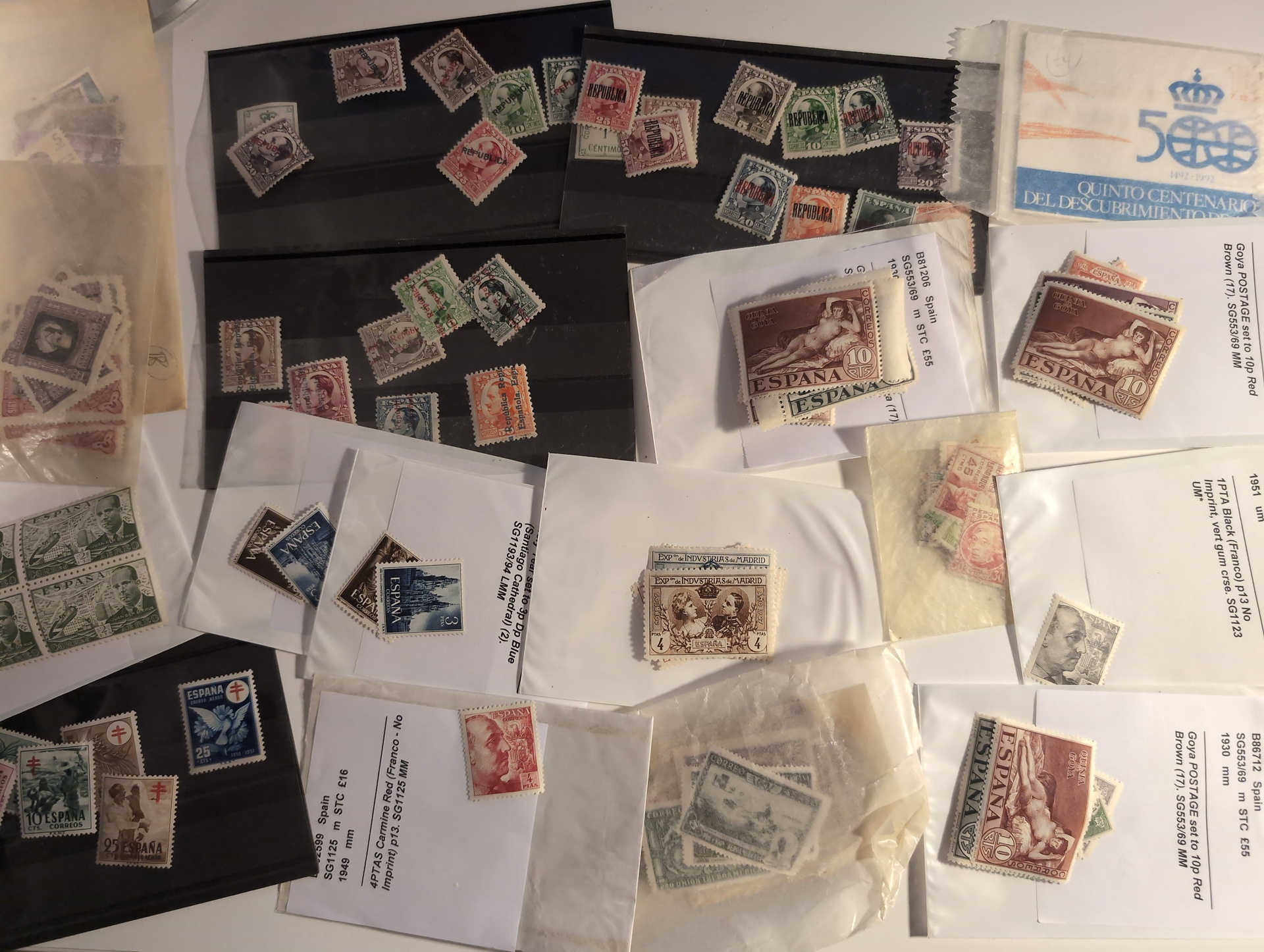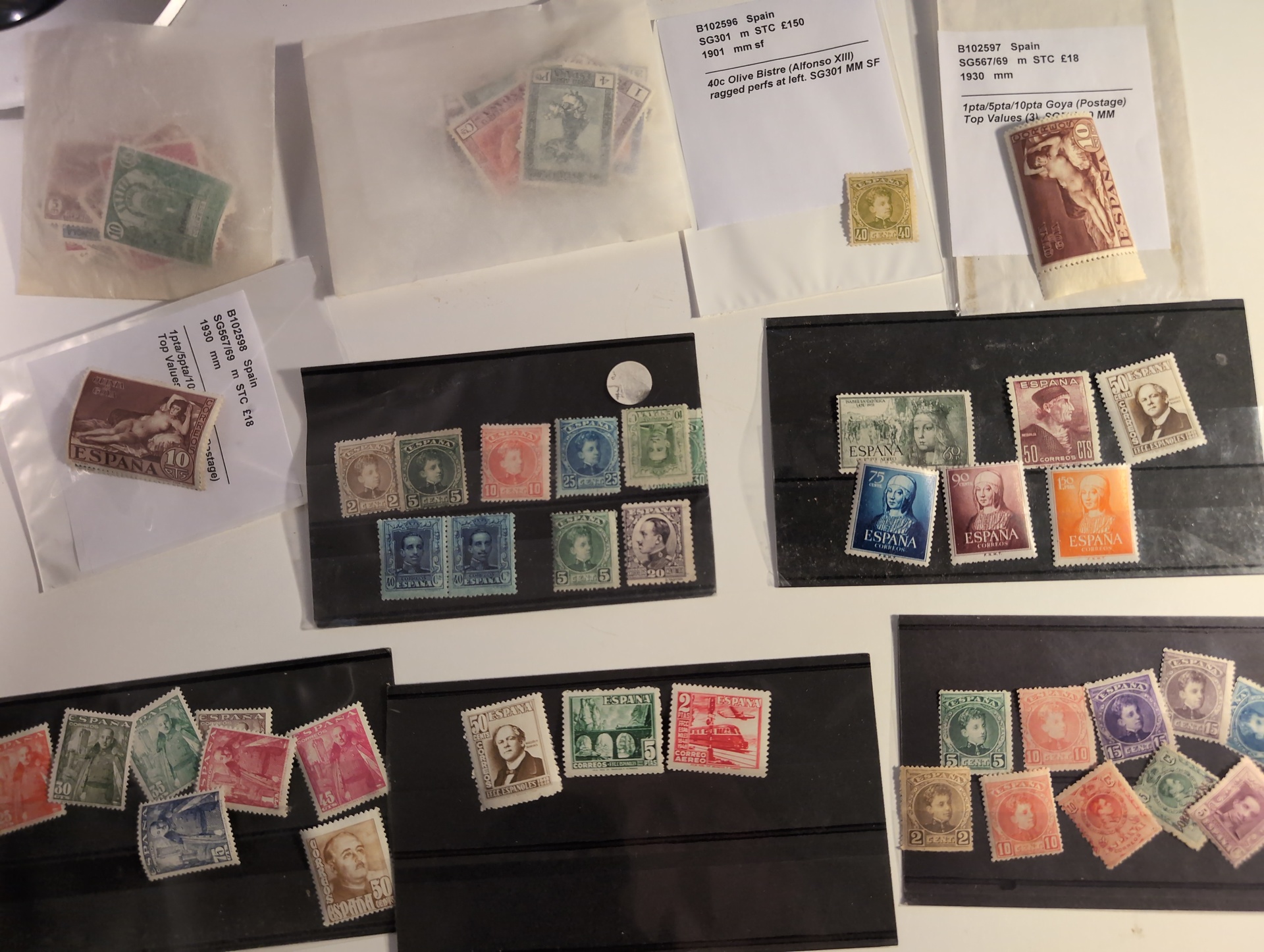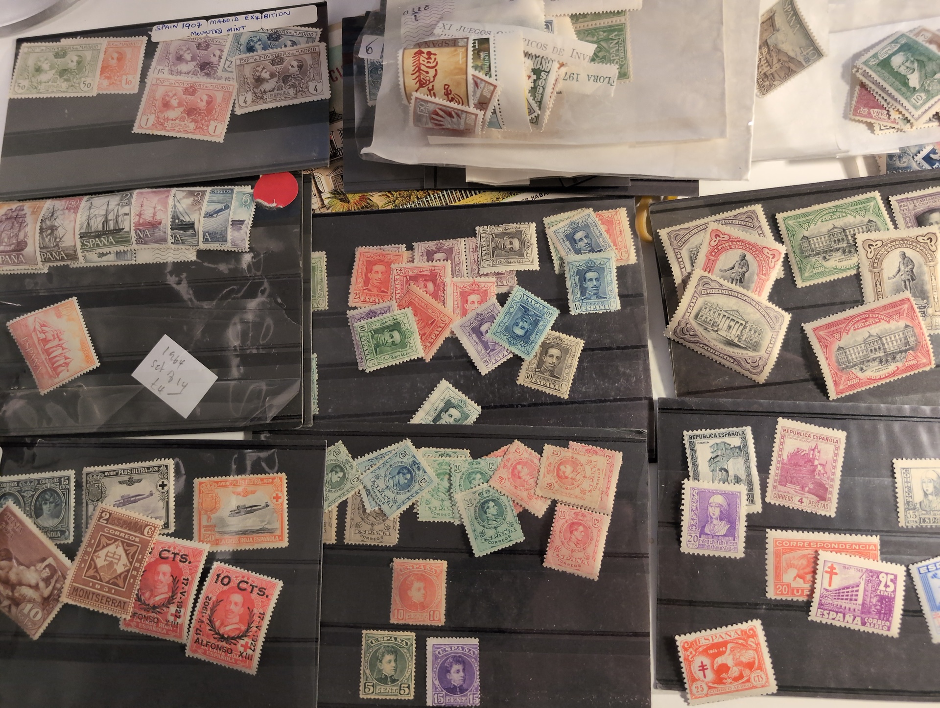Spain. Accumulation ★★/★ 1930s–1970s in cigarr box. Stock with some better stamps and sets. High cat. value. Please see a selection of scans at www.philea.se. Mostly good quality. (ca. 300)
