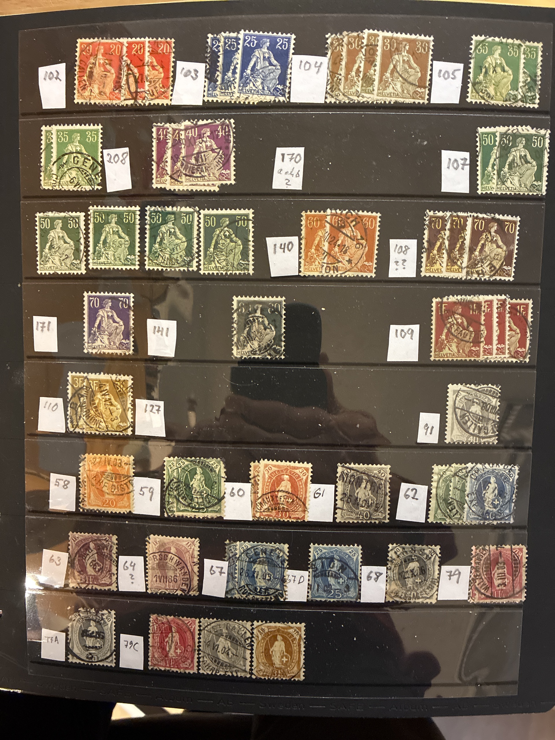 Switzerland, Mixed. Collection used 1854–2003 in album. Two visir leaves with older stamps and then from 1940–2003. Please see a selection of scans at www.philea.se. Mostly good quality. (900)