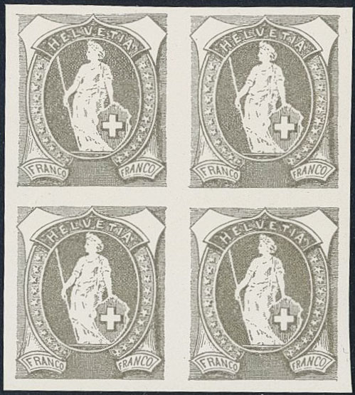 Switzerland. ★★, Essay to the issues 'Standing Helvetia', Mi 58–64 and following. Block of four.
