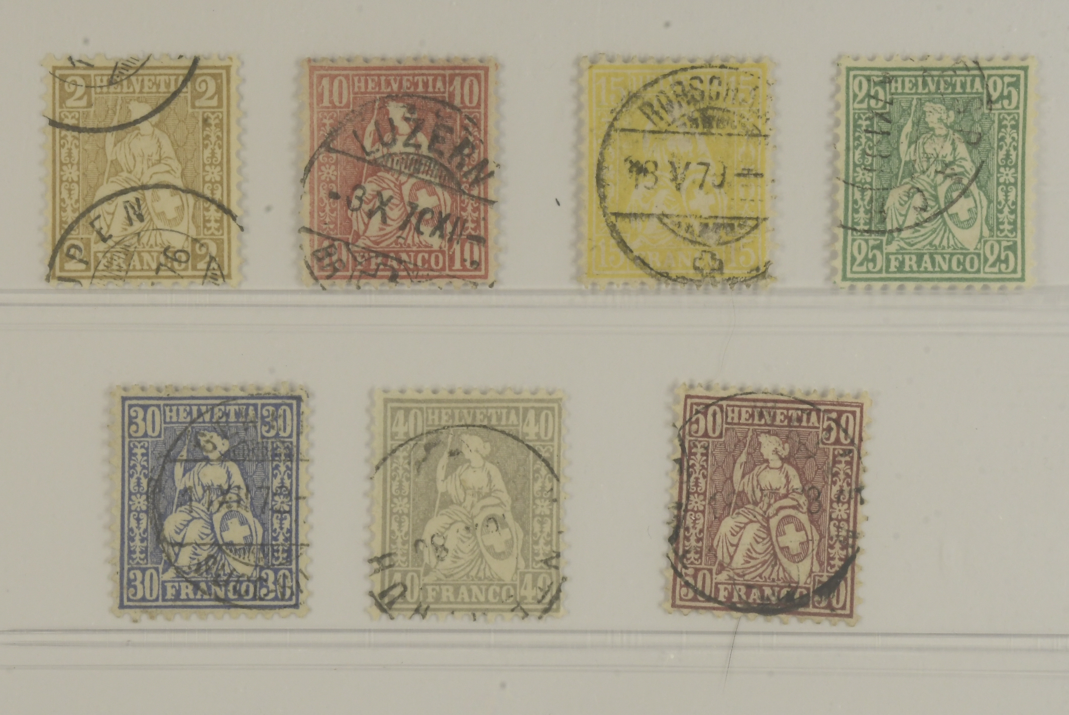 Switzerland. Michel 29–35 used, 1867 Sitting Helvetia SET on white paper (7). EUR 250