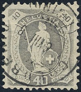 Switzerland. Michel 77C used, 1905 Standing Helvetia 40 c grey perf 11½ × 12 wmk. EUR 190