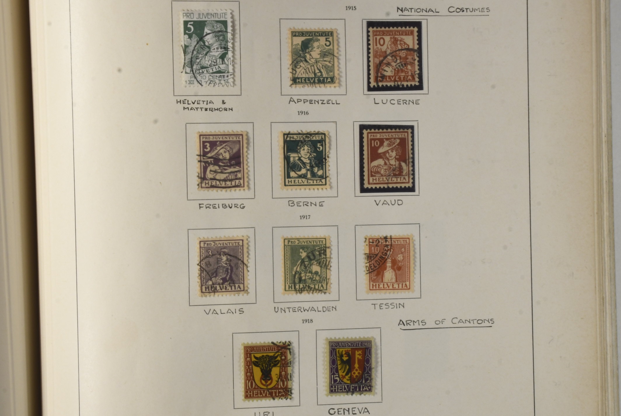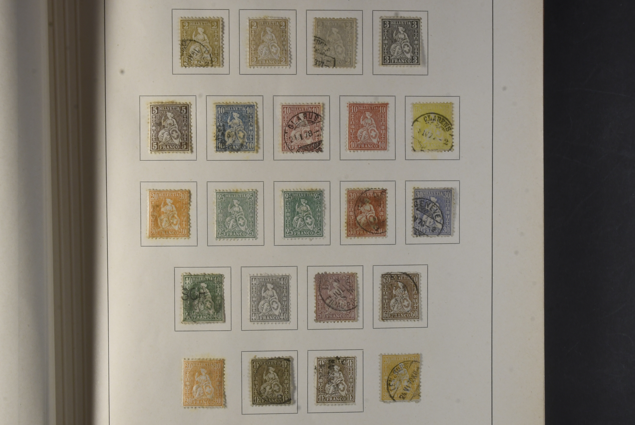 Switzerland. Used. Collection 1854–1964 mainly used in album with better stamps and sets (and some mini-sheets which are mainly mint). Also some blocks of four. Pro Juv virtually complete 1913–1965. Mainly in fine condition. Stanley Gibbons over £10000.