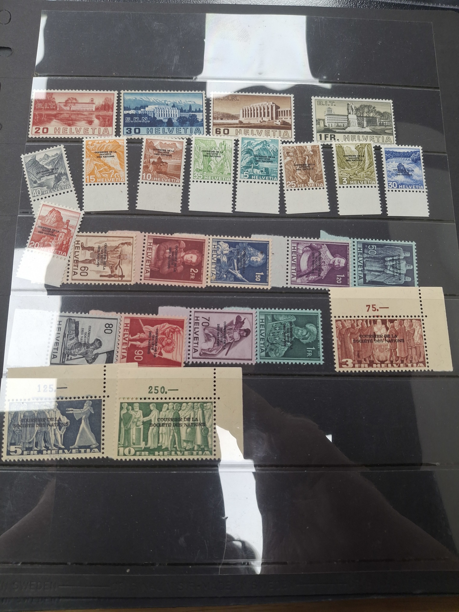 Switzerland, League of Nations. Lot ★★/★ on leaves. Several International Organisations. BIT/ILO. OMS/WHO. BIE/IBE and more. Low reserve. Please see a selection of scans at www.philea.se. Fine quality.