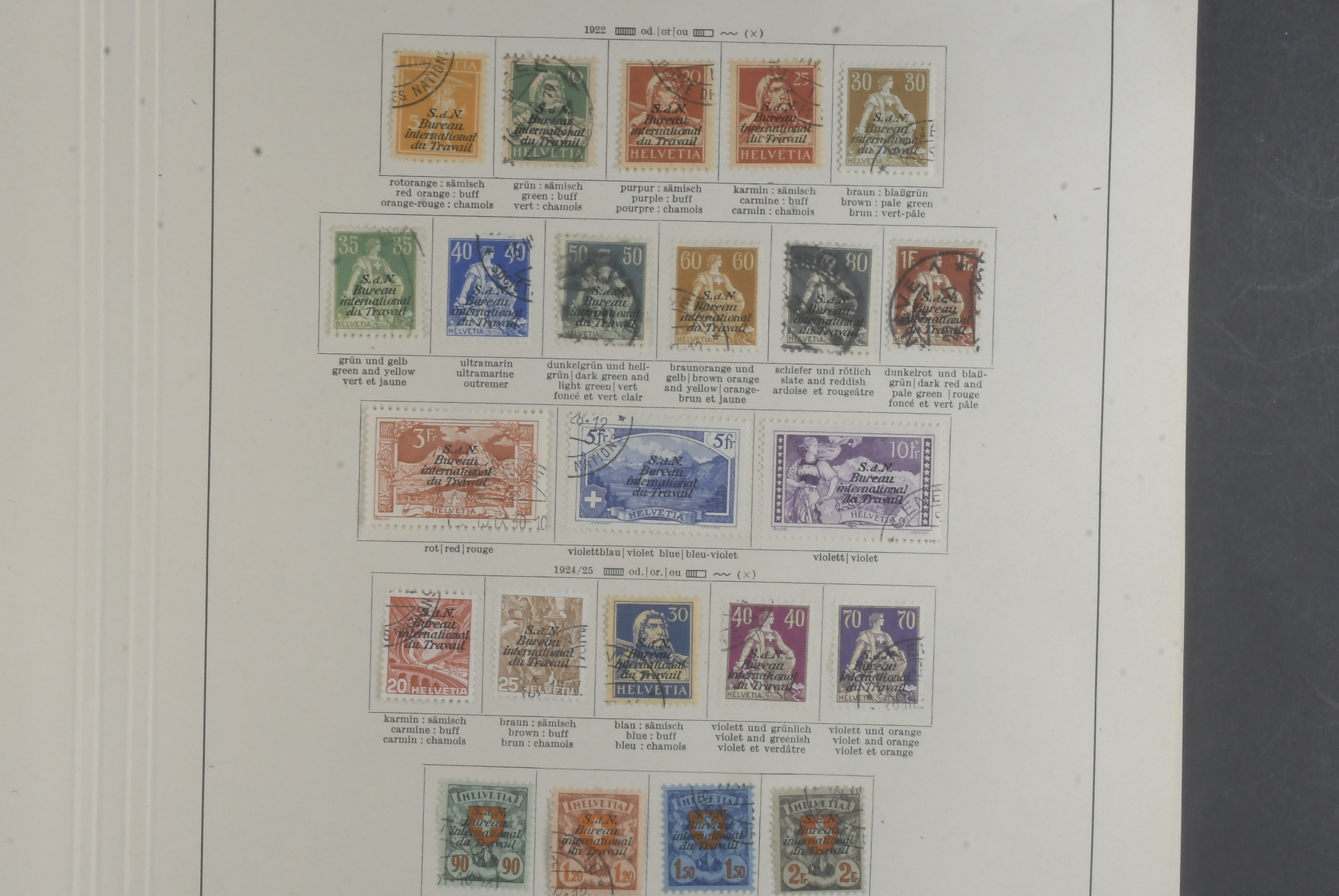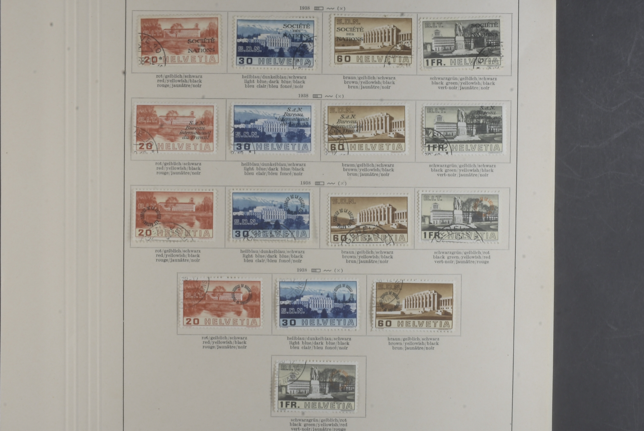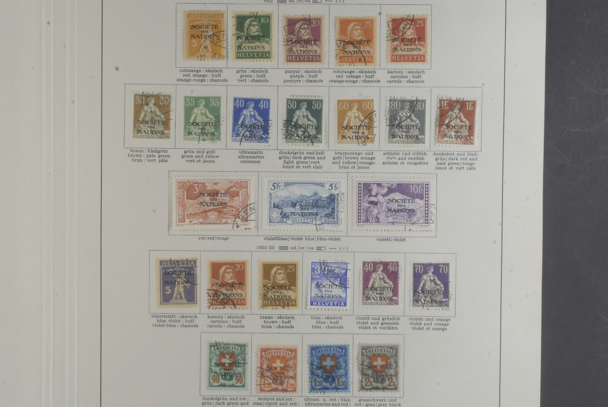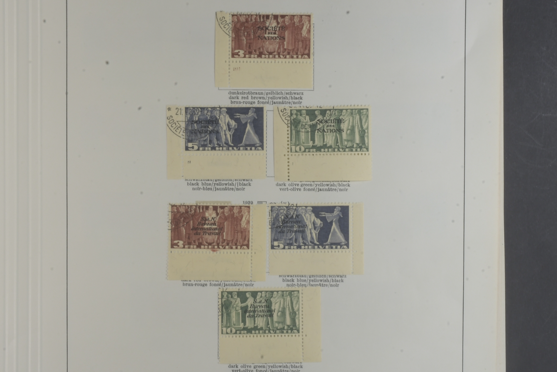 Switzerland, ONU/UNO. Collection ★/⊙ 1922–1950 on leaves. Also Office for Education, Labour-Office, World Health Organisation, Refugee Organisation and League of Nations. Almost complete including high values. Mostly fine quality.