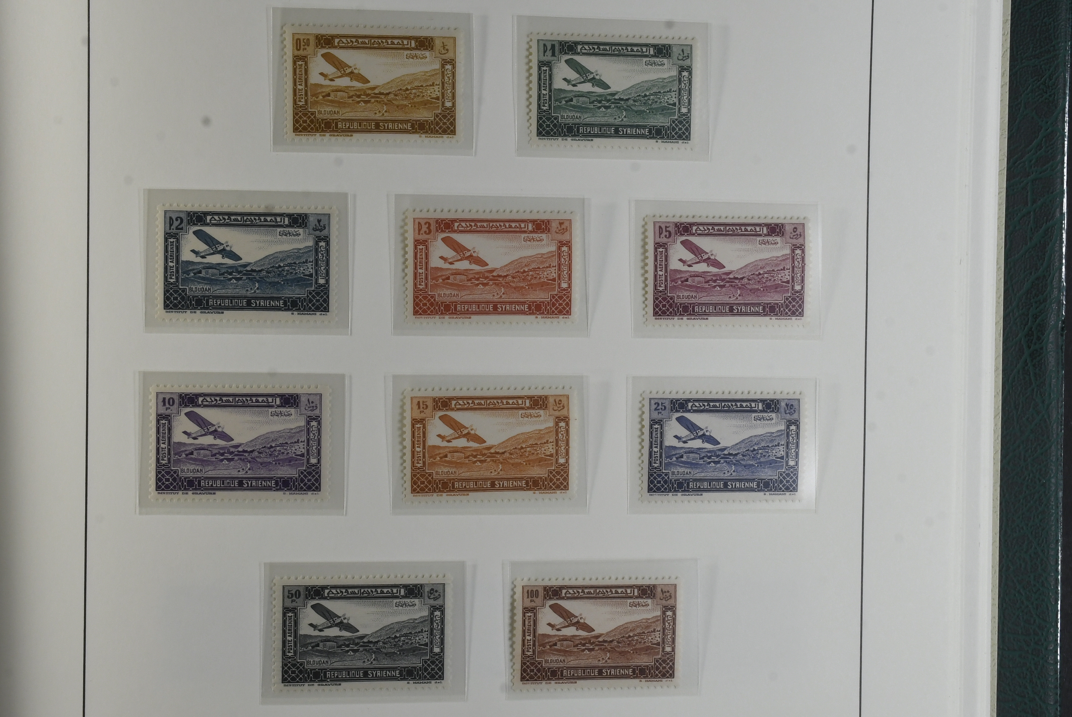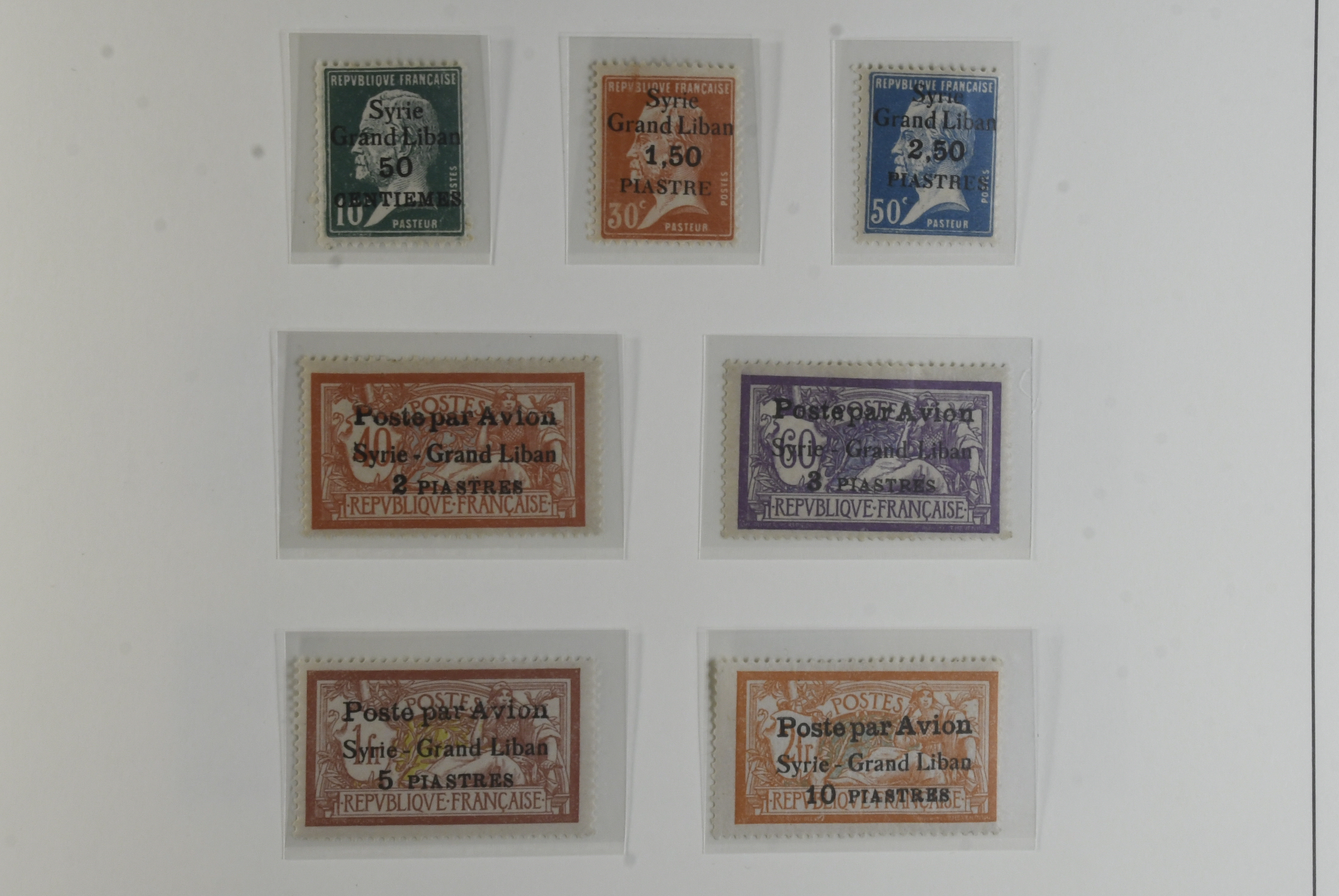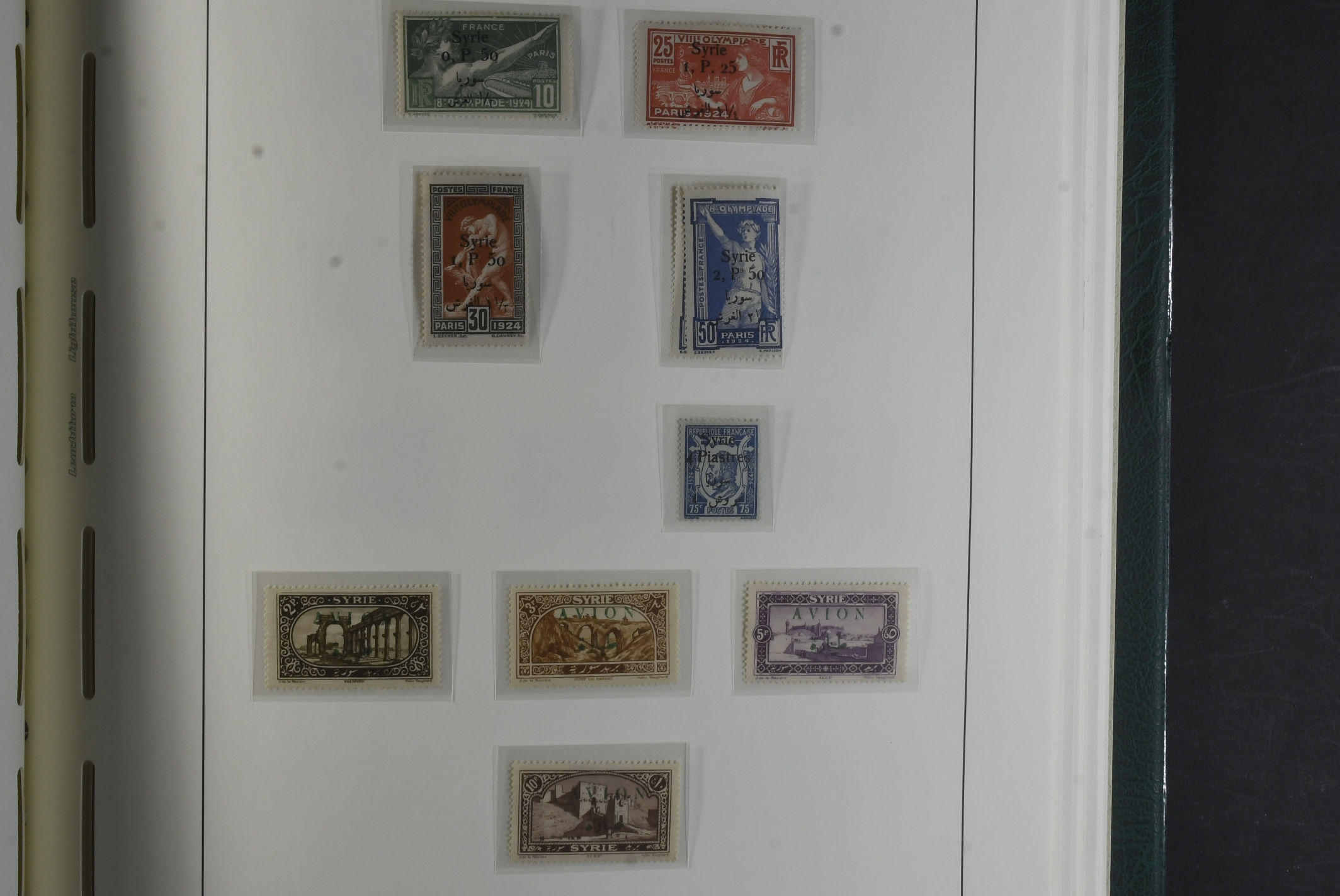 Syria, French mandate. Collection ★★/★/⊙ 1919–1945 in album with stamp mounts. Well filled collection with many of the top values and complete sets. Incl. Mi 111 *, 115II *, 116II *, 128a+b ¤, 134 ¤, 141 *, 163 *, 174–175 ¤, 176–179 *, 202 I–205 I *, 227–230 * (×2), 254–257* and from 1925 almost complete mostly mint with some NH. Also some better back of the book. Please see a selection of scans at www.philea.se. Mostly fine quality. (700+)