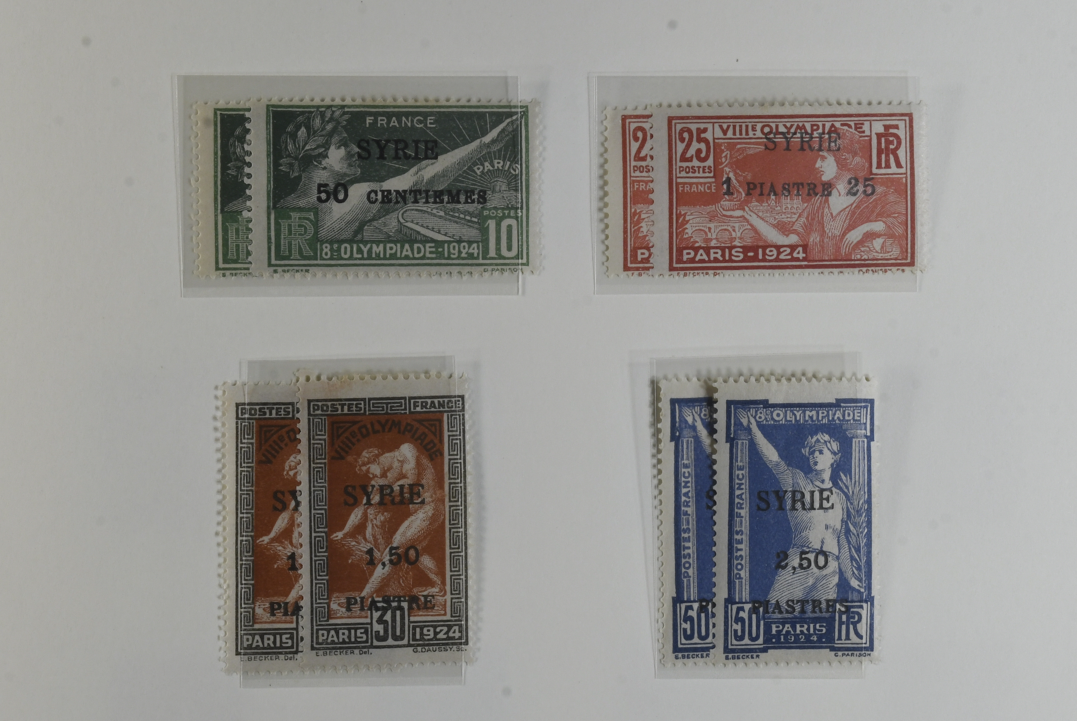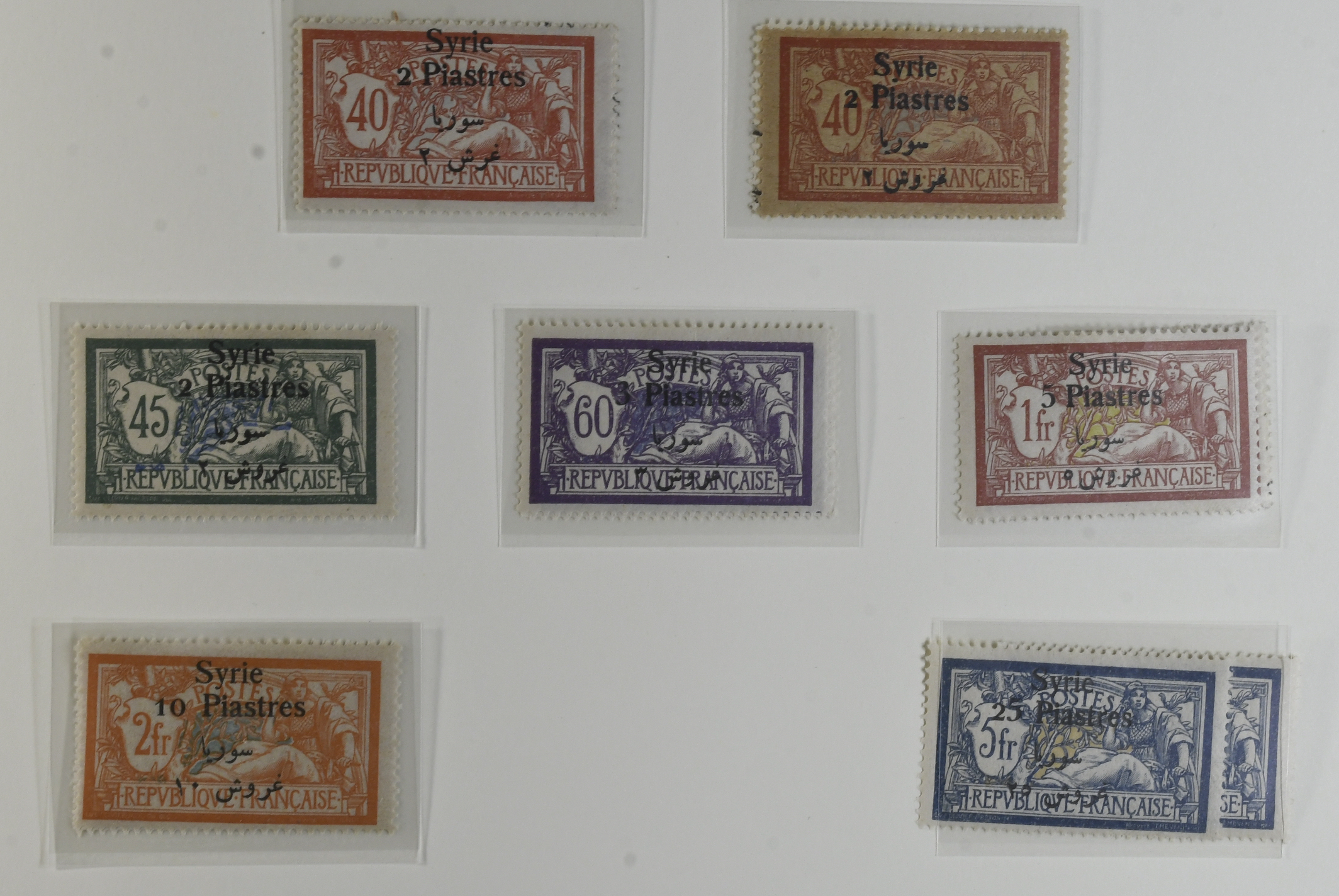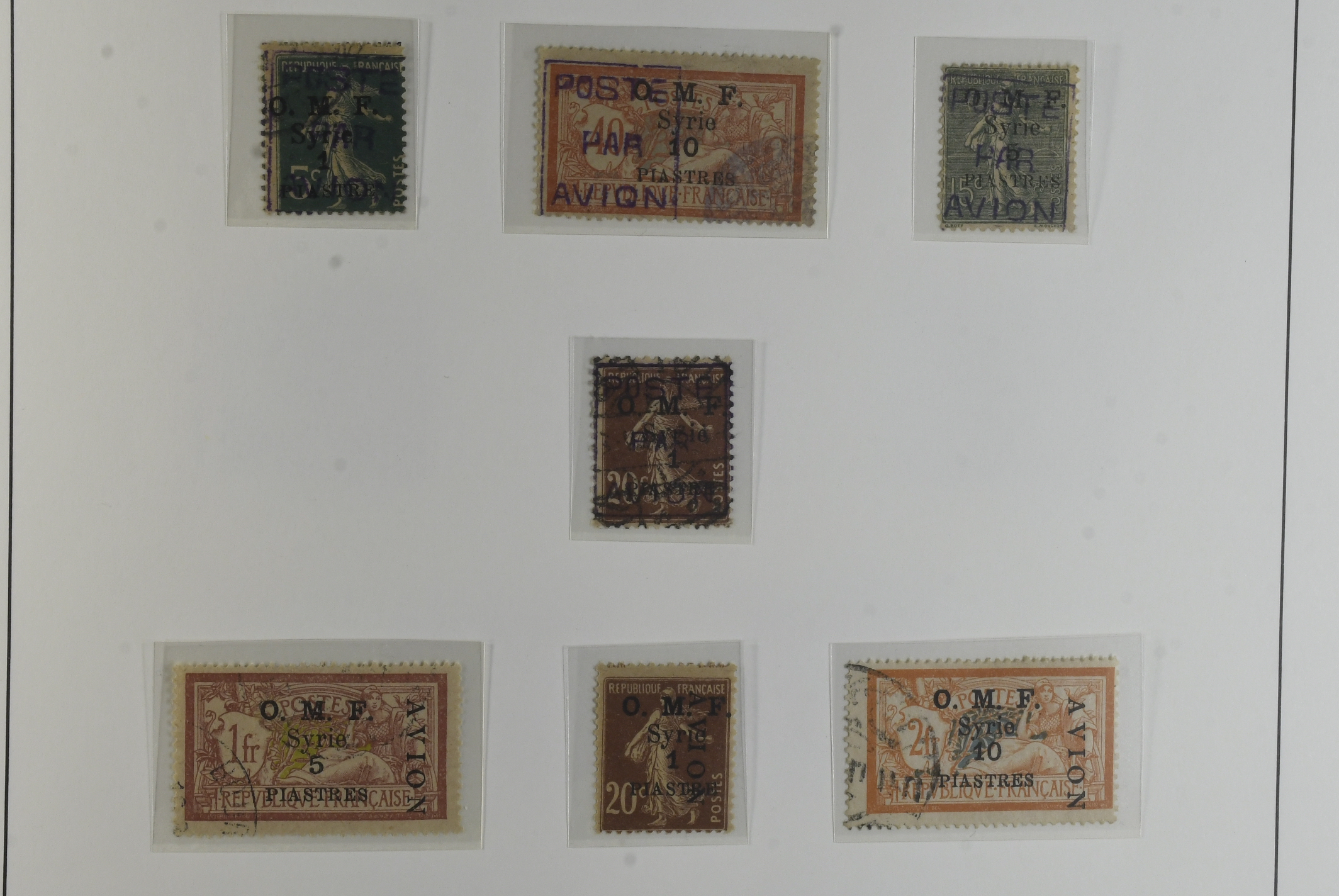 Syria, French mandate. Collection ★★/★/⊙ 1919–1945 in album with stamp mounts. Well filled collection with many of the top values and complete sets. Incl. Mi 111 *, 115II *, 116II *, 128a+b ¤, 134 ¤, 141 *, 163 *, 174–175 ¤, 176–179 *, 202 I–205 I *, 227–230 * (×2), 254–257* and from 1925 almost complete mostly mint with some NH. Also some better back of the book. Please see a selection of scans at www.philea.se. Mostly fine quality. (700+)