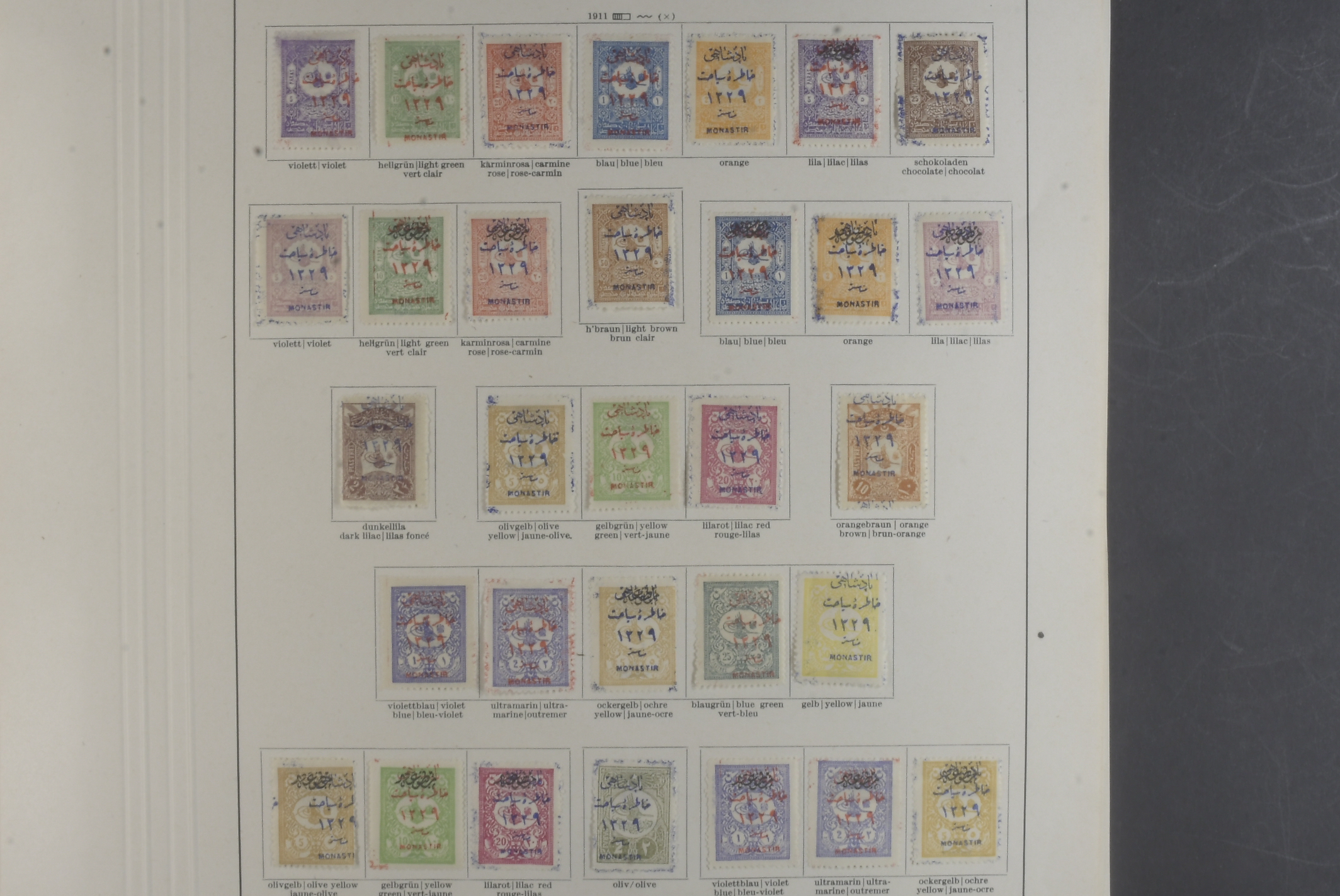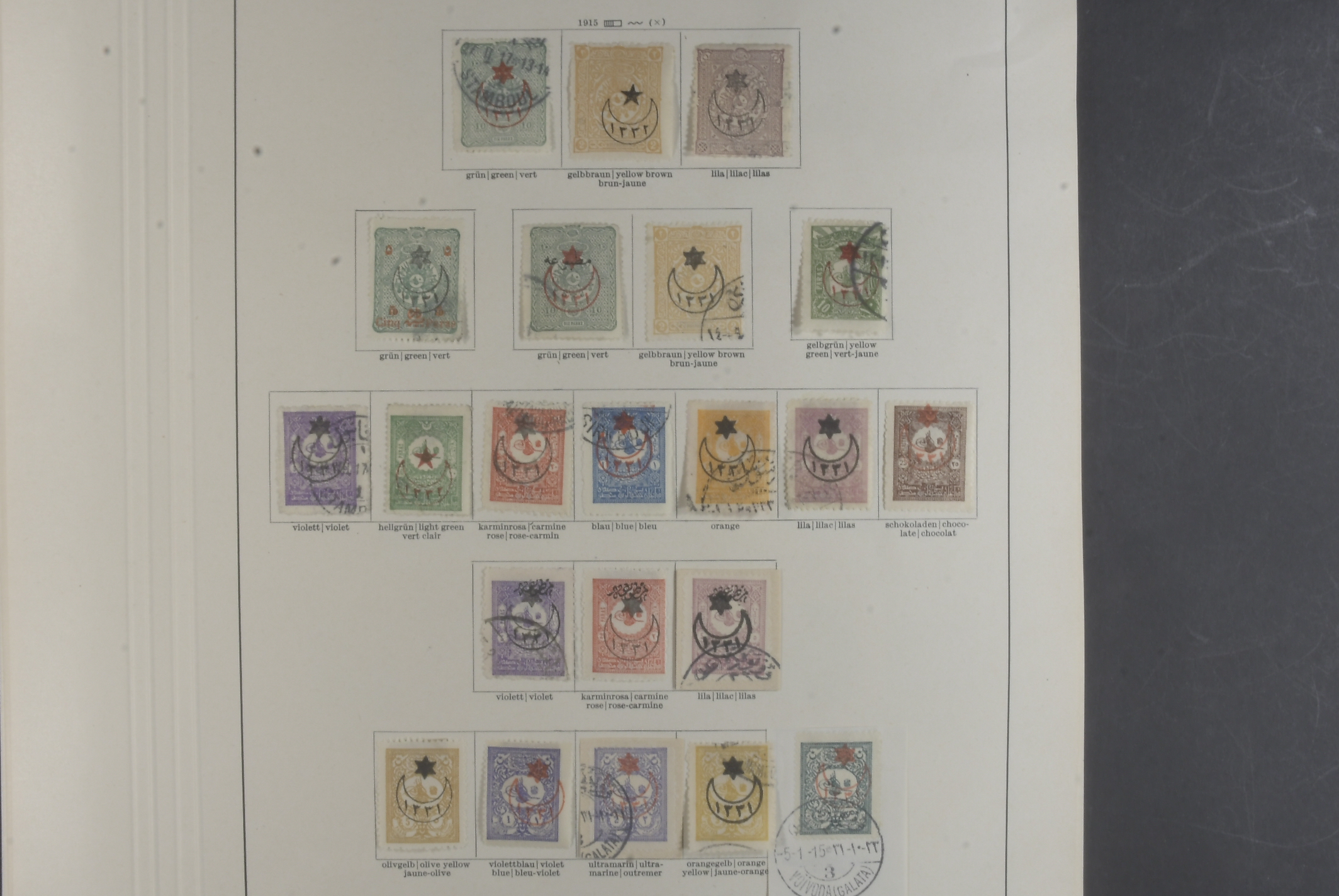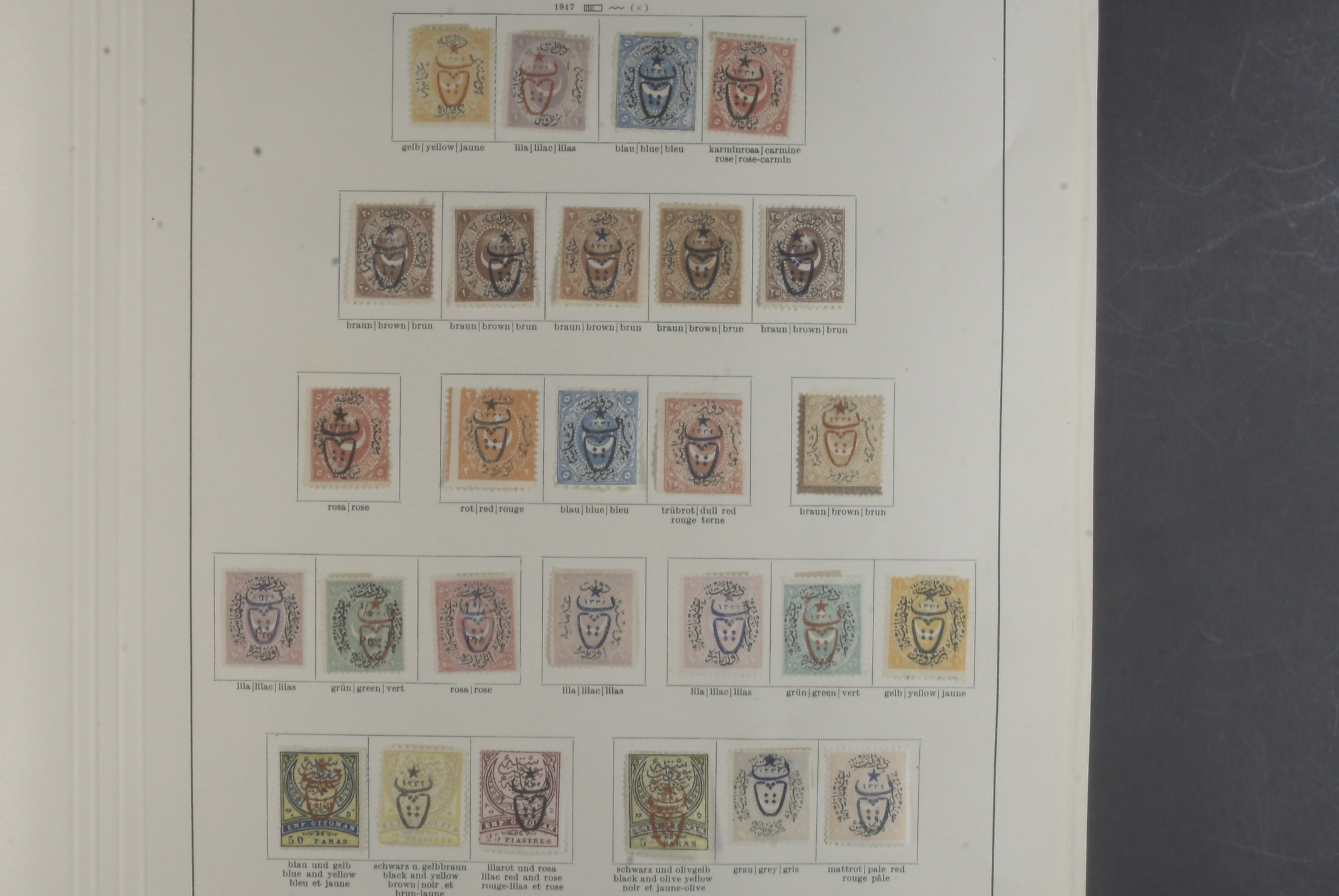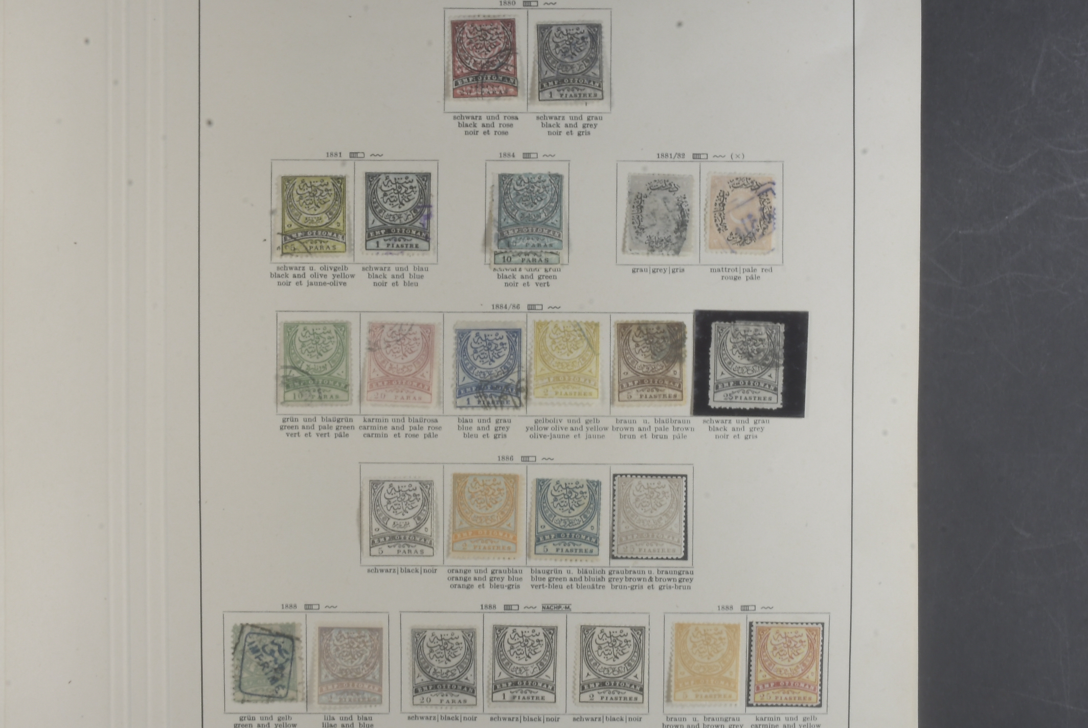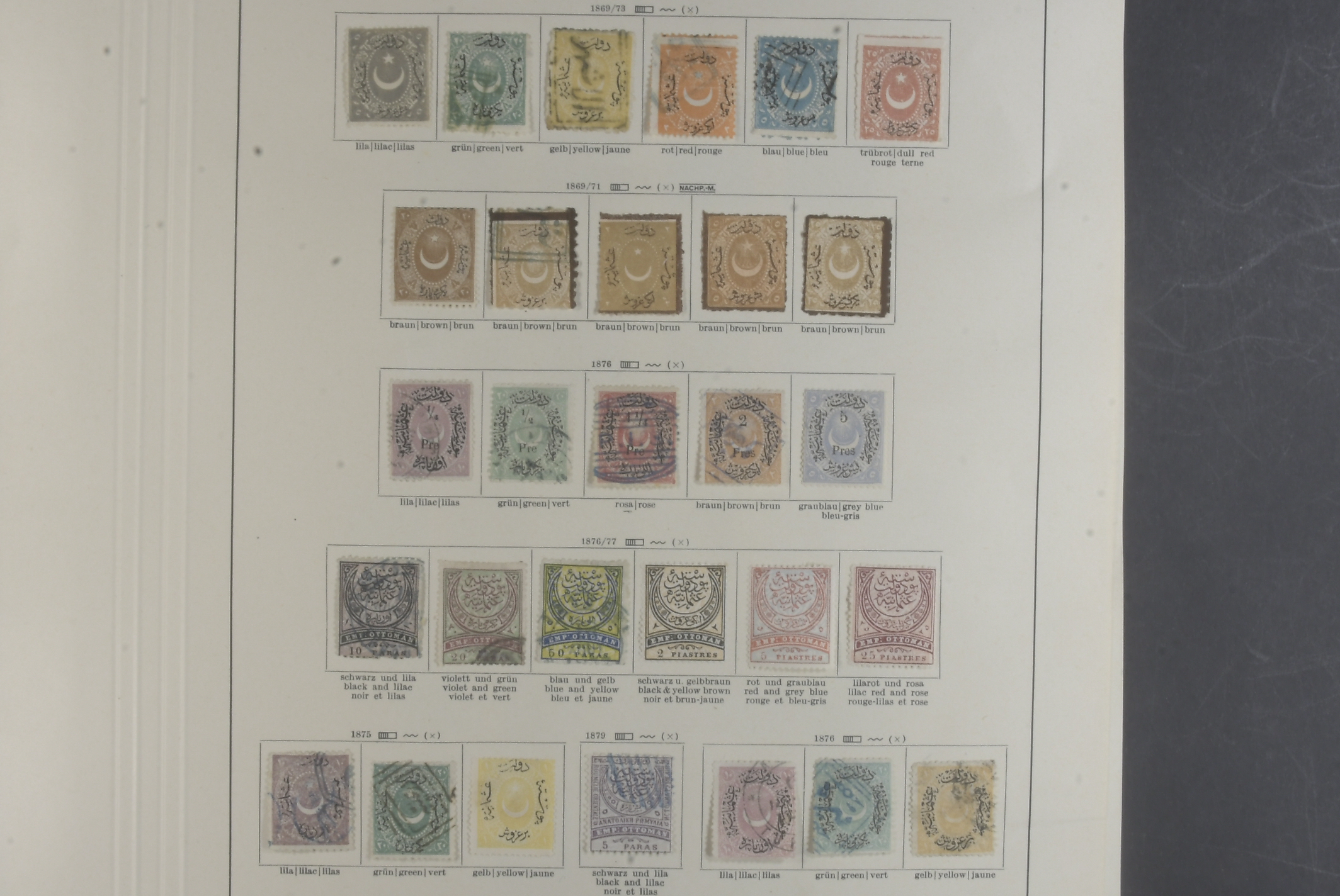Turkey. Collection ★/⊙ 1863–1955 on leaves. Almost complete in main numbers used or mint. A few stuck on the leaves, but mostly OK. Many better and seldom seen stamps, e.g. Mi 1–4 used, 10 *, 181–88 I and II *, 181–88 III on piece, 201–02 III *, 195–202 IV *, 229–45 used, 640–52 *, 787–806 and 857–90 */o, 985–99 used, due 1–4 used and much more. Somewhat mixed quality.