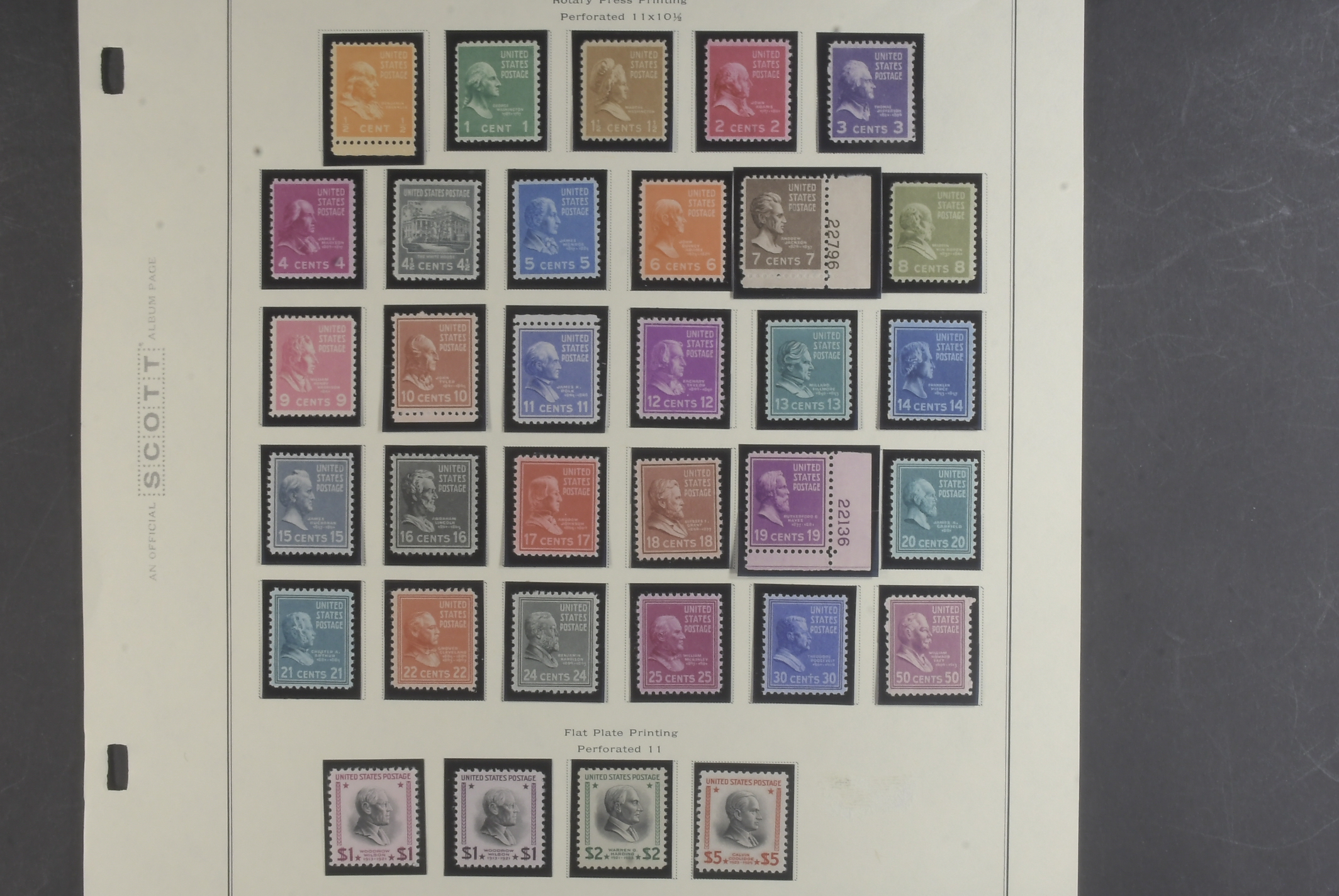 U.S.A. Collection ★★ on three leaves. Prexys complete MNH including all the coils in pairs, booklet panes and the scarce $1 Wilson wmk. Fine quality.