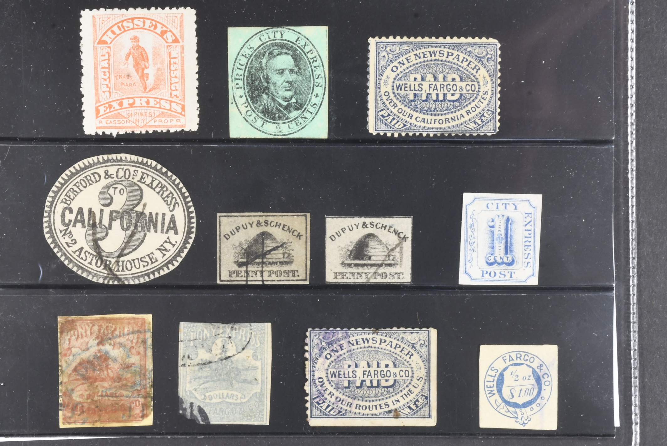 U.S.A., carrier issues, local issues. Locals Sc L132, etc ★★/★/⊙, 11 stamps mixed quality. Beehive Dupuy & Schenck PENNY POST, etc.