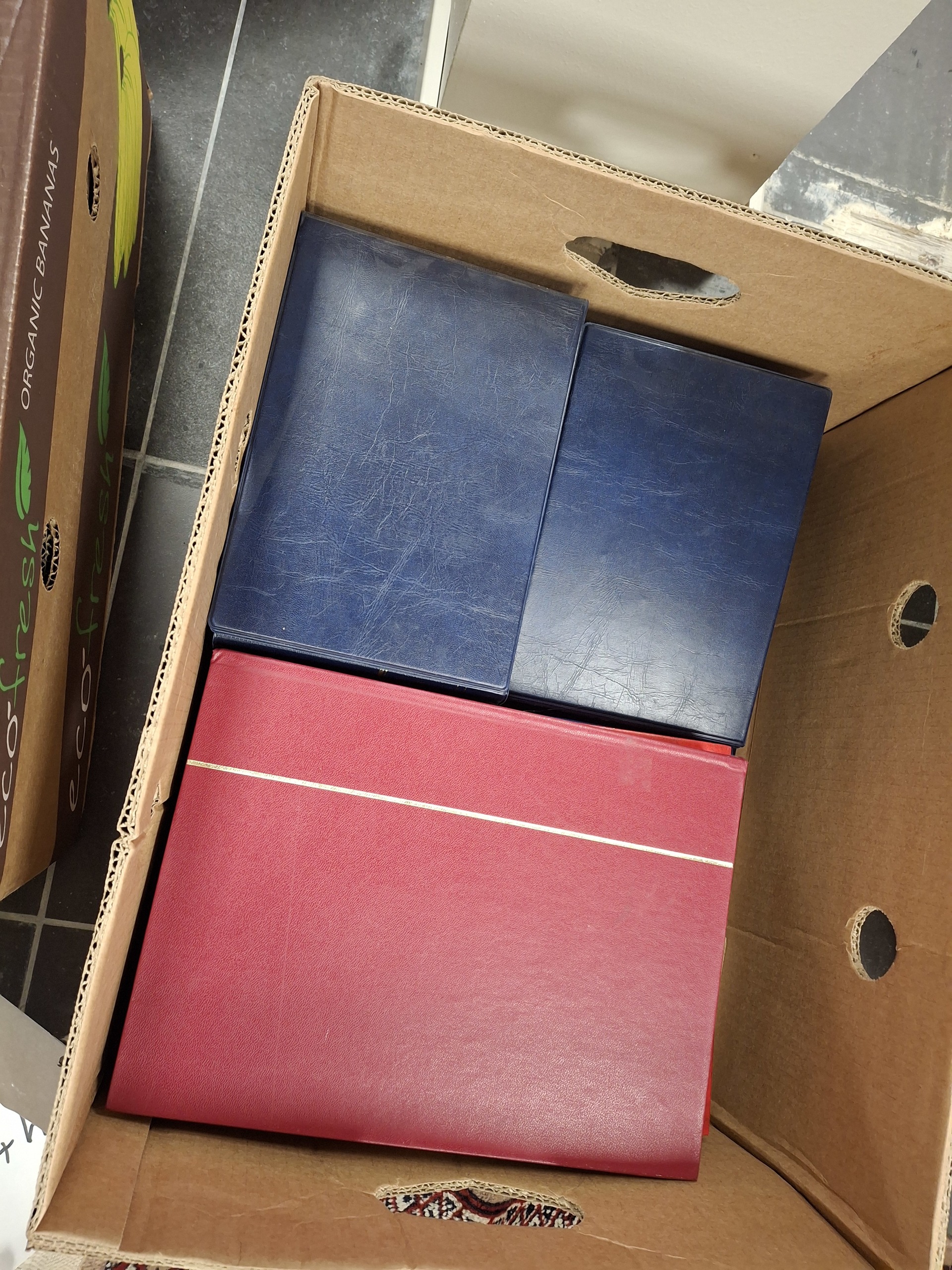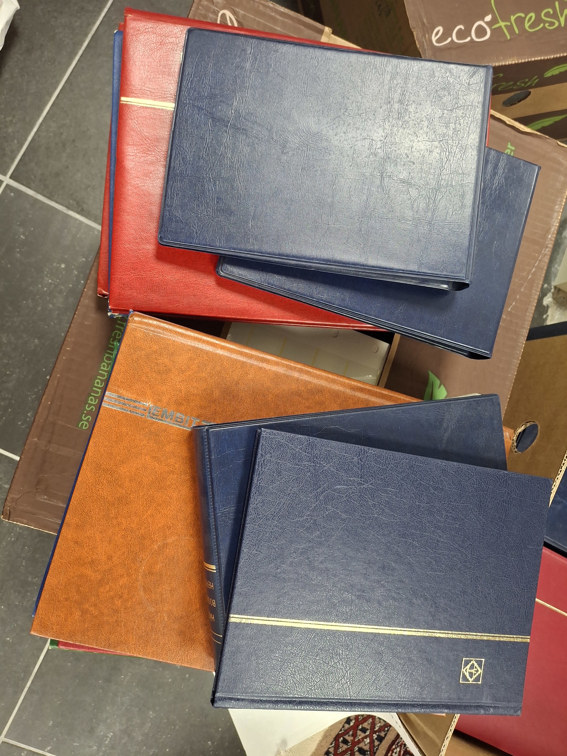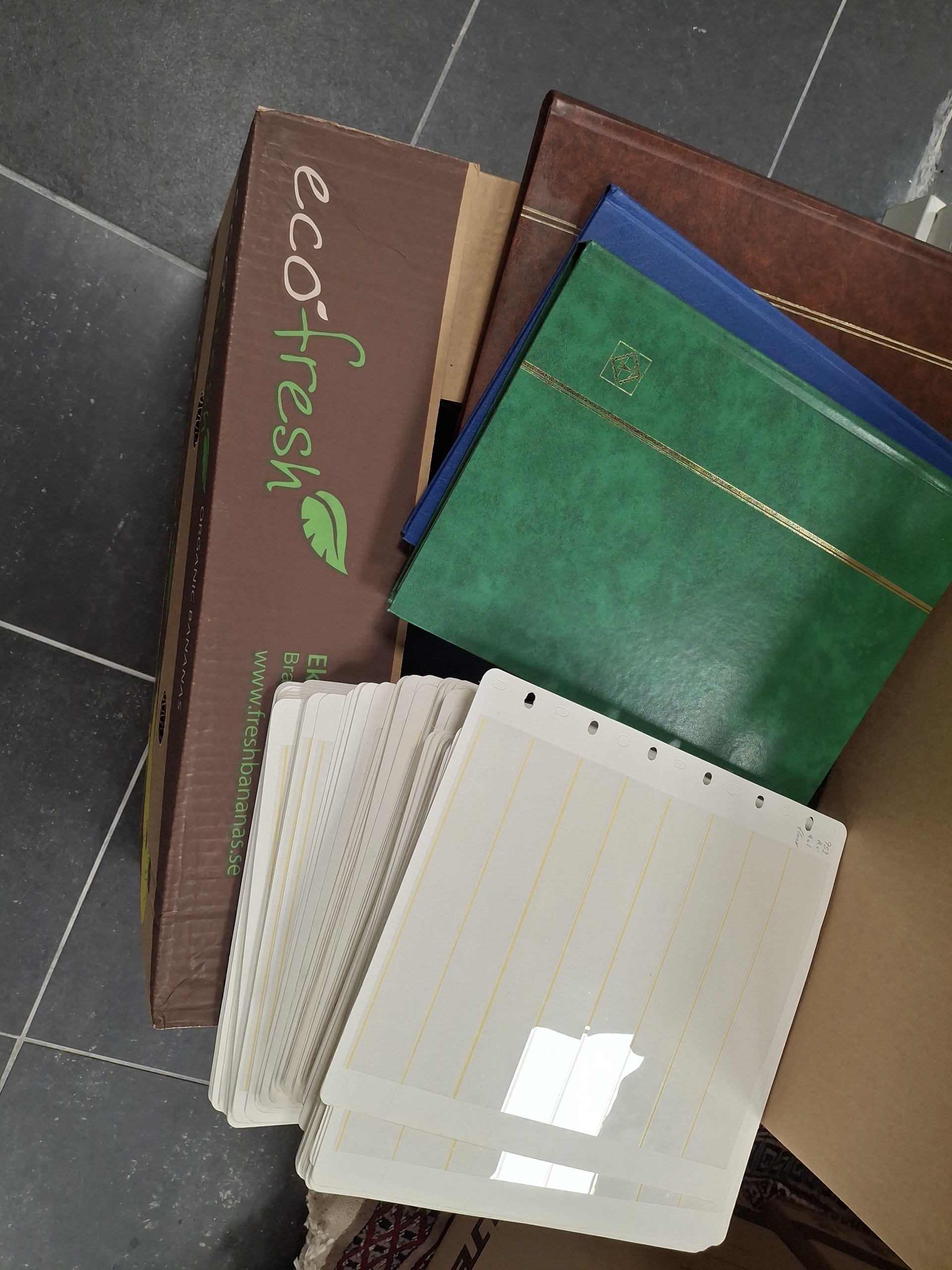 Accessories. Two banana boxes with empty albums. Visir, normal and for booklets. Approx. 30 kg.