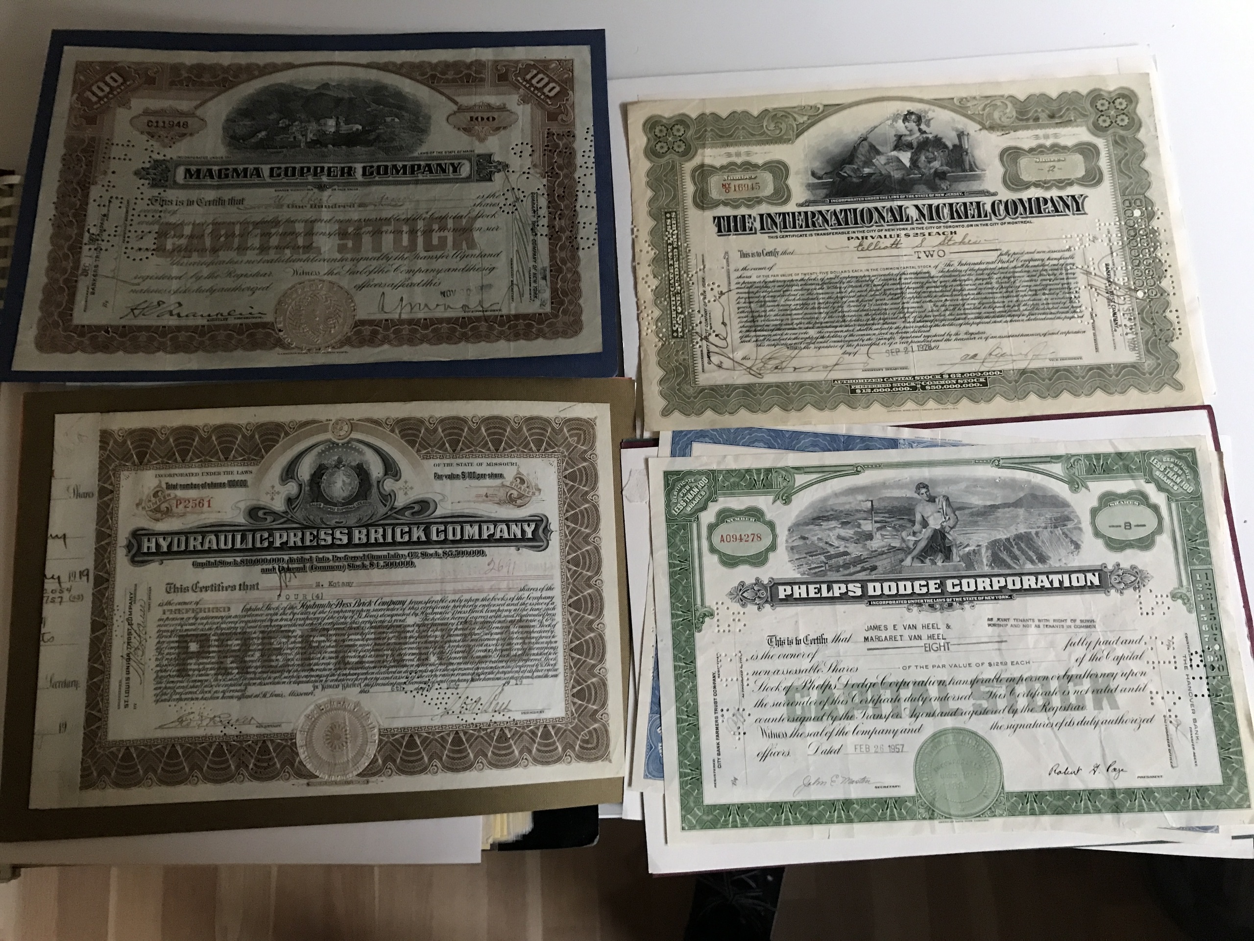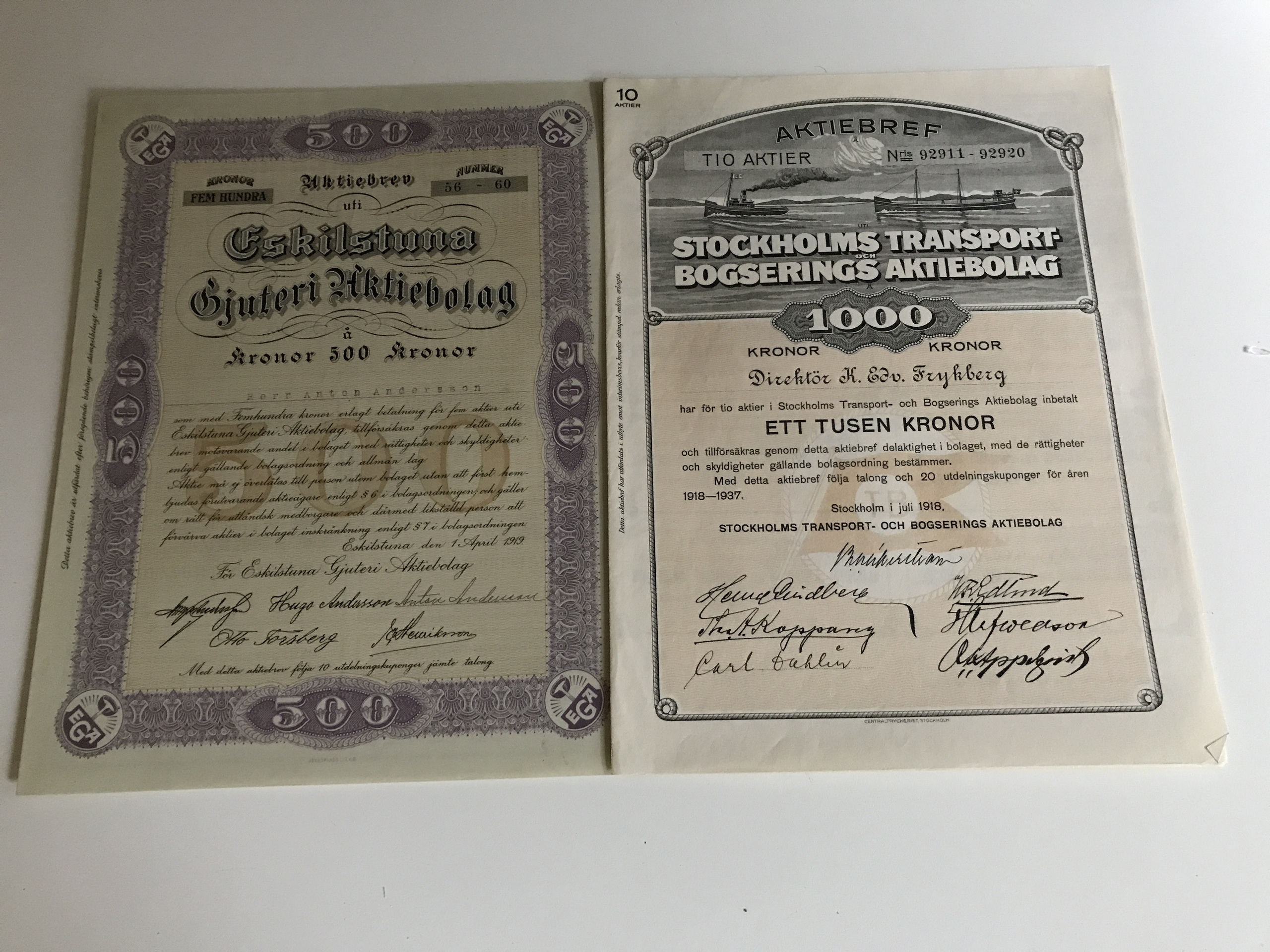 Stock certificates, Sweden. 78 stock certificates from Sweden, around 1900–1930s in good quality. Also about ten stock certificates from USA 1920s–1990s.