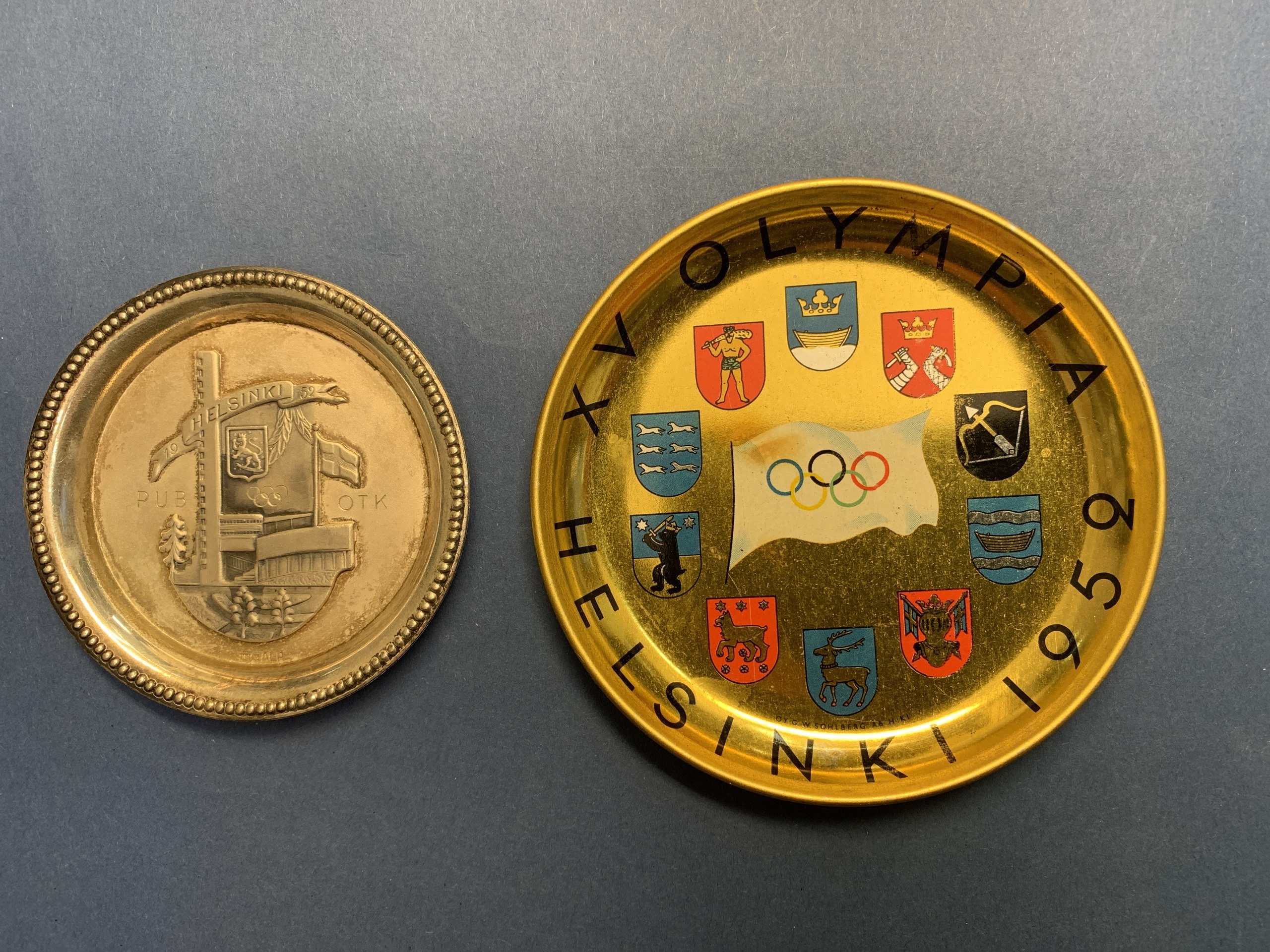 Olympic paraphernalia, Sweden. Olympic Games in Helsinki 1952. Two different ashtrays.