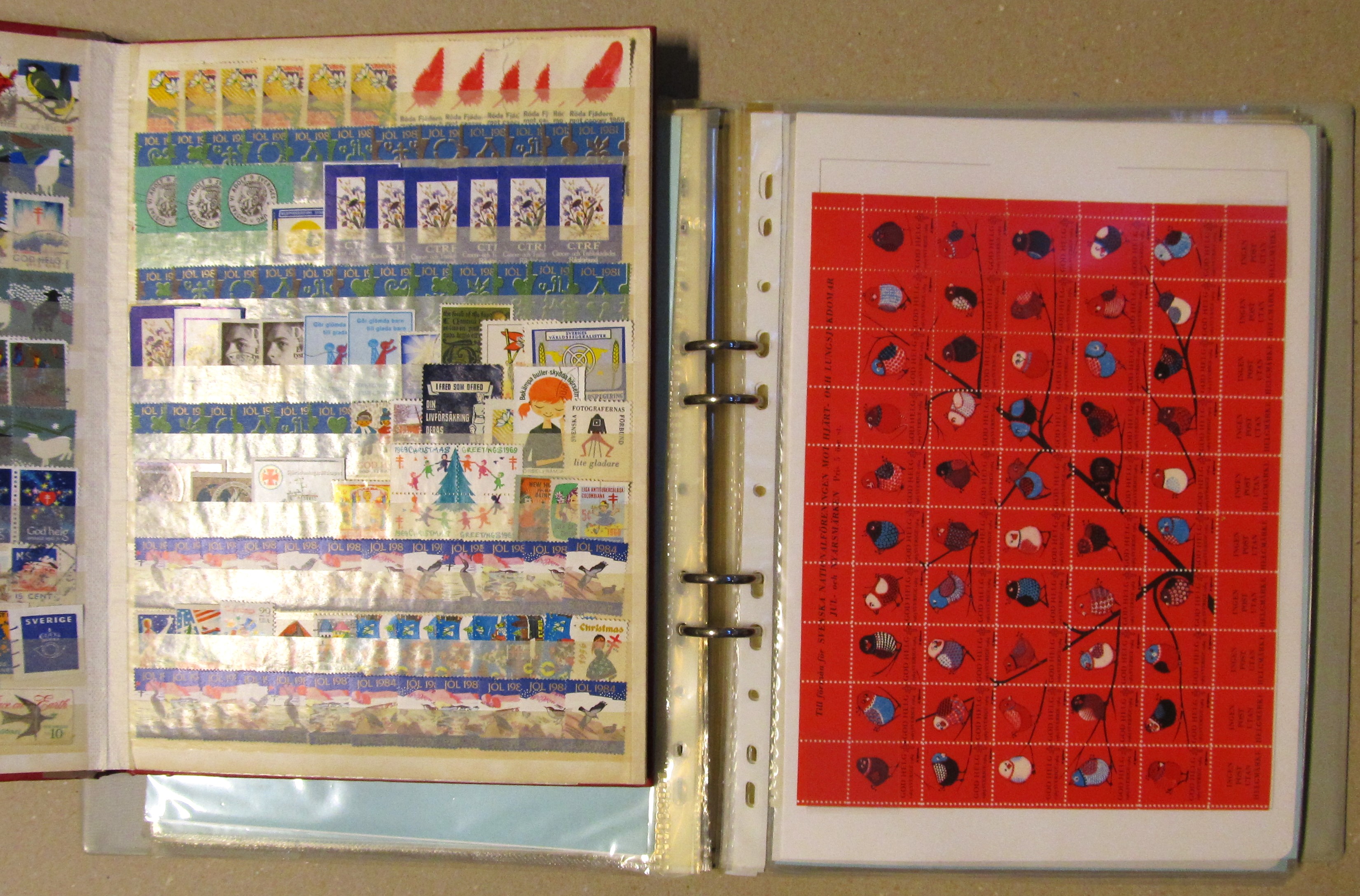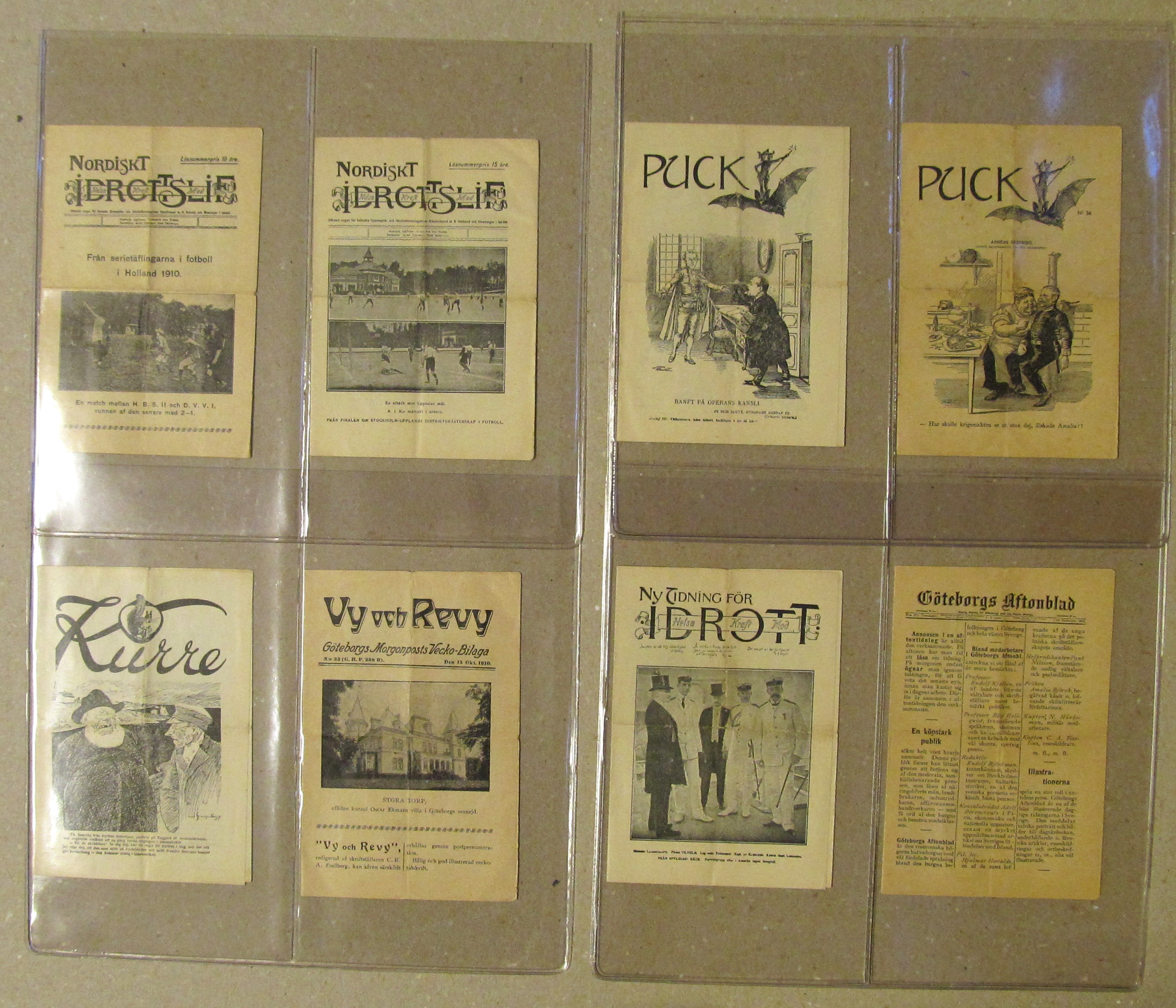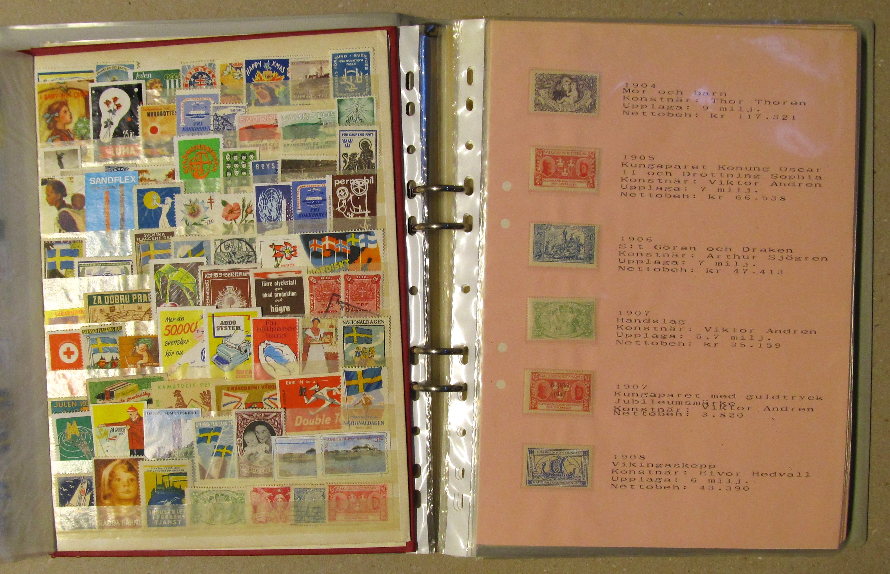 Miscellaneous, Other. Very odd mixture containing a cpl. collection ** Swedish Christmas seals 1904–1980 (1960 onwards in full sheets), accumulation labels and seals (approx. 1500) in stockbook, eightteen early 20th century Swedish miniature newspapers and a Visir-album with 120 Pokemon cards. Some scans are presented at www.philea.se.