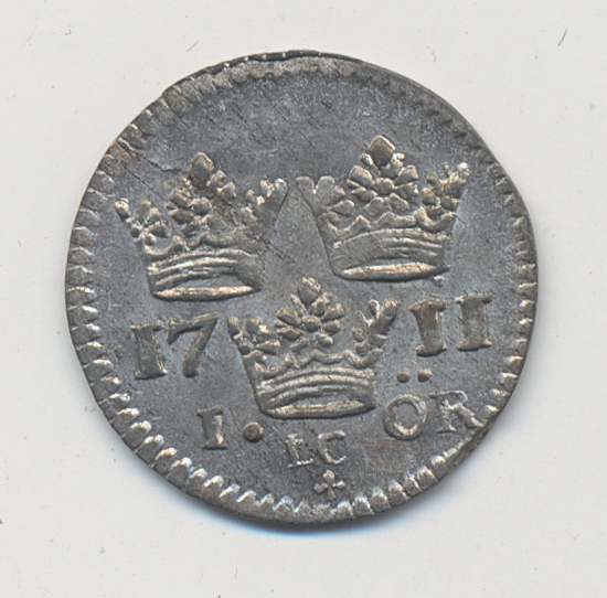 Coins, Sweden. Karl XII, SM 135, 1 öre 1711. 1.14 g. Stockholm. 01/0.